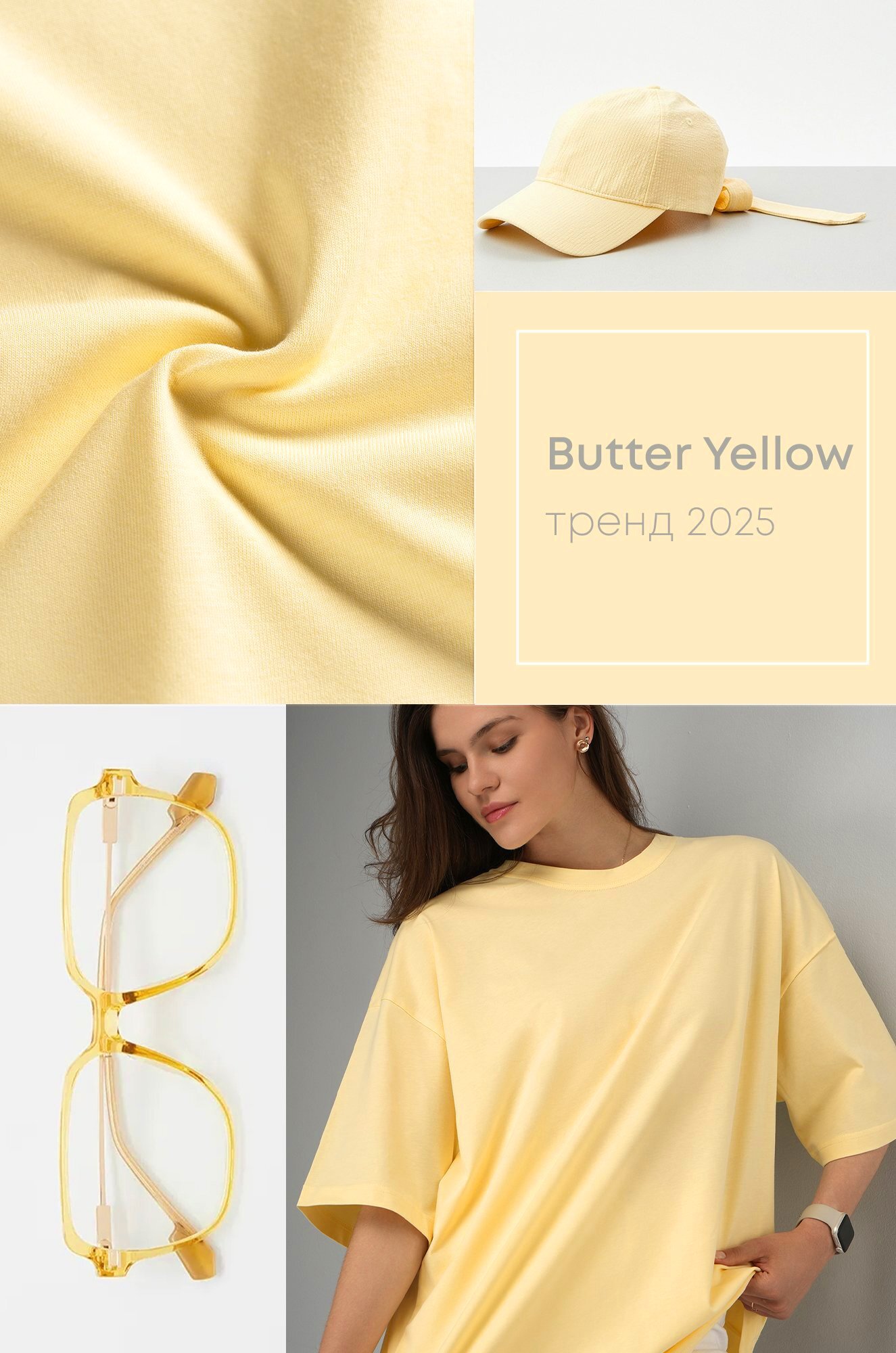 — однотонная футболка оттенка сливочное масло станет классным акцентом в повседневном образе.