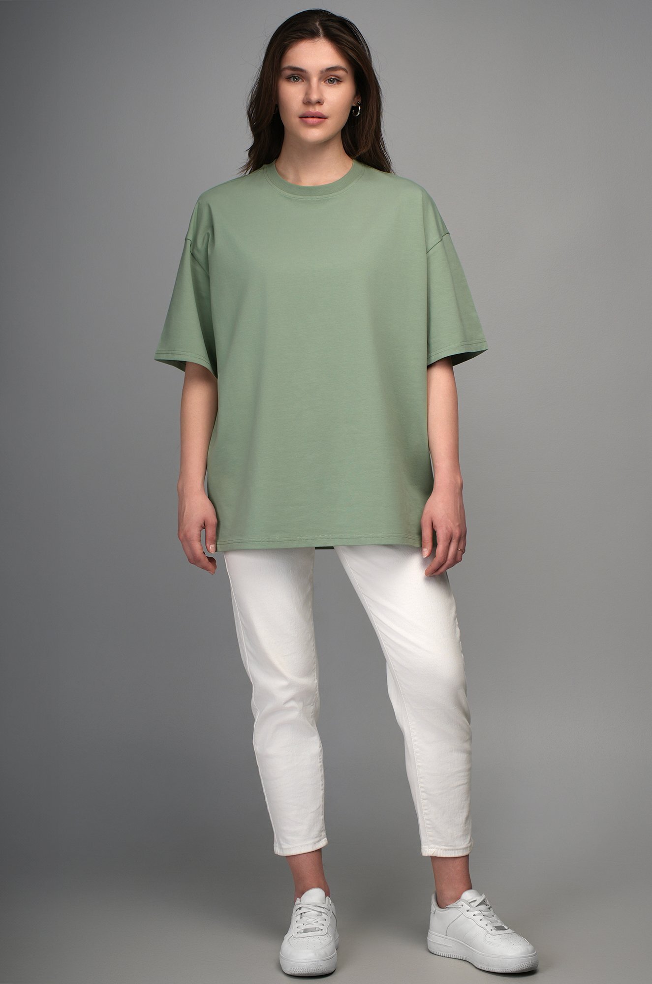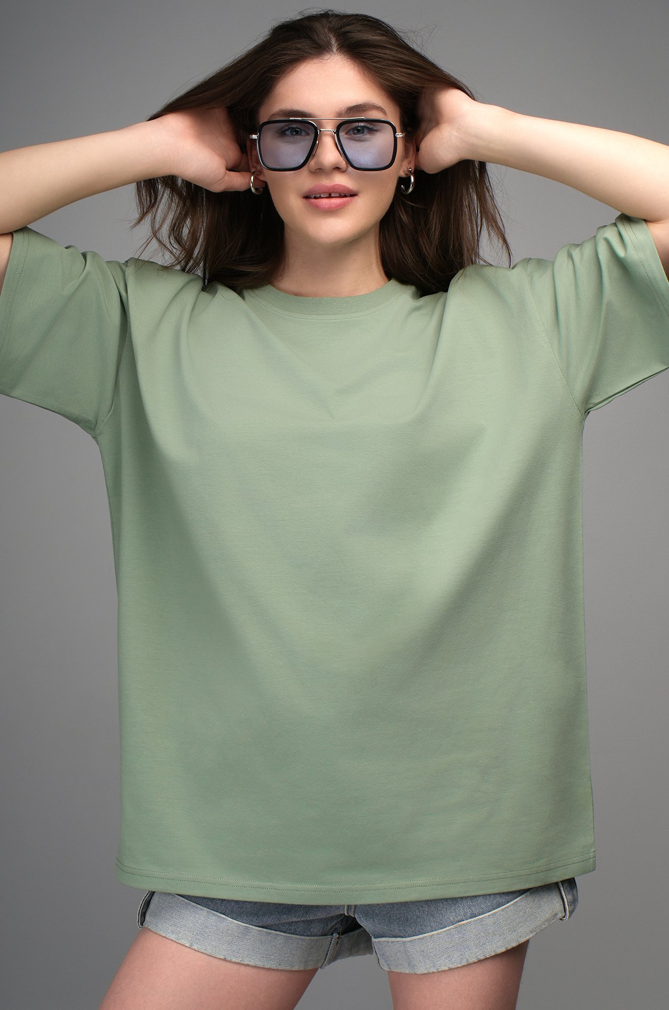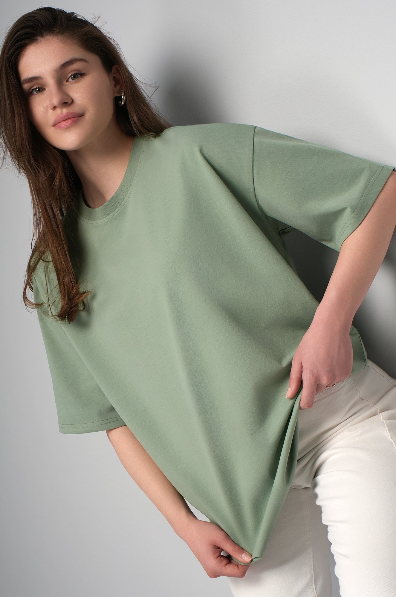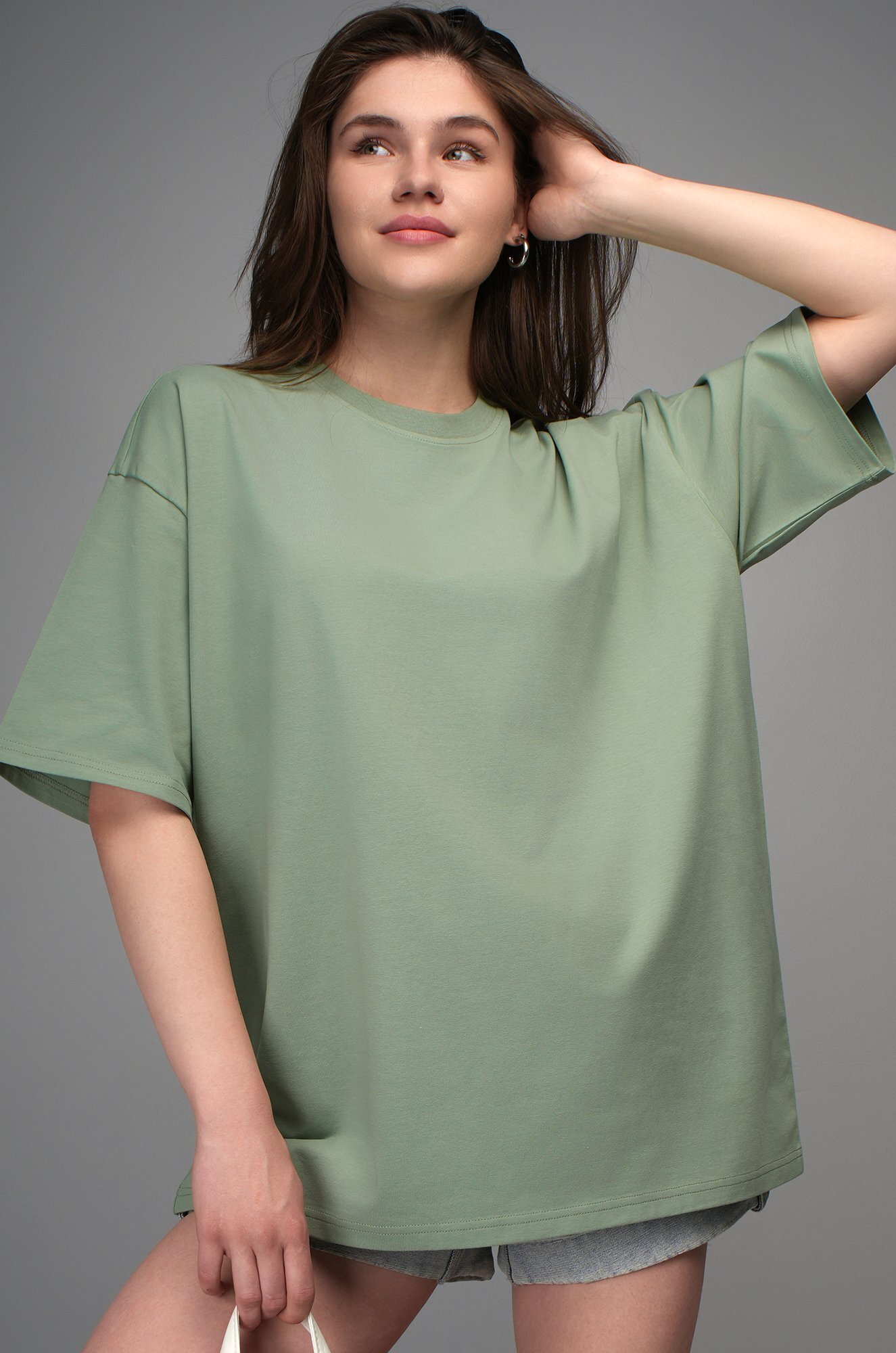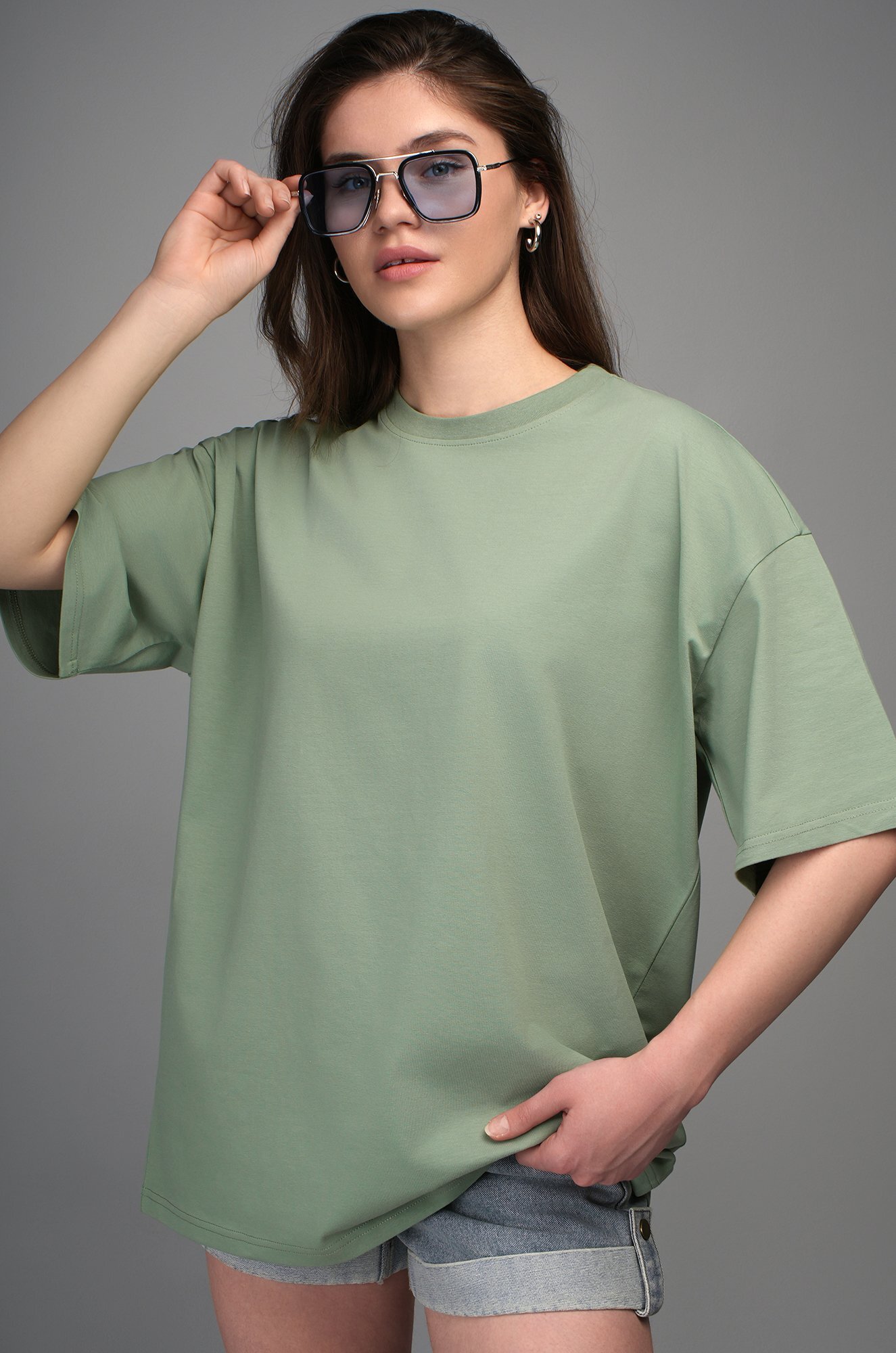 Однотонная женская футболка оверсайз с коротким рукавом выполнена из трикотажа с высоким содержанием хлопка. Стильная футболка светло-зеленого цвета легко сочетается с любым низом. Трендовый крой оверсайз уже не один сезон находится на пике популярности, свободная футболка – это современная база.