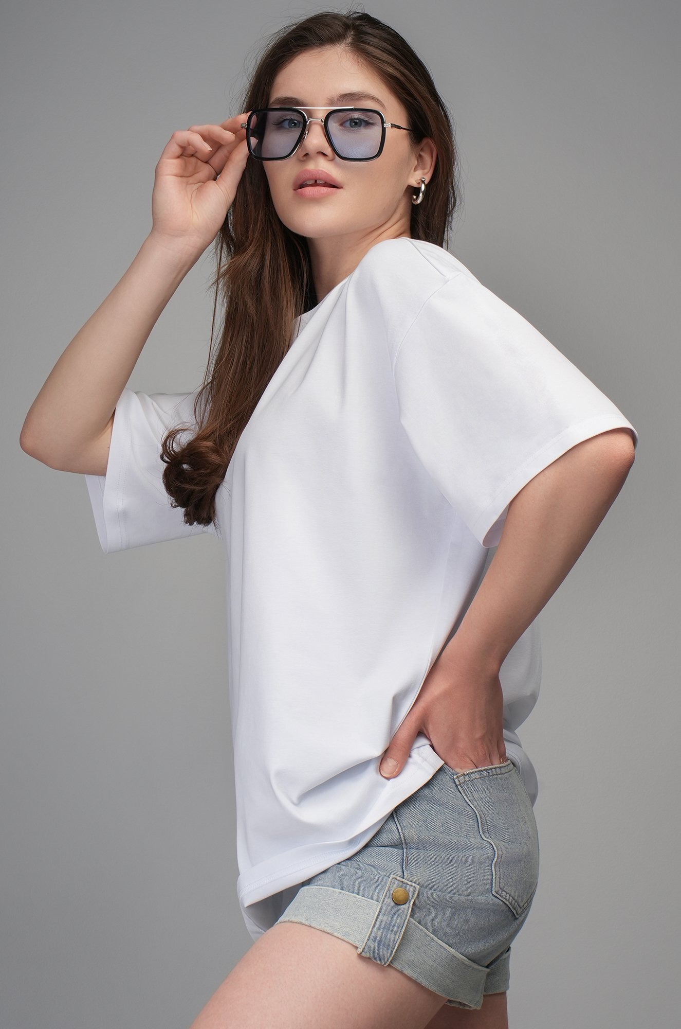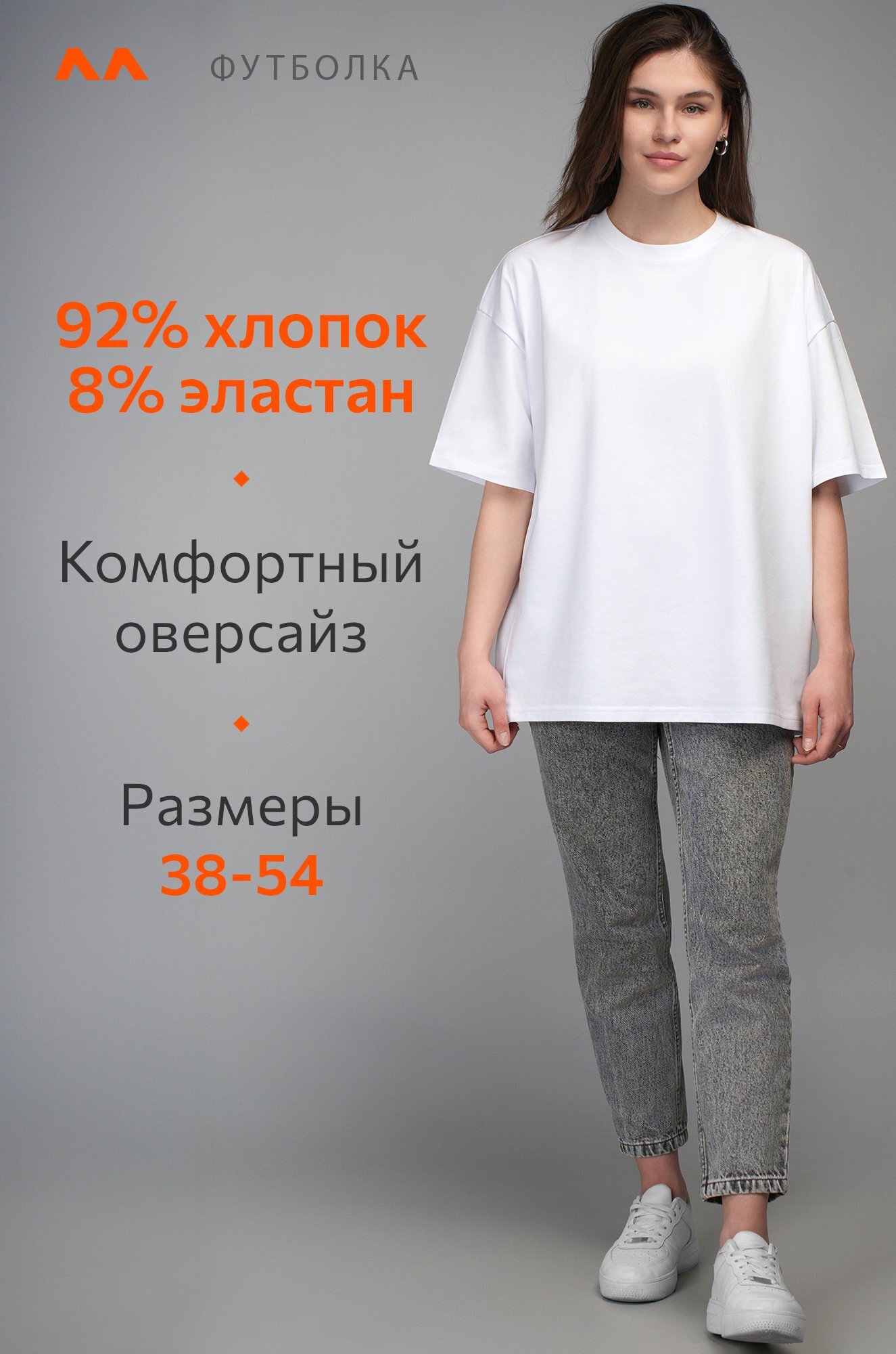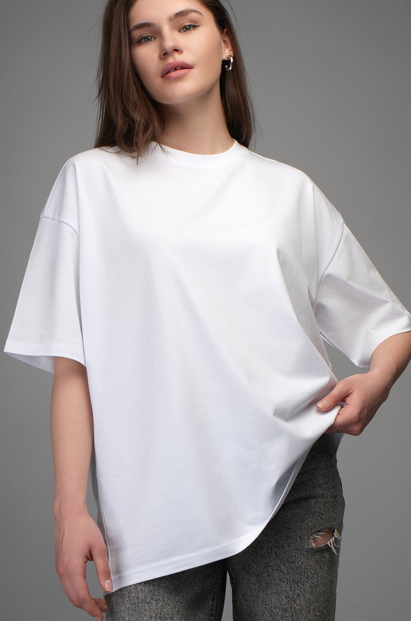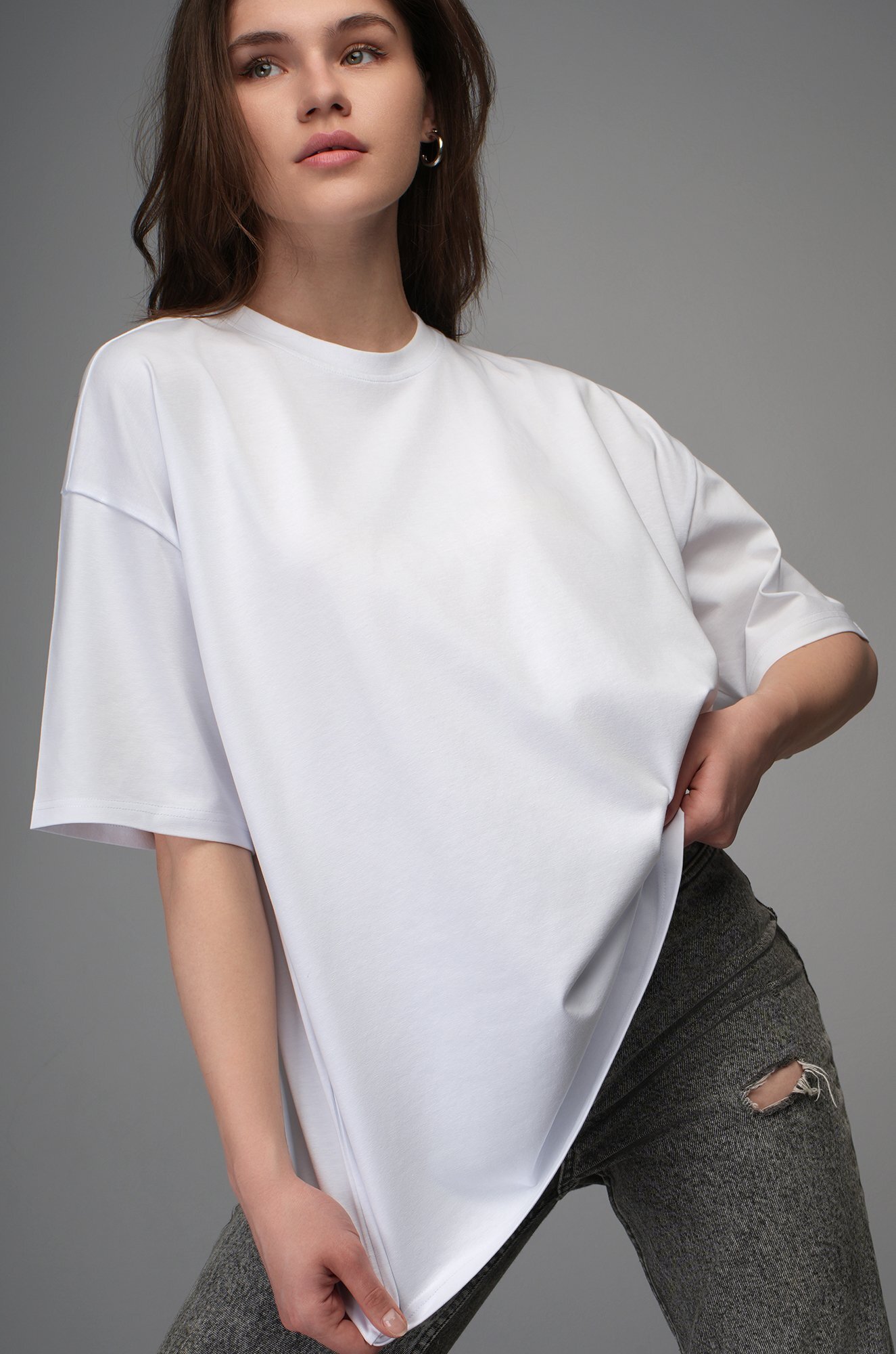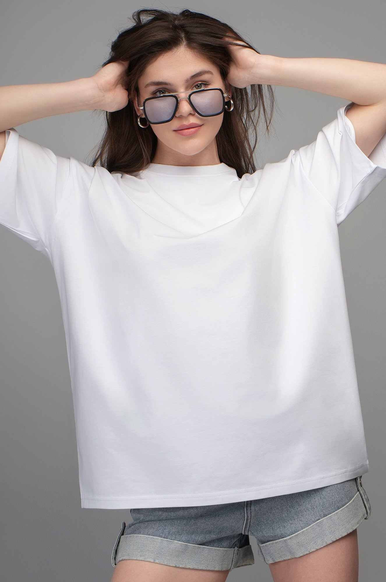 Крой oversize и спущенная линия плеча подарит комфортную посадку. Удобная круглая горловина мягко облегает шею, аккуратные плоские швы не ощущаются в течение дня. Светлая хлопковая футболка станет идеальной основой для повседневного образа в любом стиле: smart casual (смарт кэжуал), спортивном и уличном.