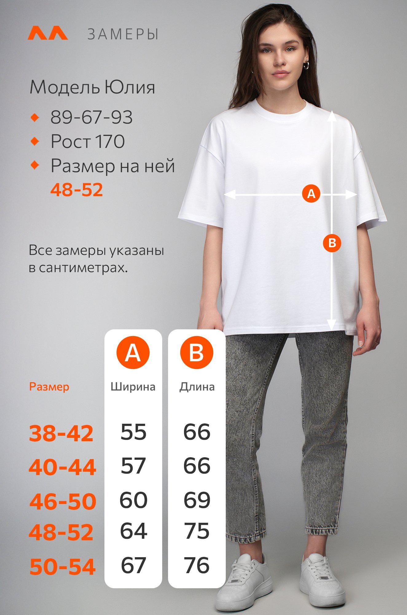Модель Юля, рост 170 см, параметры 89-67-93 см. На ней размер 48-52.