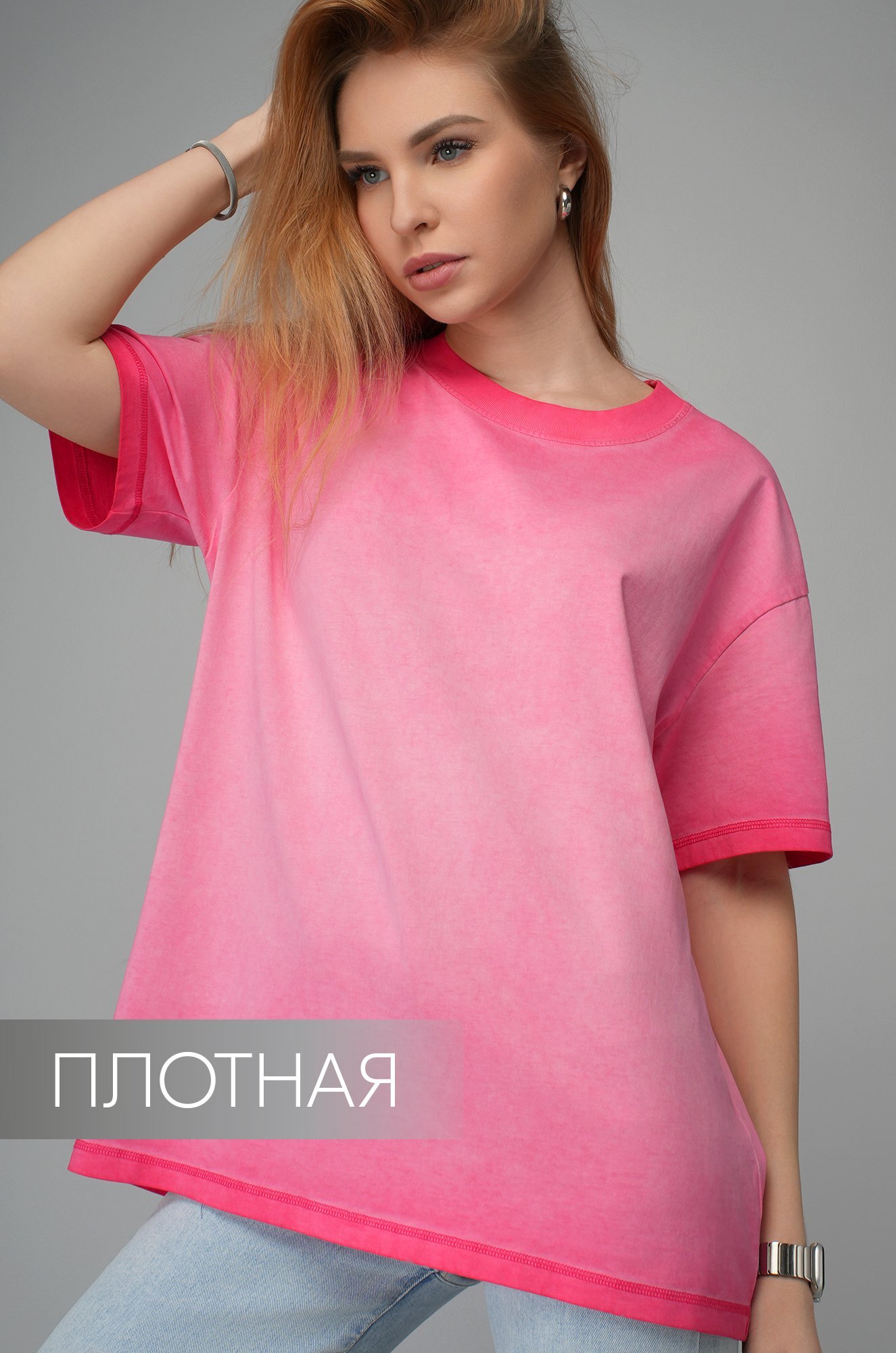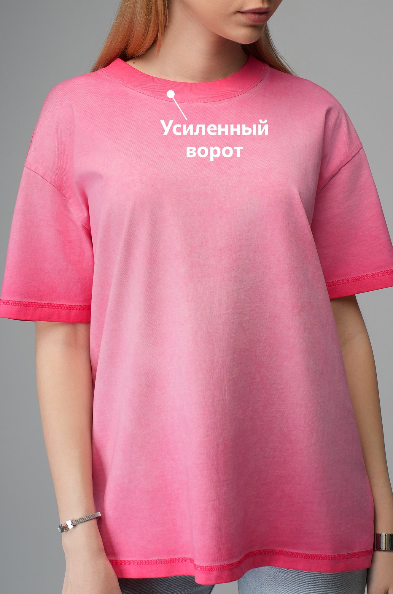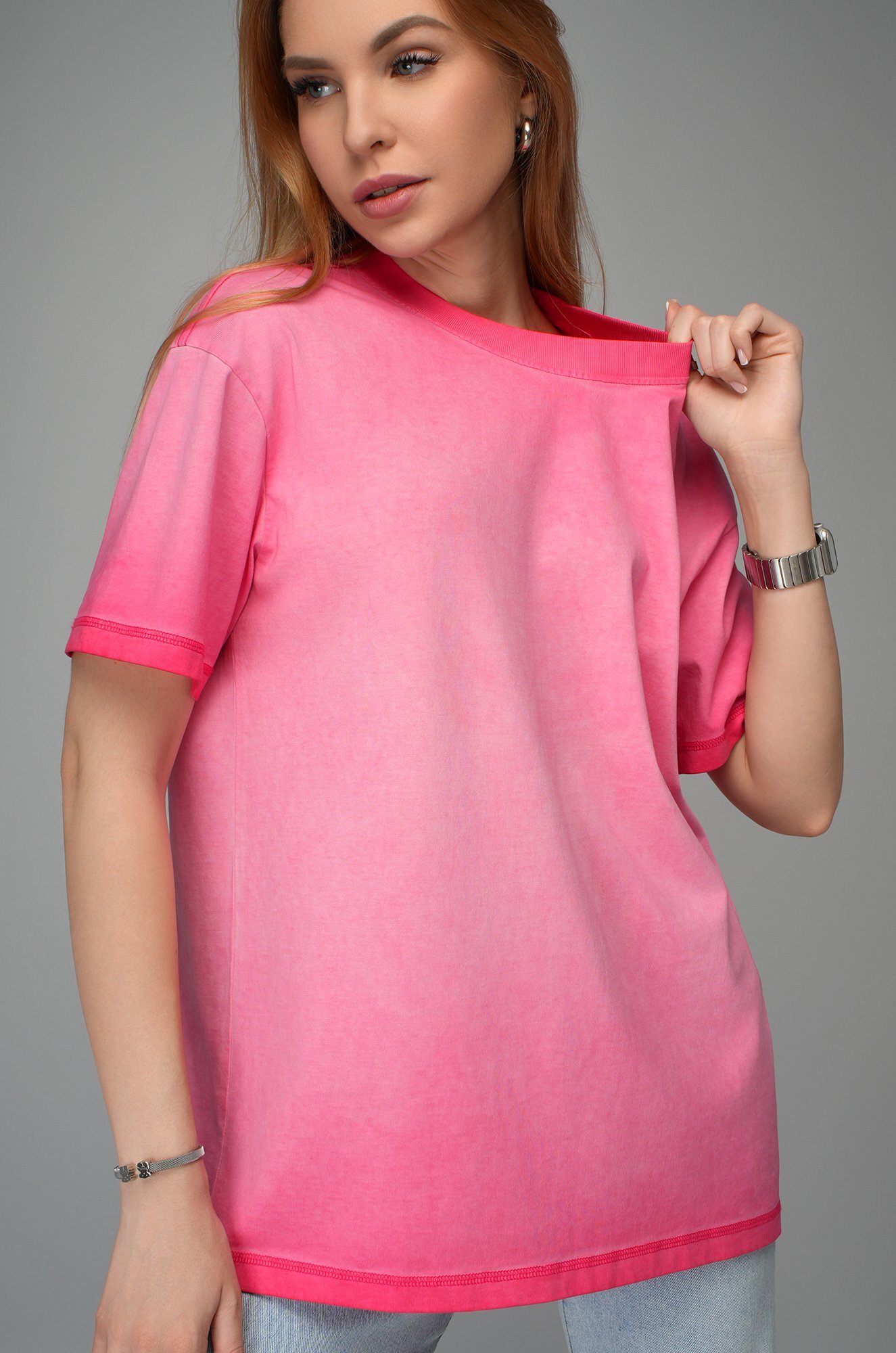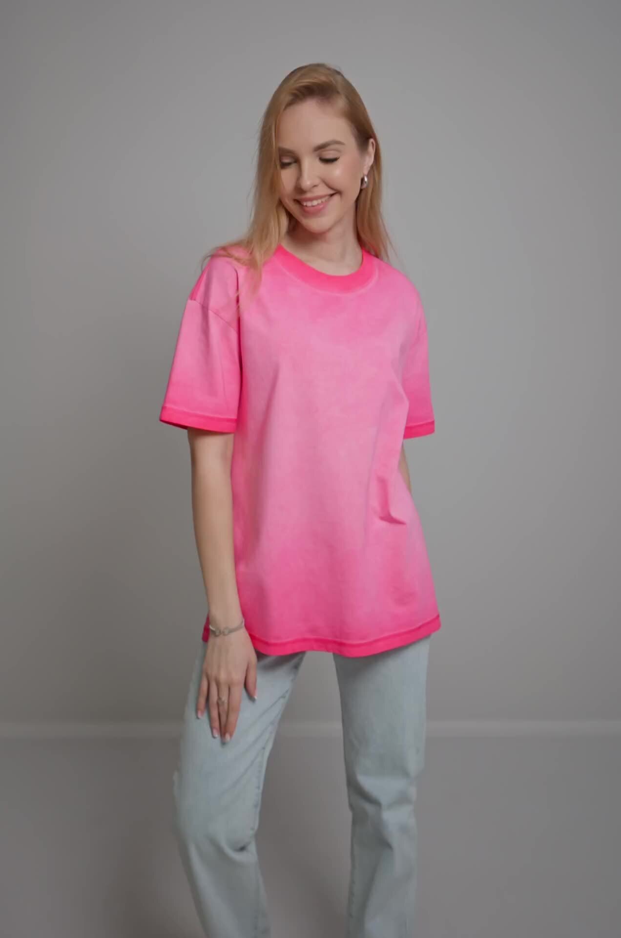 Розовая футболка с градиентом для женщин станет стильным акцентом на прогулке, встрече с друзьями или отдыхе.