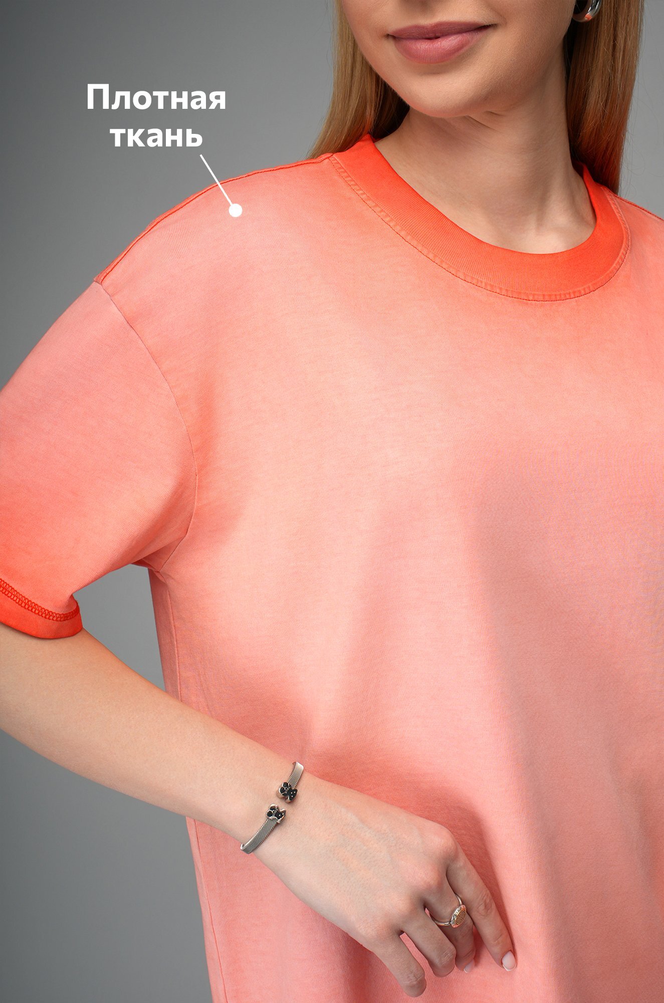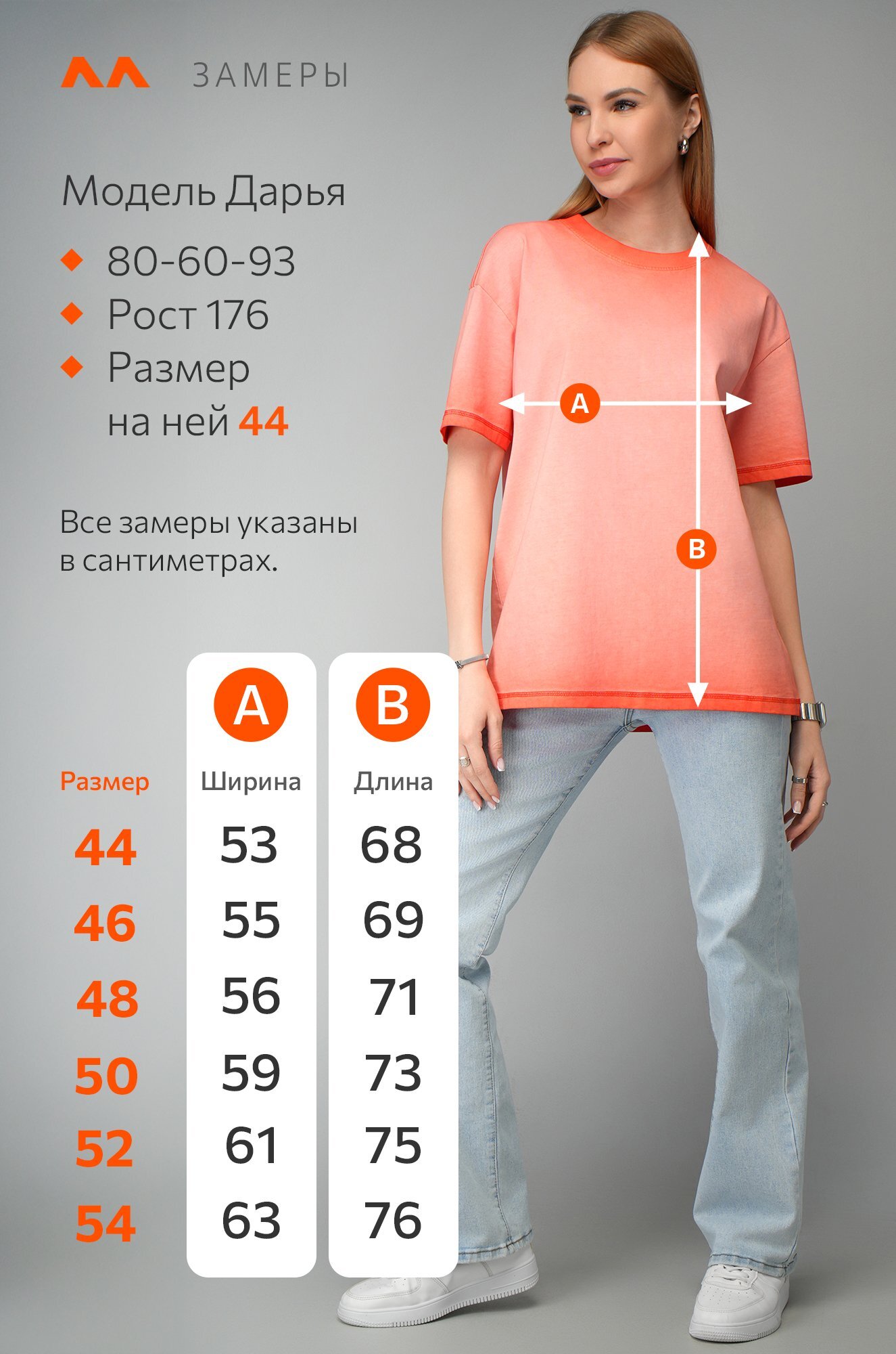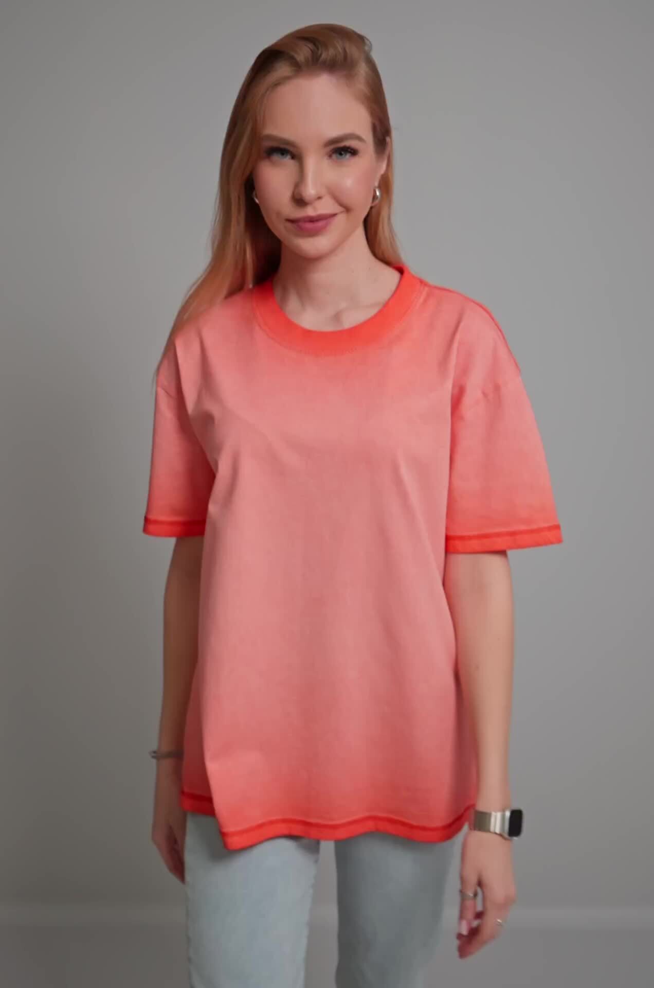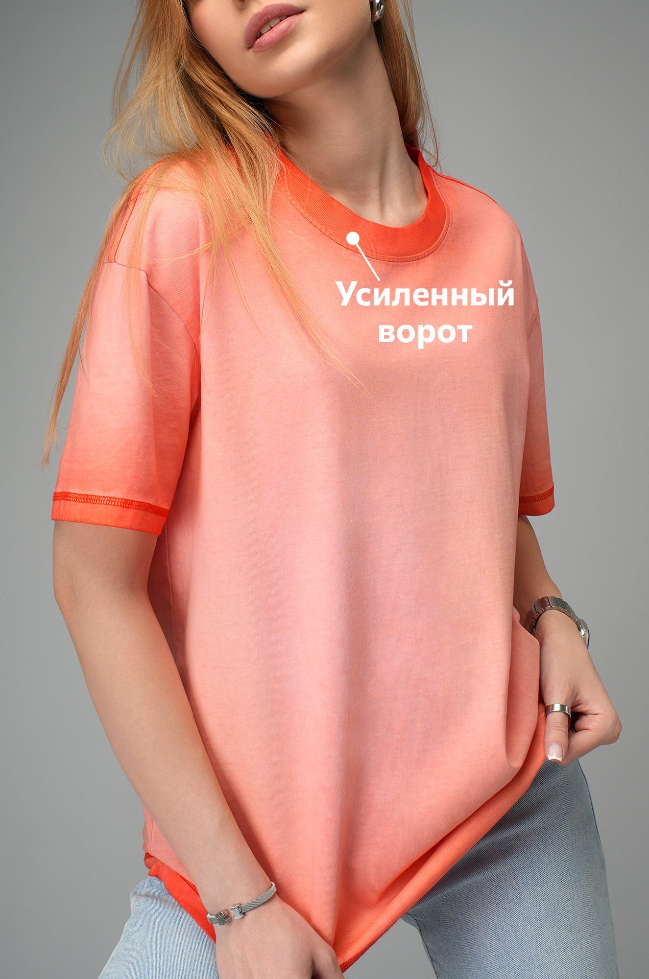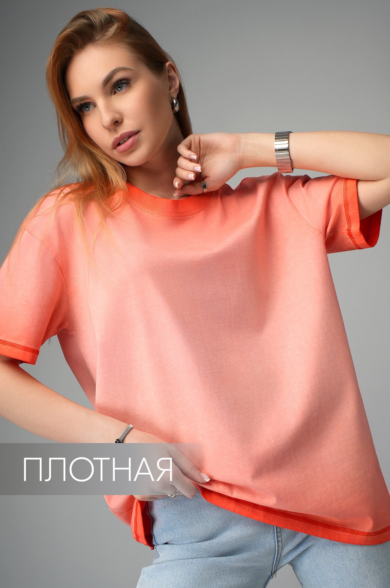Женская футболка оверсайз с варёным эффектом омбре — яркое и удобное решение для повседневных образов с настроением свободы. Плотная футболка выполнена из 100% хлопка — мягкого, дышащего и приятного к телу трикотажа.