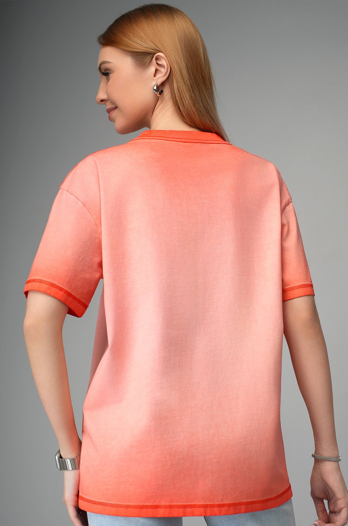 Оранжевая футболка с градиентом для женщин станет стильным акцентом на прогулке, встрече с друзьями или отдыхе.