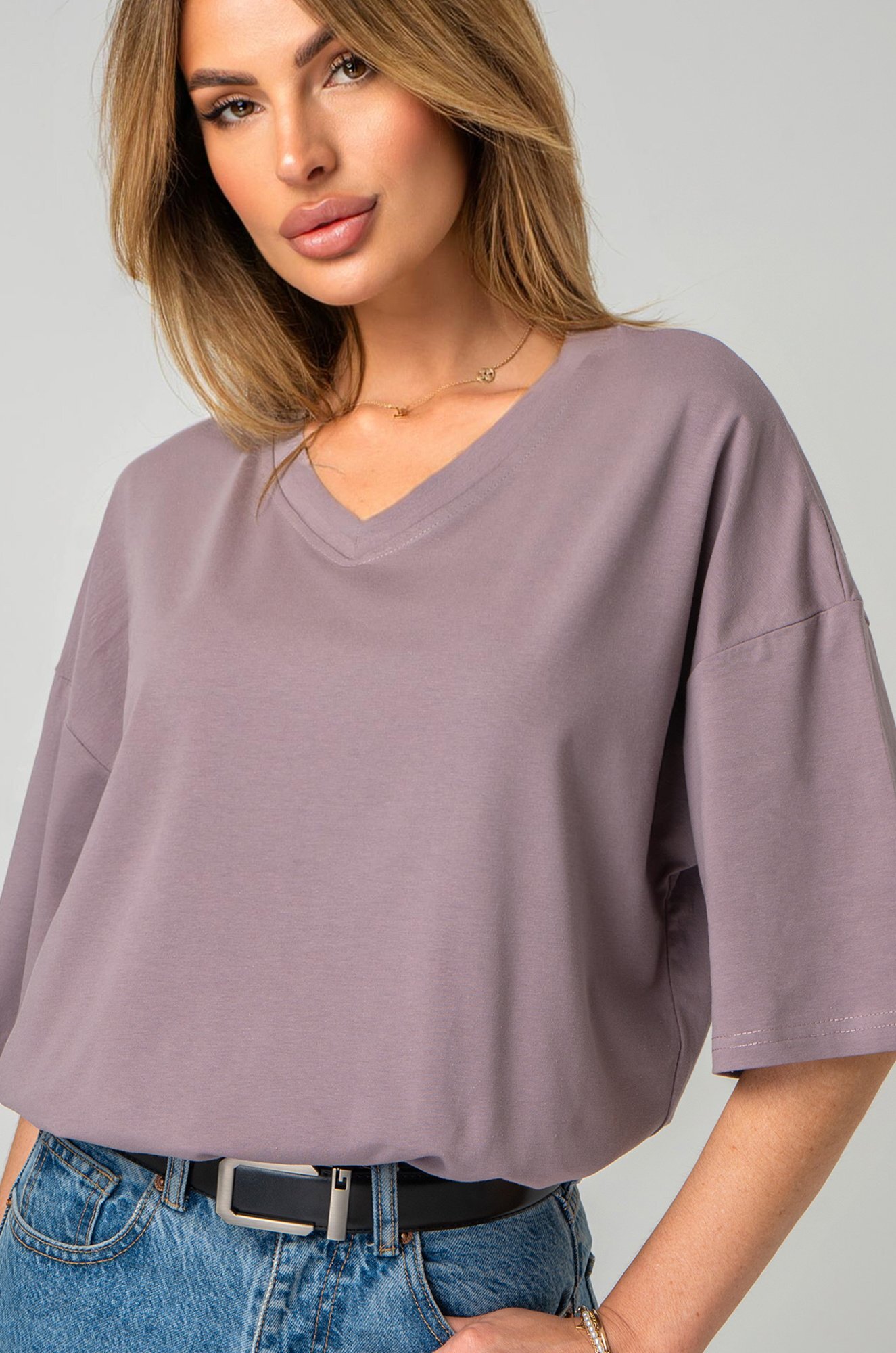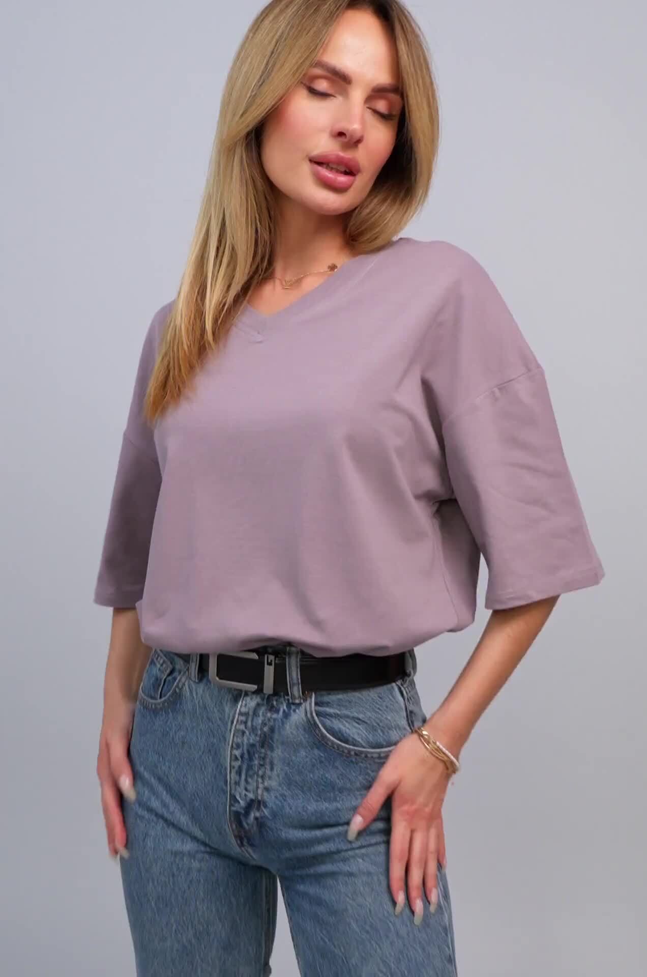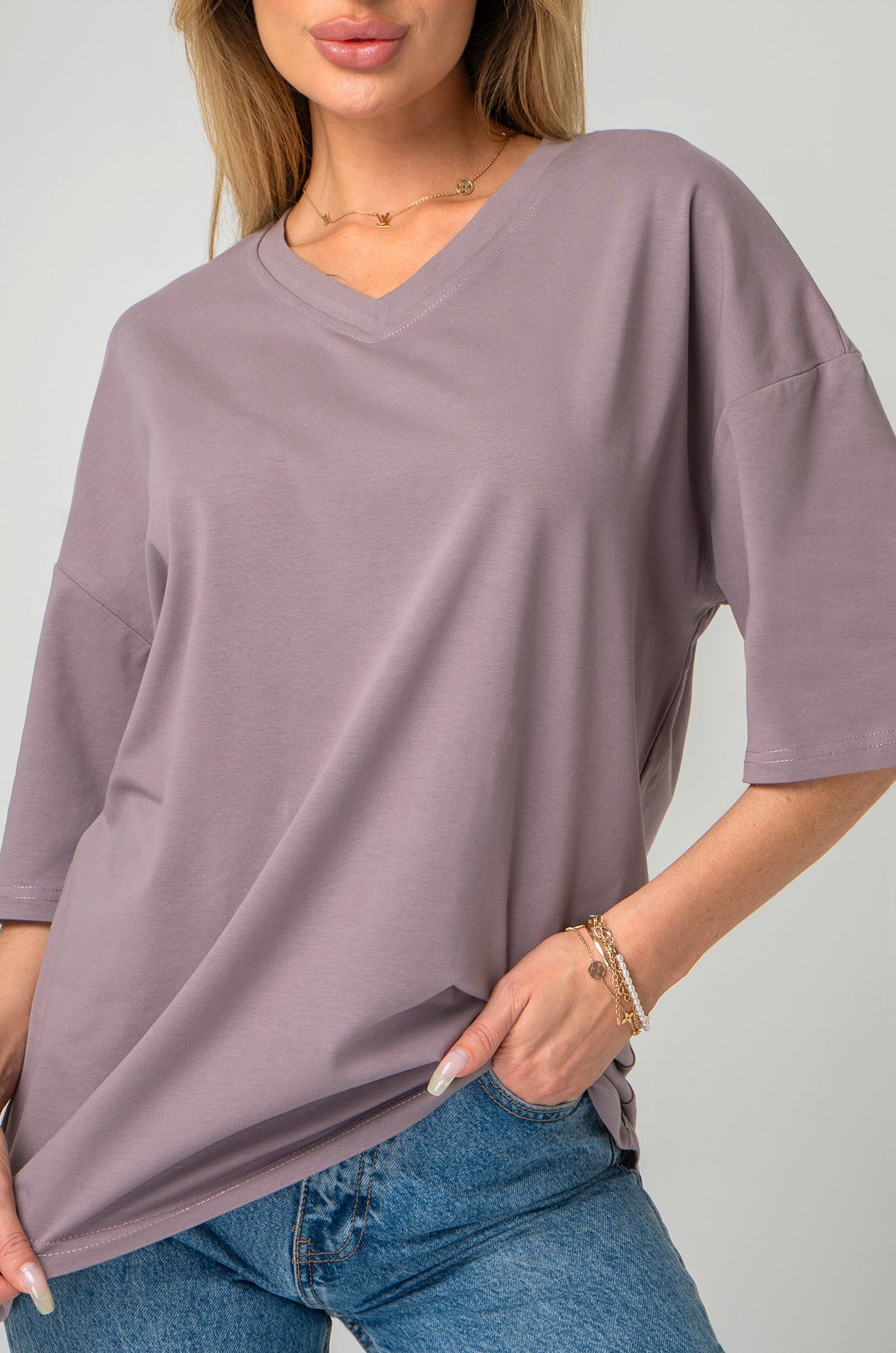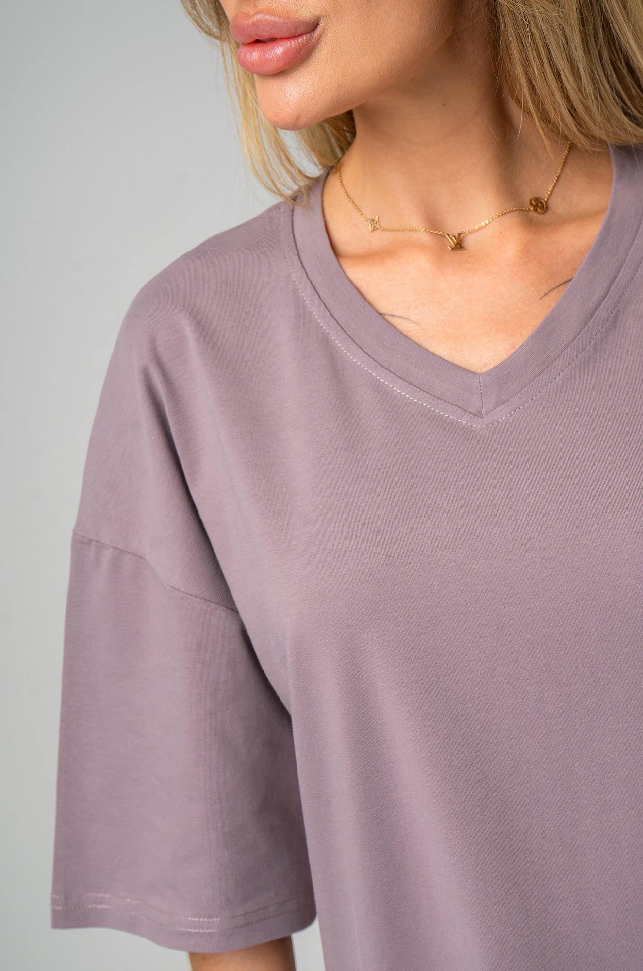 Женская футболка с v-вырезом добавит комфорта в любой день. Однотонная футболка оверсайз цвета какао выполнена из хлопка с эластаном. Oversize-крой дарит свободу и расслабленный силуэт. Спущенная линия плеча не стесняет движений и создаёт чувство лёгкости.