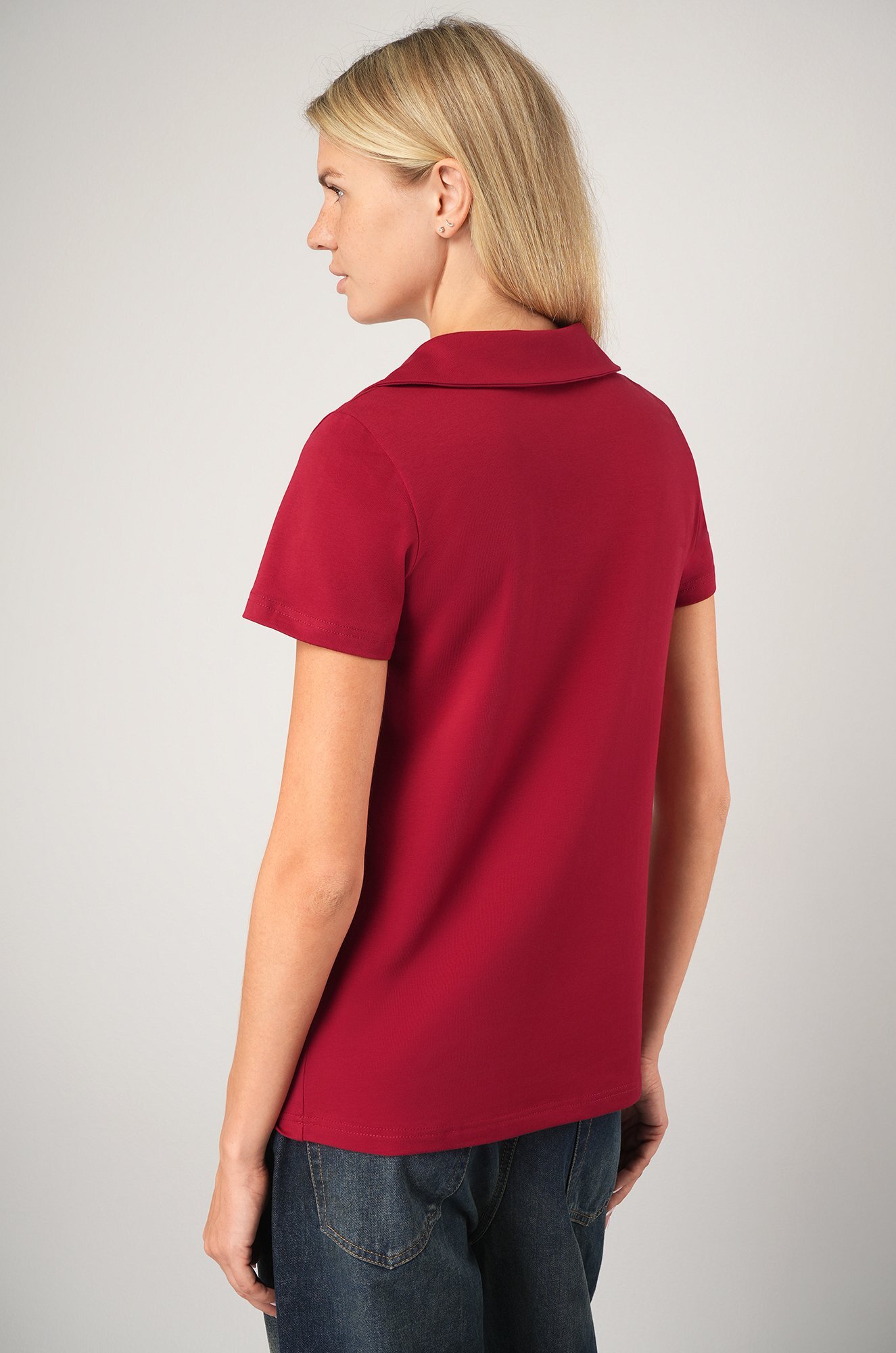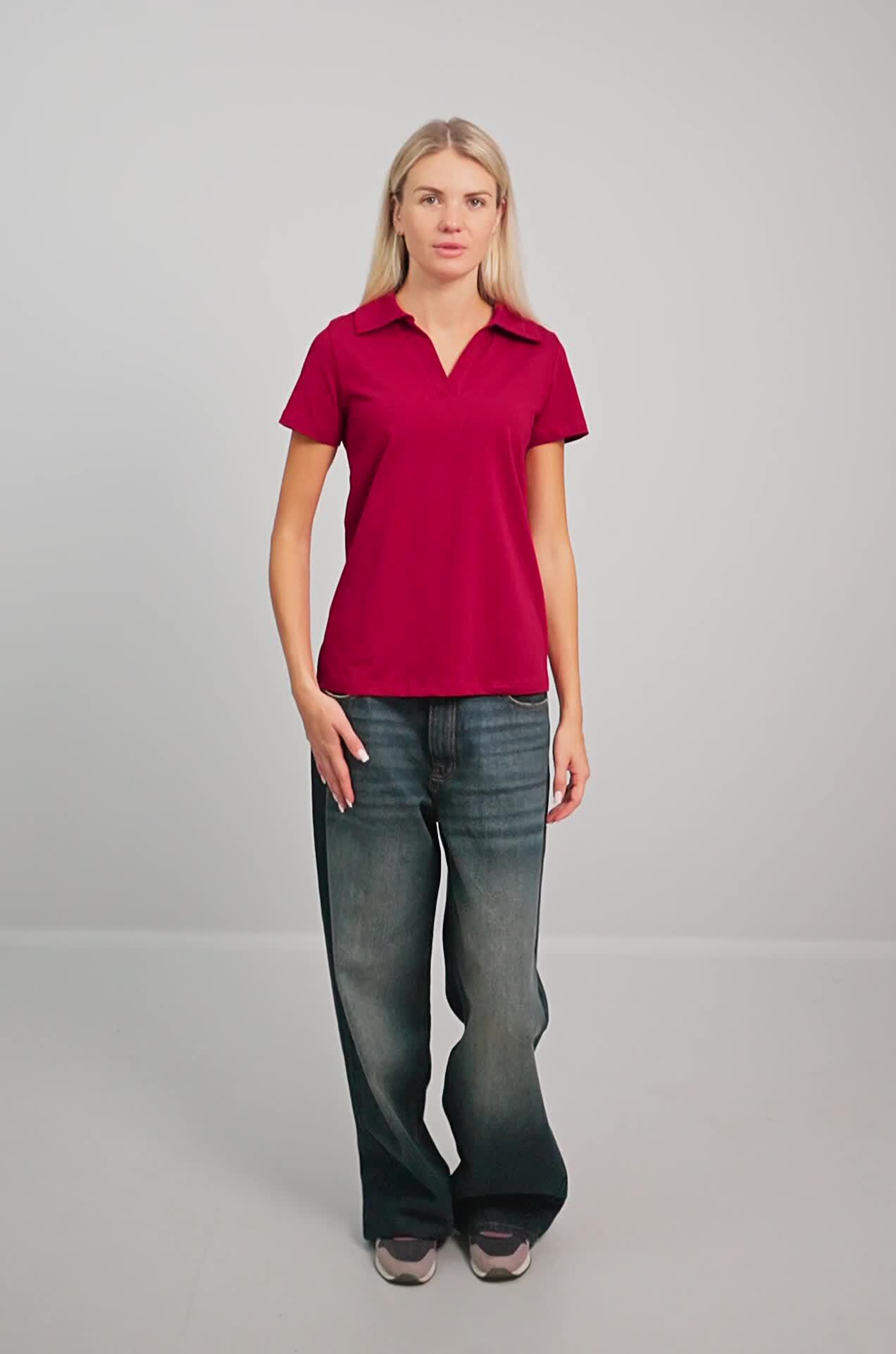 Бордовая футболка поло из трикотажа кулирная гладь выполнена в лаконичном дизайне: прямой крой, отложной воротник и V-вырез добавляют изящности. Хлопковое поло подойдет для похода в офис, на прогулку и для дома.