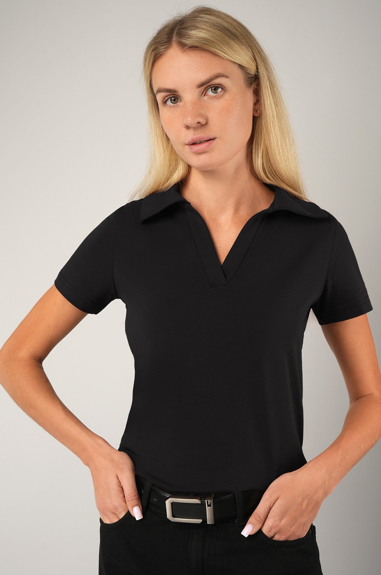 Женская футболка-поло из хлопка подарит легкость, комфорт и аккуратный внешний вид. Однотонная базовая тенниска в спортивном стиле станет твоим спутником на каждый день.