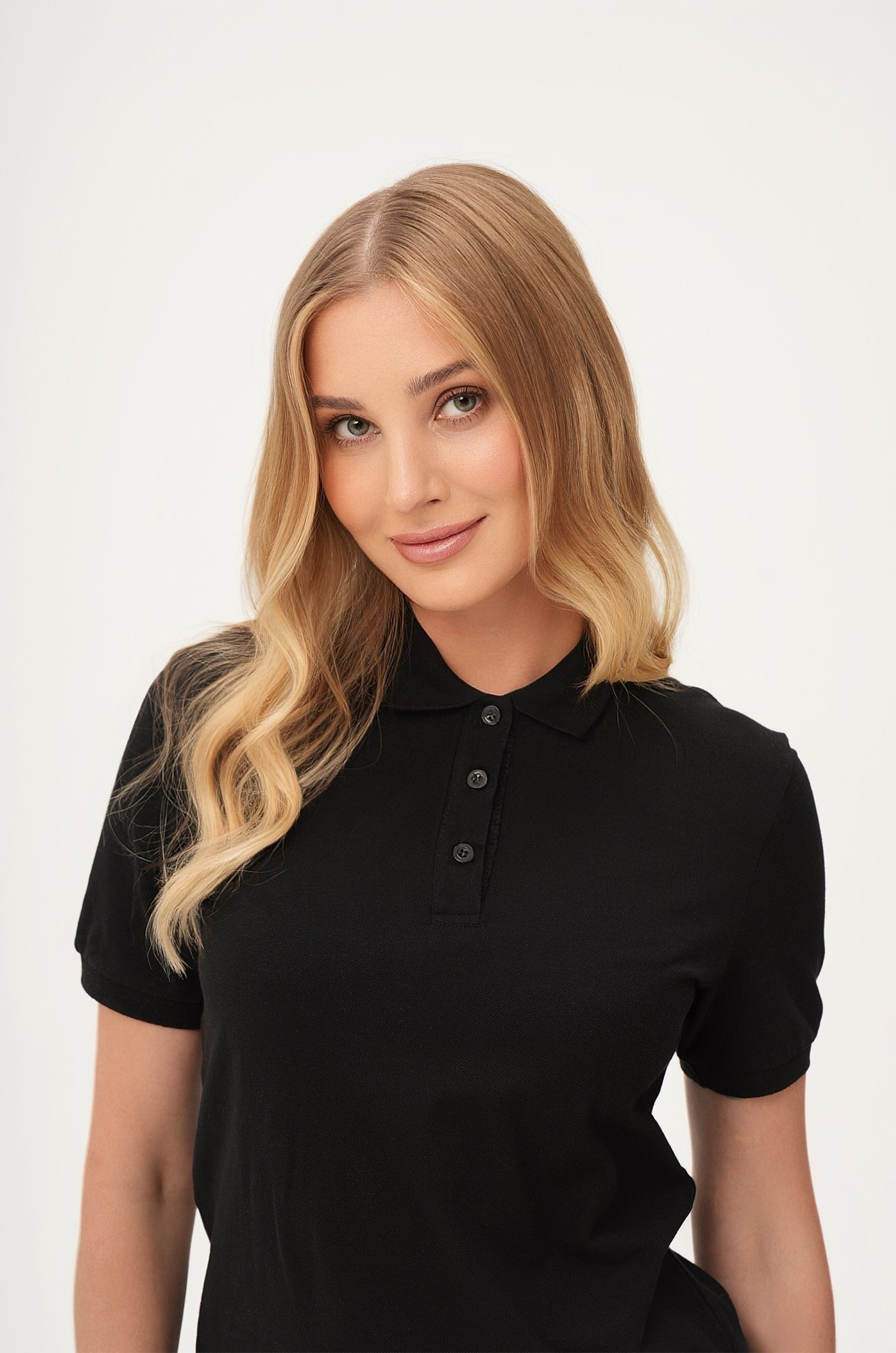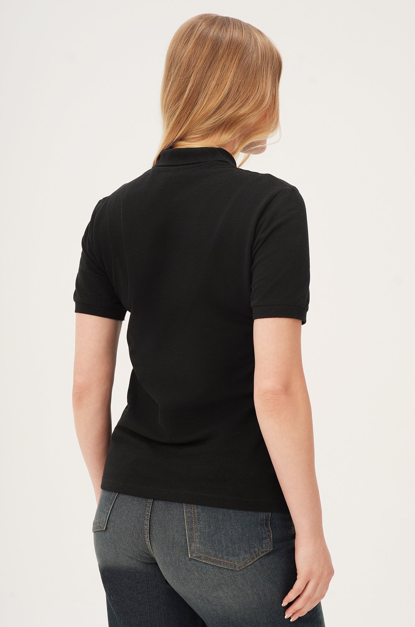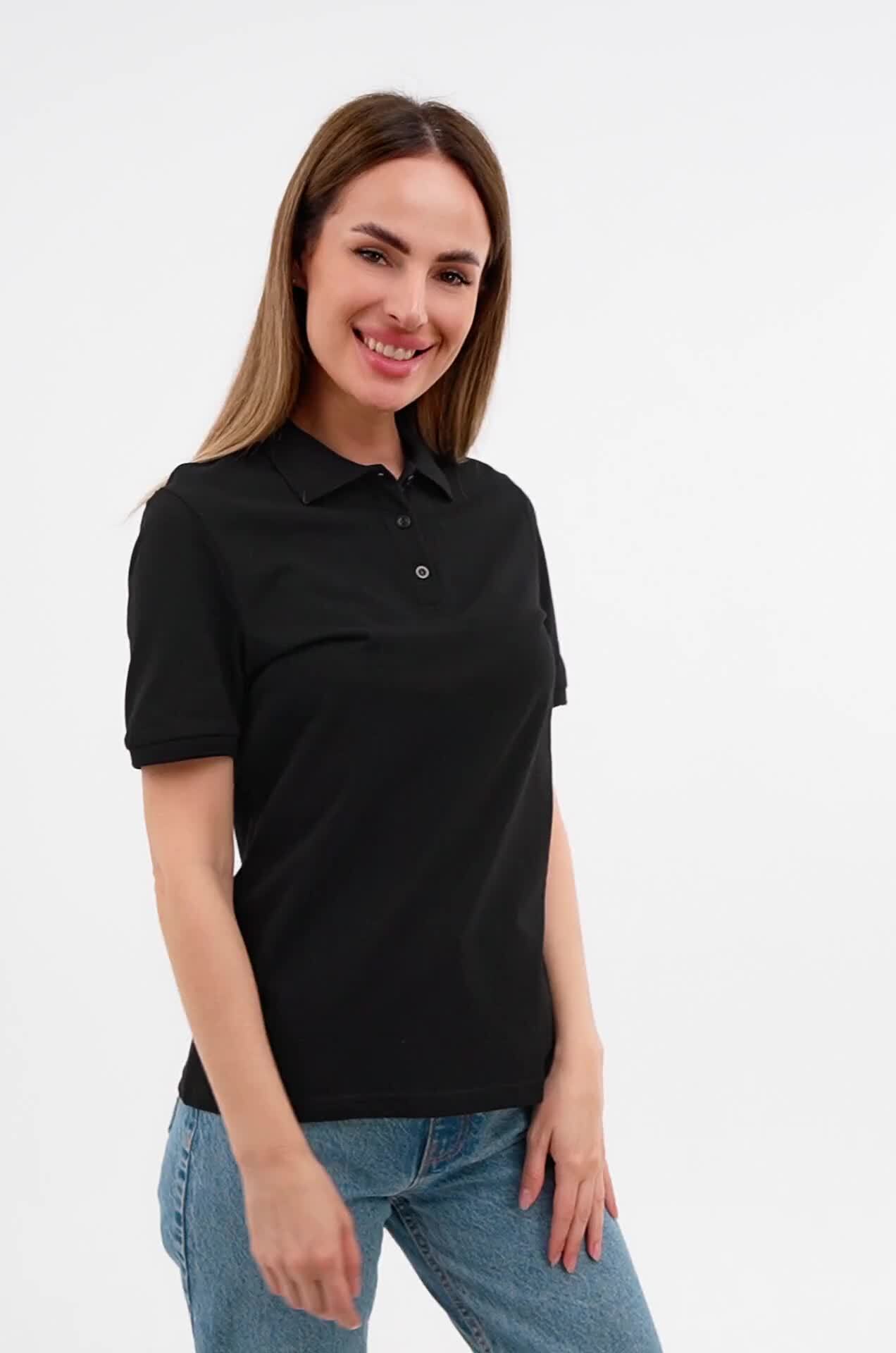 Женская футболка поло выполнена из 100% хлопка: ткань дышит, хорошо держит форму и приятна к телу.