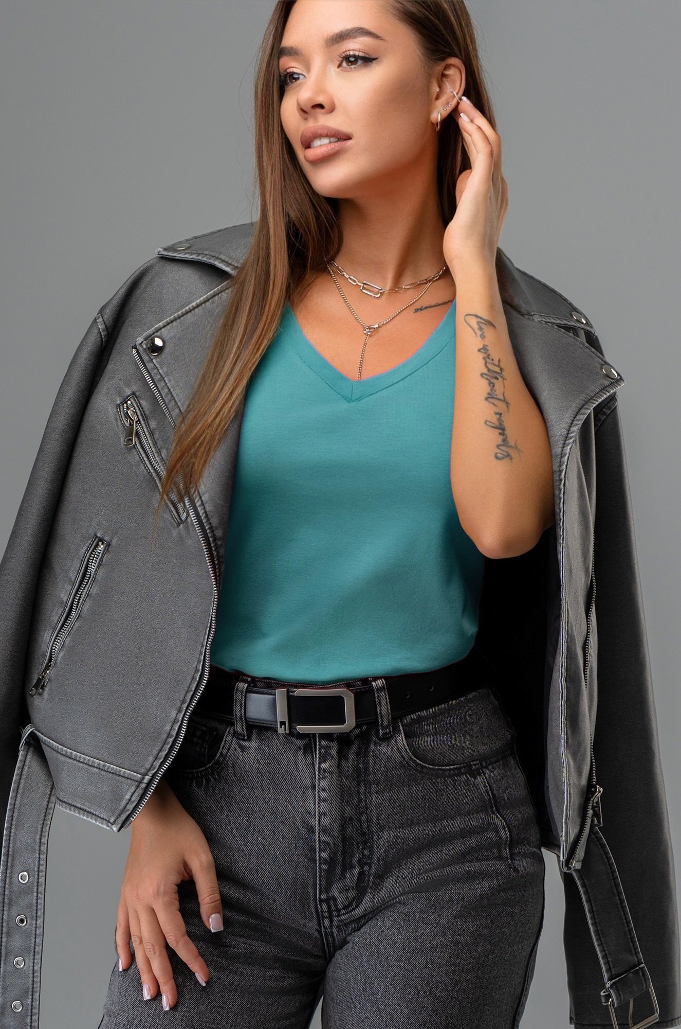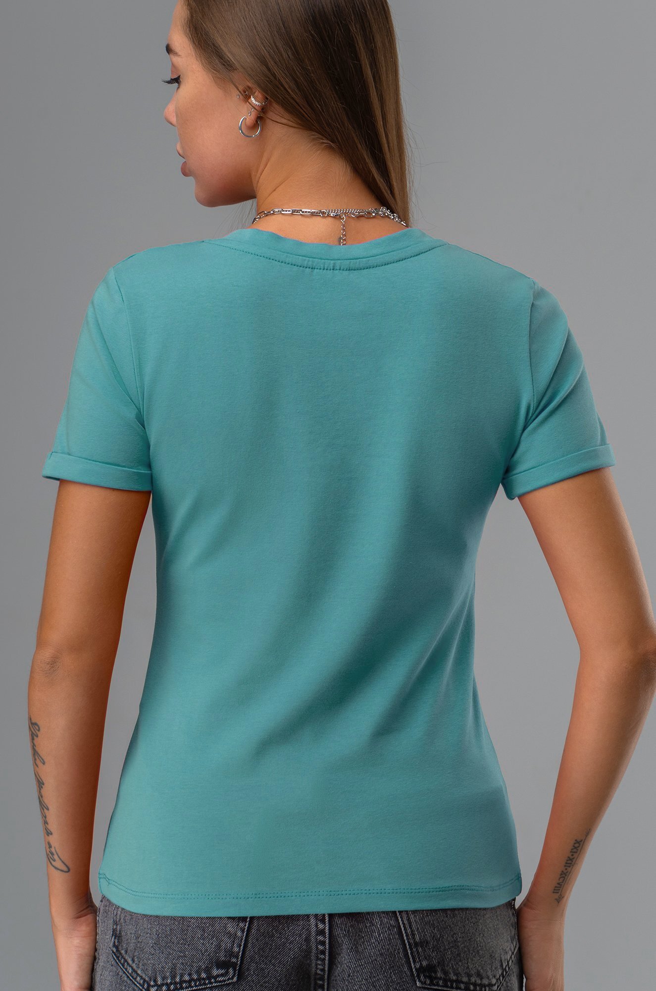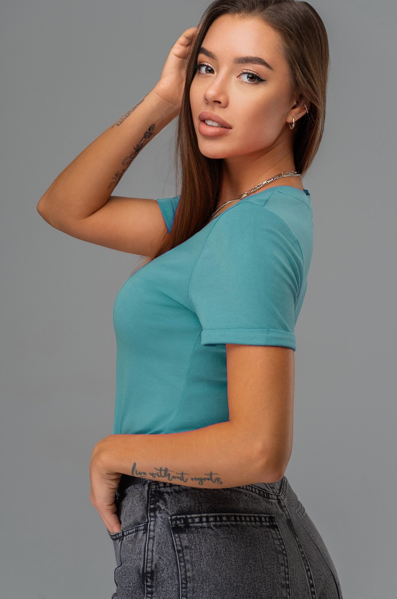 Базовая бирюзовая футболка из фуллайкры идеально подойдет как на каждый день, так и для более формальных мероприятий. Натуральный хлопок с добавлением эластана невероятно приятен к телу, мягкий трикотаж достаточно плотный, но при этом дышащий, отличается особым комфортом.
