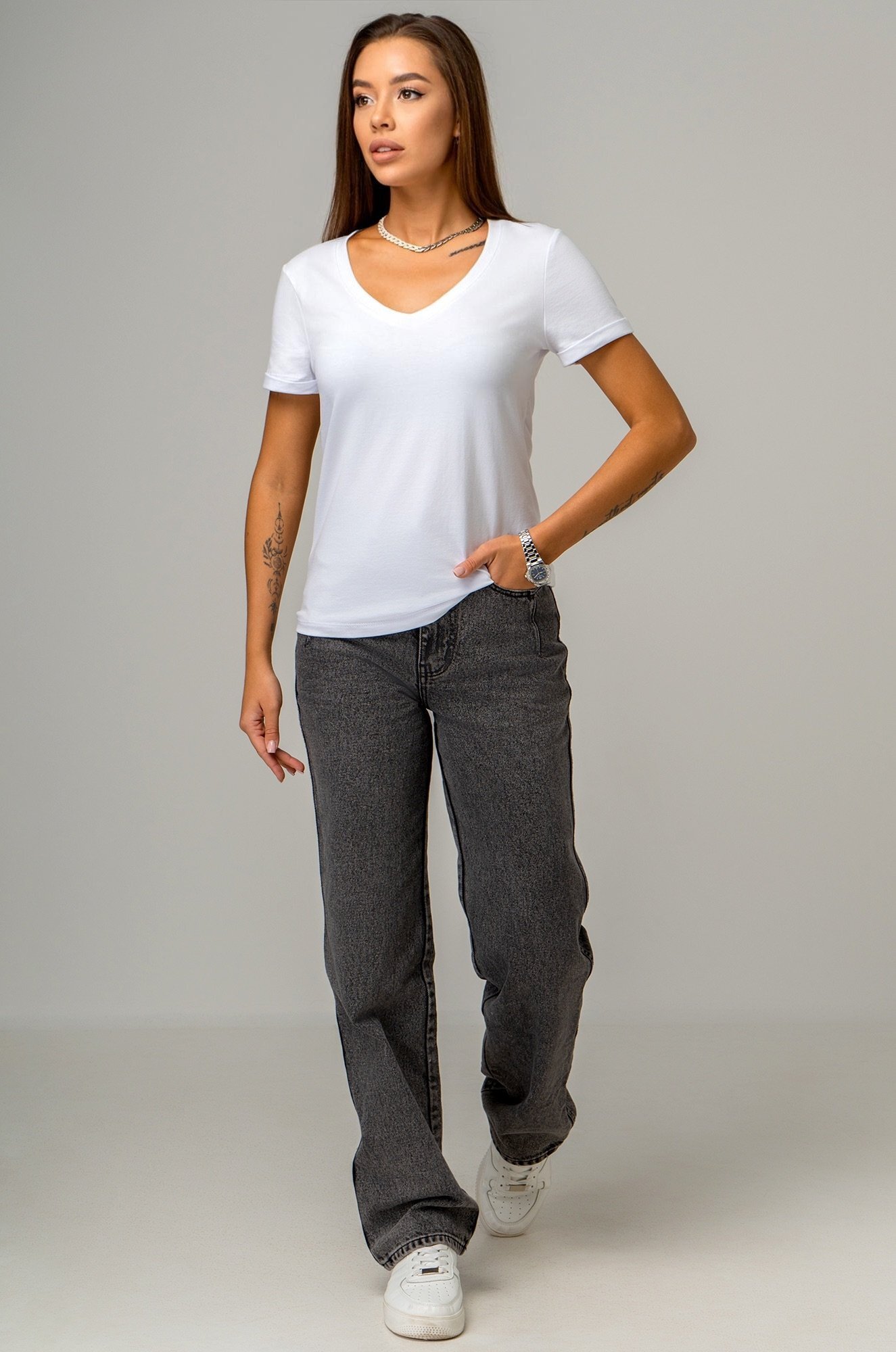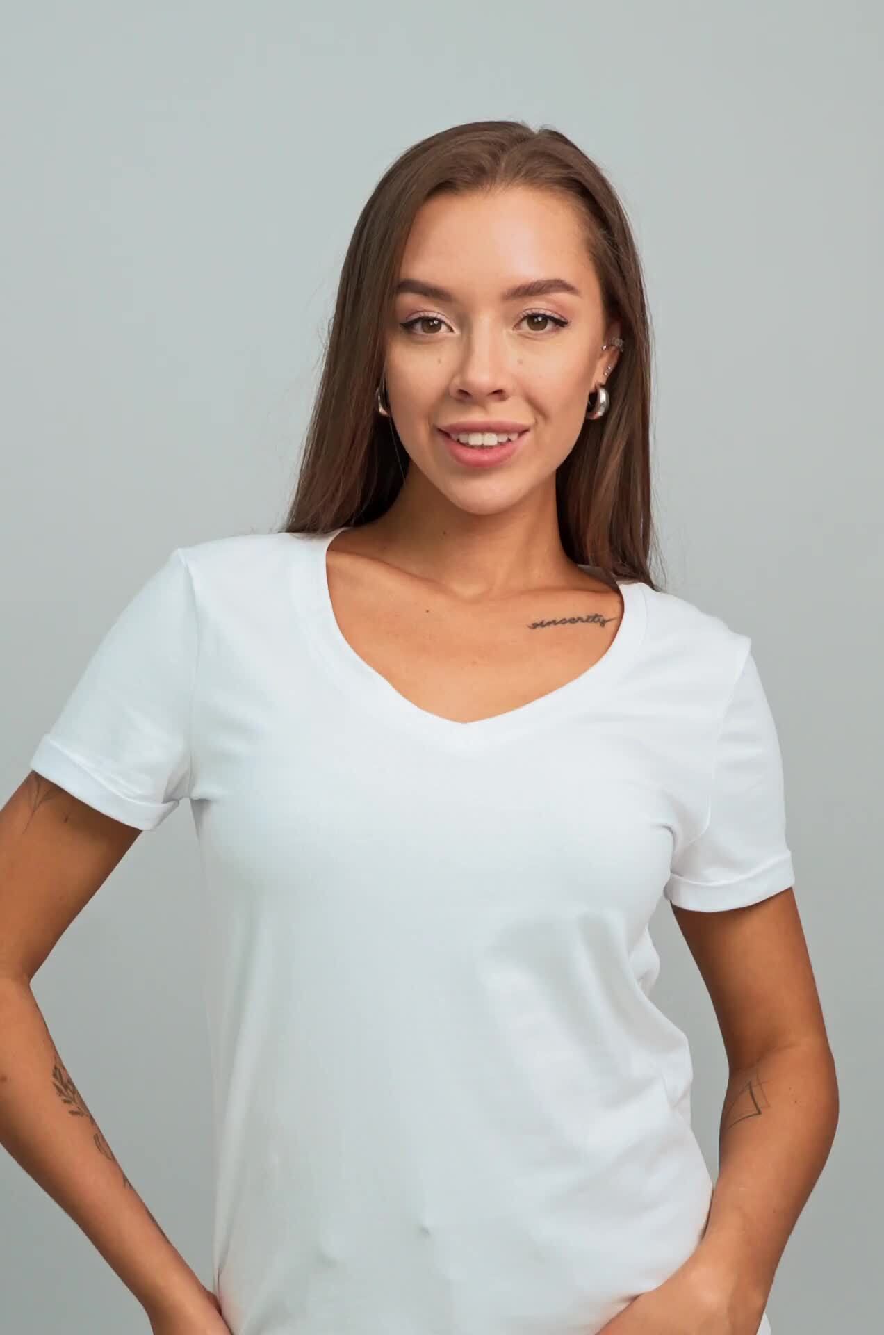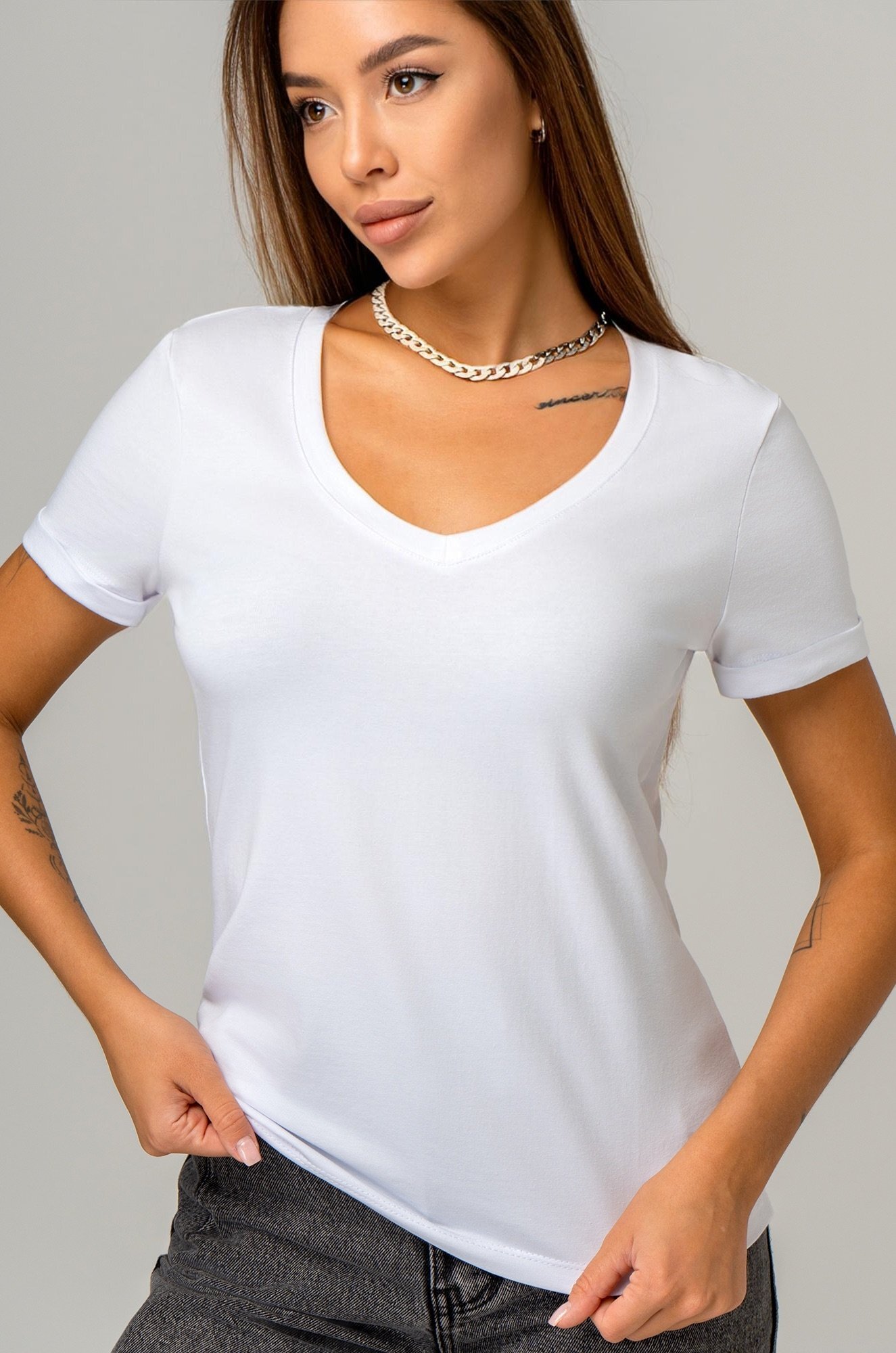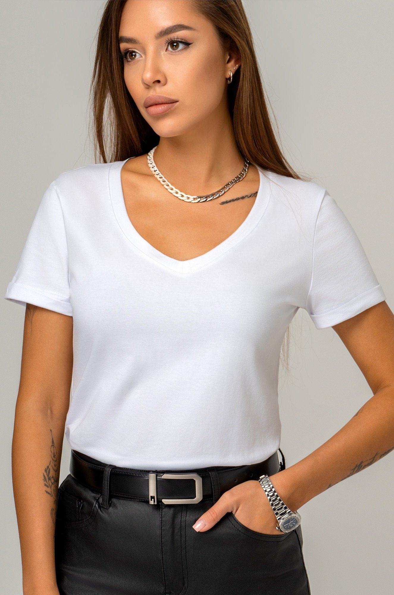 Однотонная футболка с V-образным вырезом – база, которая выручит при создании любого образа!