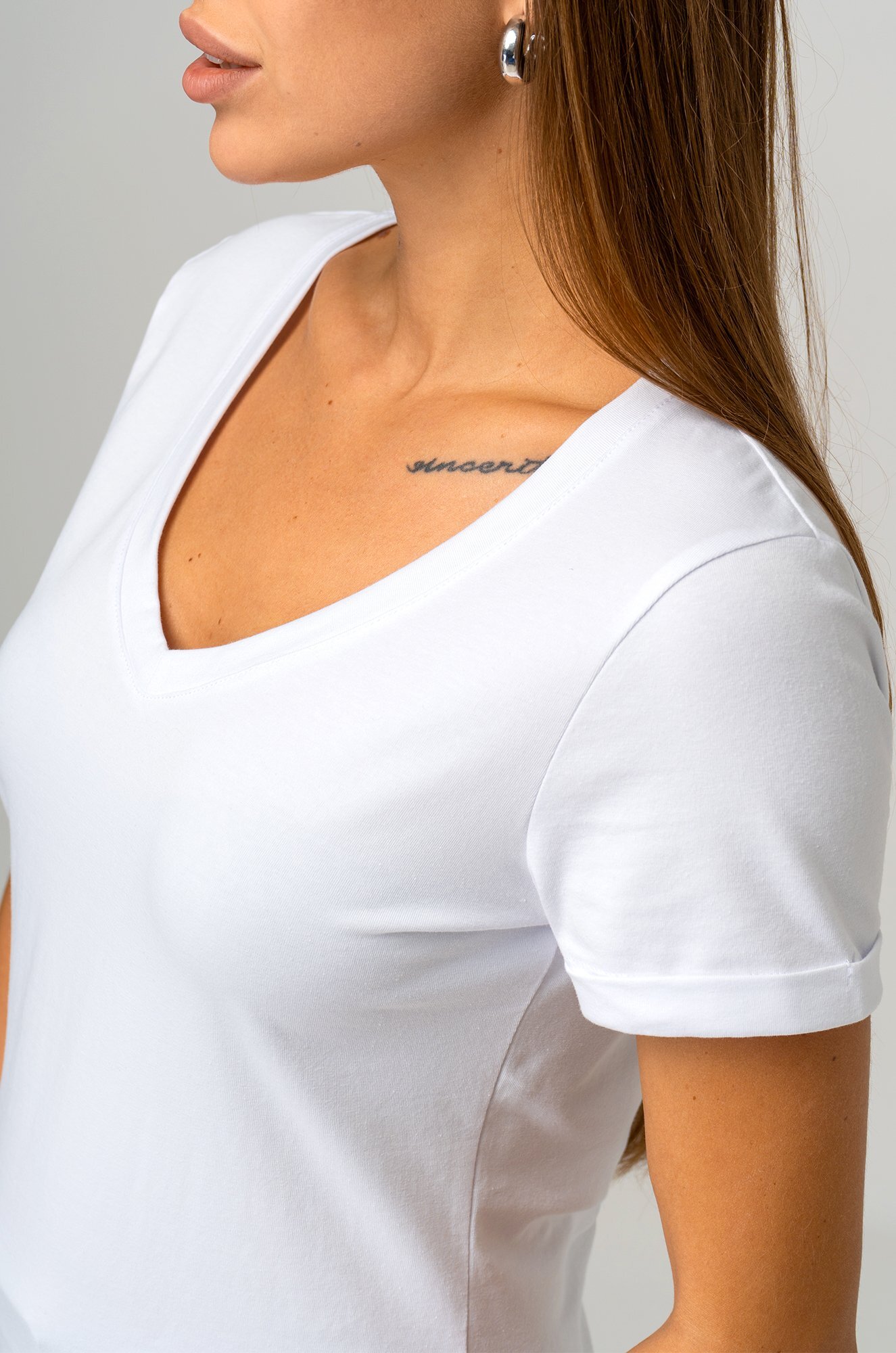Хлопковая футболка с V-вырезом – отличный выбор для повседневных образов.