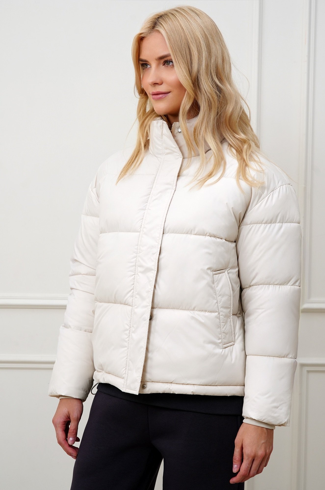 Прямой крой, стеганая фактура и высокая стойка делают короткую куртку зефирку практичной и женственной. Дутая куртка для женщин комфортна для весенних или осенних прогулок. Болоньевая куртка идеальна для активных будней.