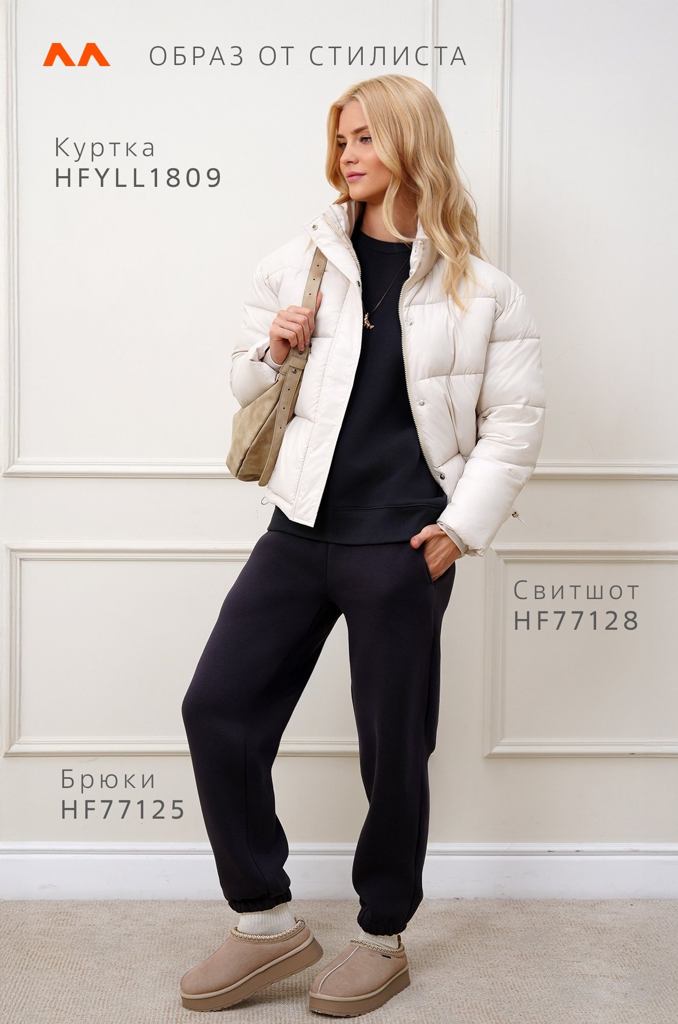 — бежевая куртка создает современный аккуратный силуэт.