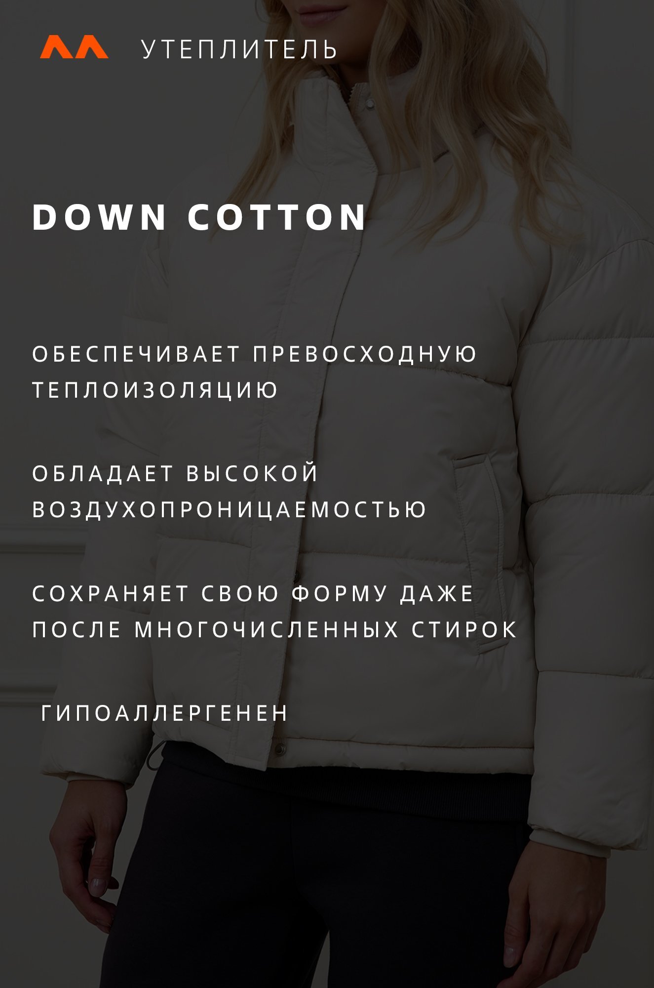 — утеплитель Down cotton (синтепон) с оптимальной плотностью 200 г/м²;