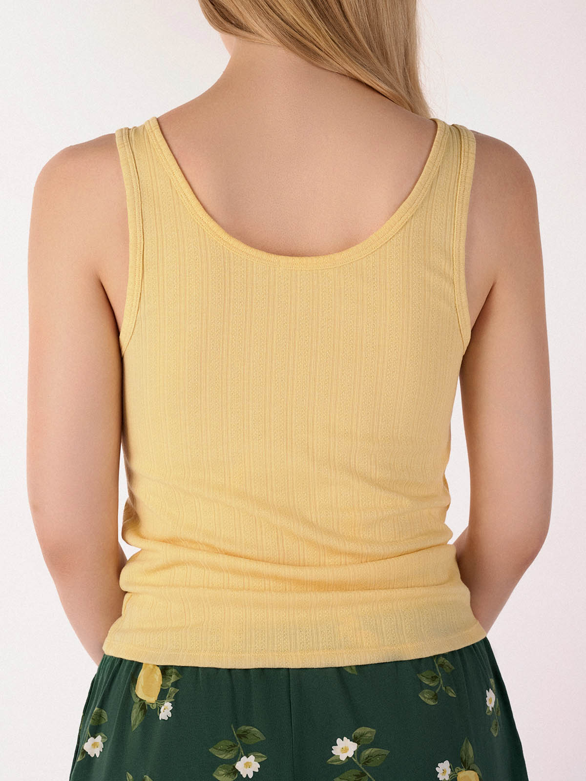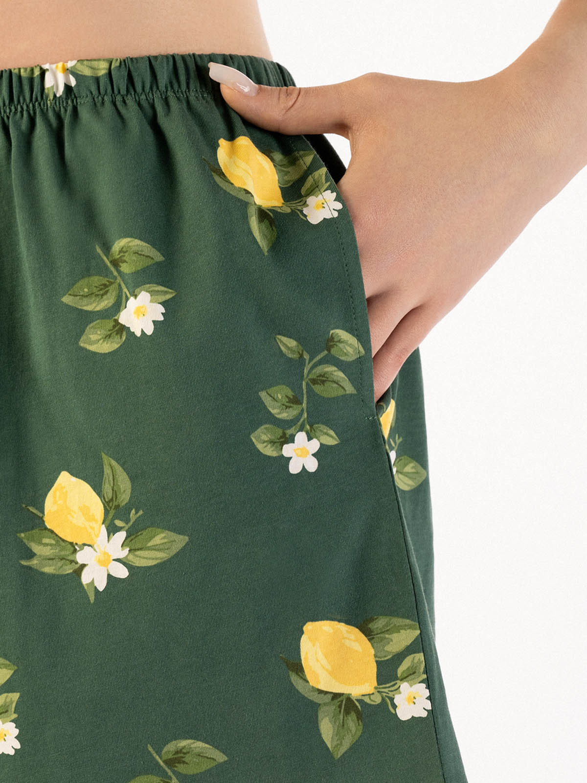 Легкая и стильная пижама для комфортного сна и отдыха. Сочетание дышащих материалов и яркого летнего дизайна с лимонами создает настроение свежести и уюта. Идеально подходит для теплых летних ночей.