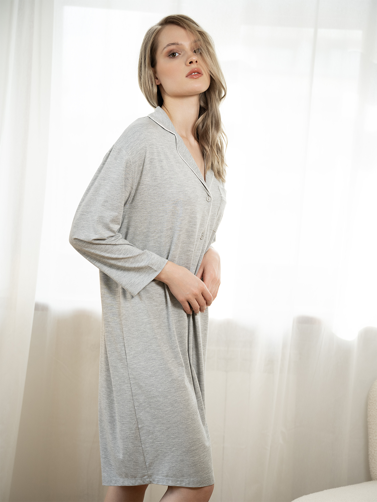 Лёгкая и приятная к телу ткань обеспечивает комфорт и свободу движений, а универсальный оттенок делает сорочку отличным выбором для домашнего отдыха и сна.