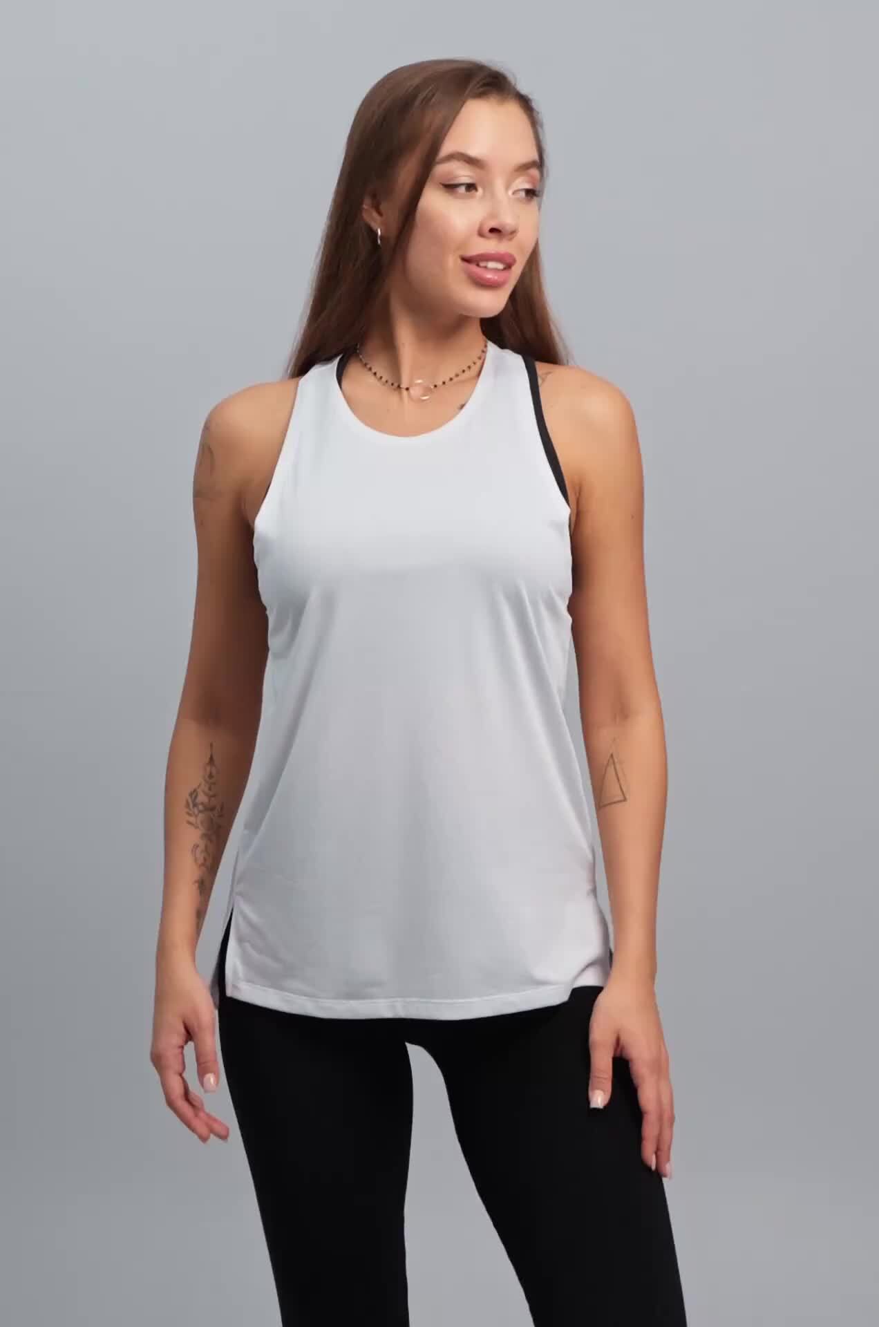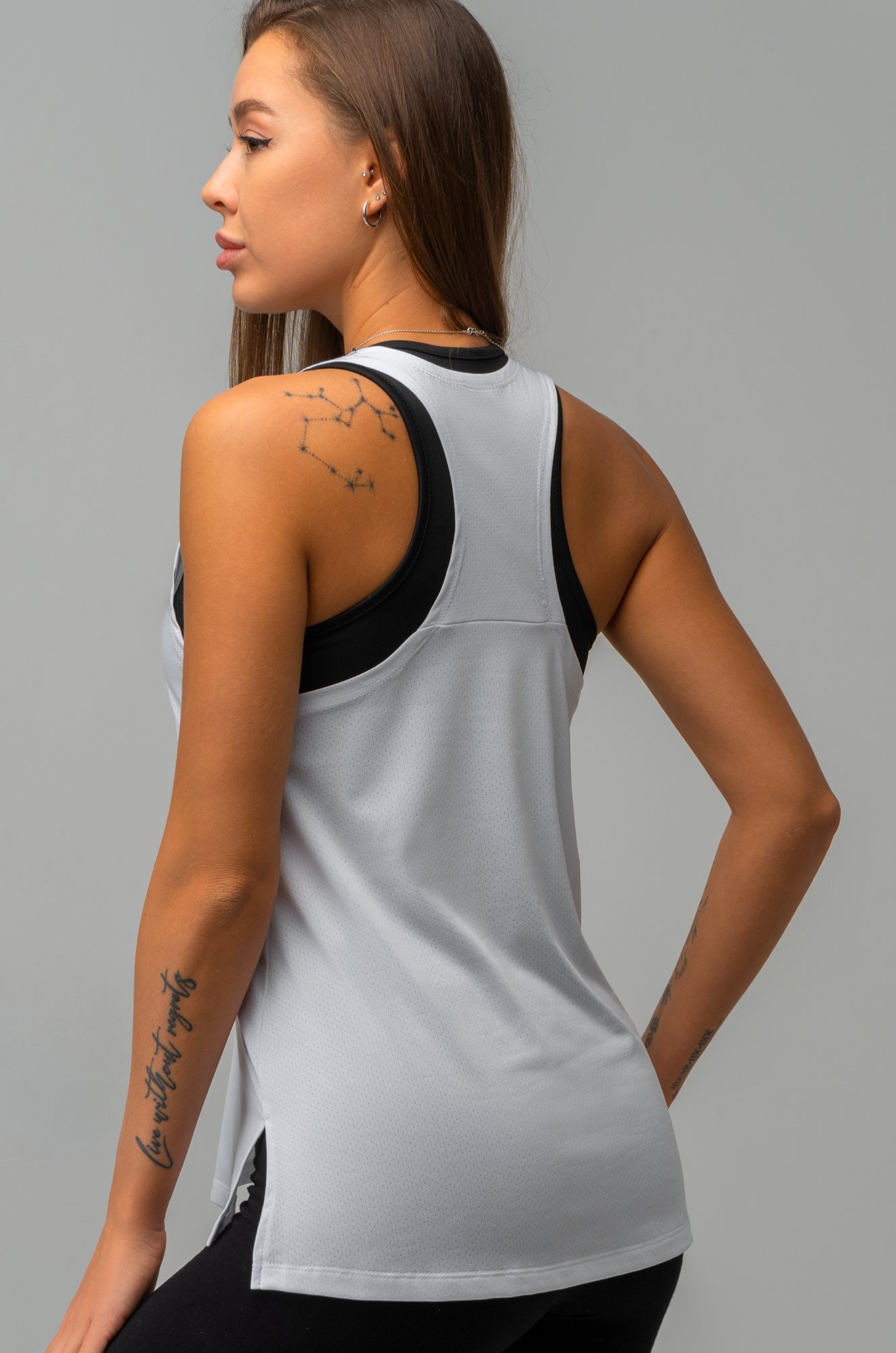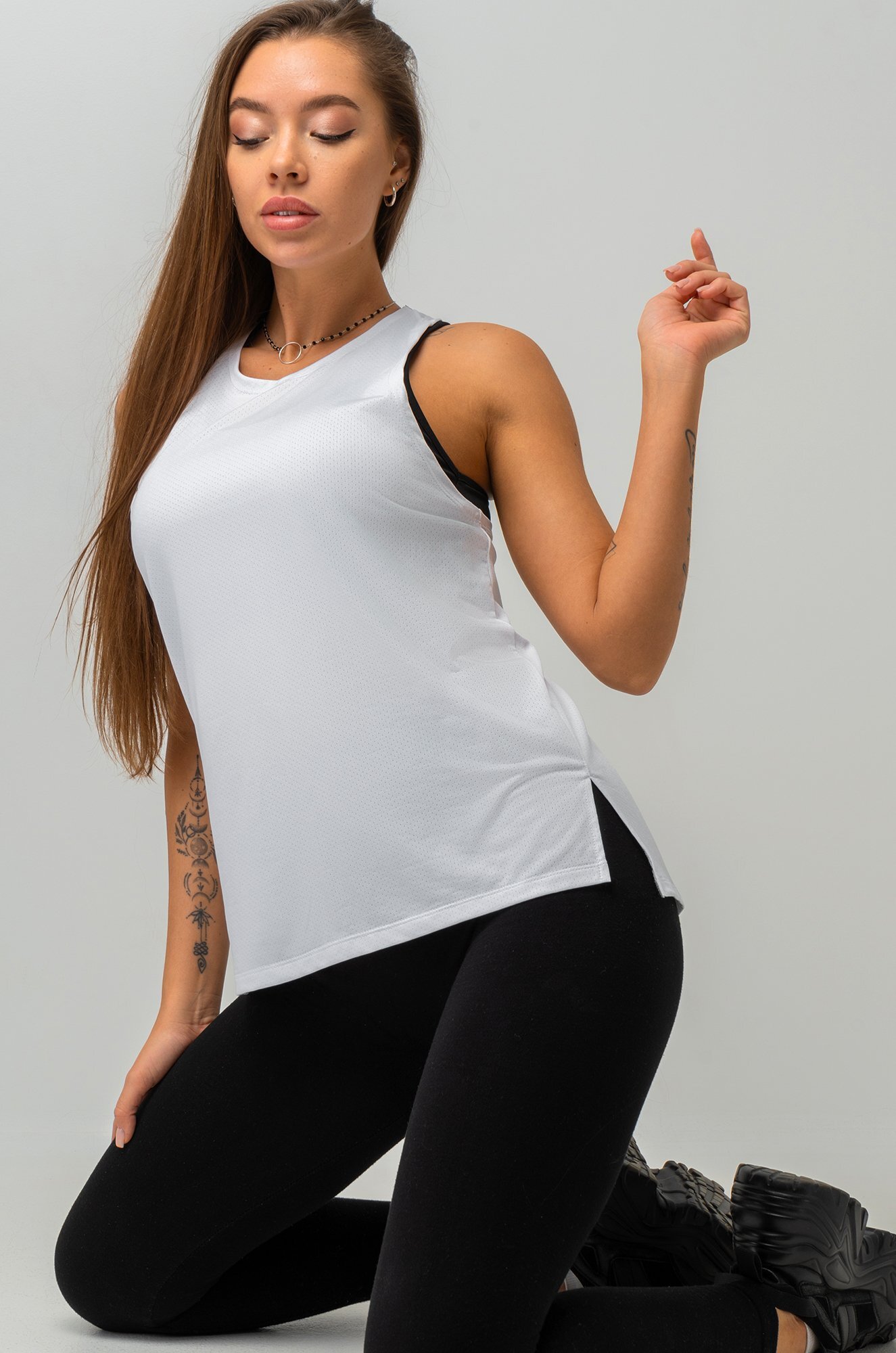 Белая майка-топ выполнена из перфорированной ткани – отличный вариант для спорта. Модель отлично пропускает воздух и отводит лишнюю влагу, позволяя сосредоточиться только на тренировочном процессе. Состав из 100% полиэстера придаёт майке прочность и исключительную легкость, что делает её идеальным выбором для активного образа жизни. Топ легко отстирывается в прохладной воде, быстро высыхает и почти не мнется.
