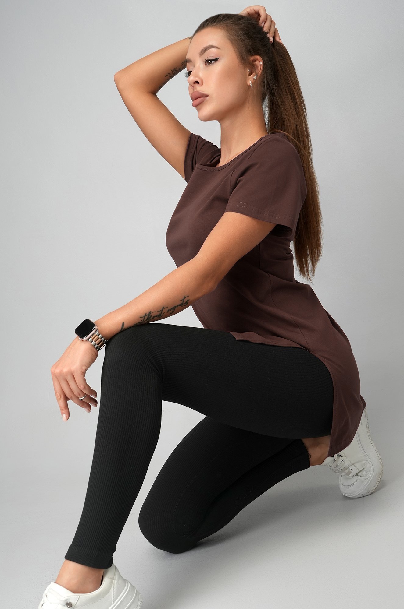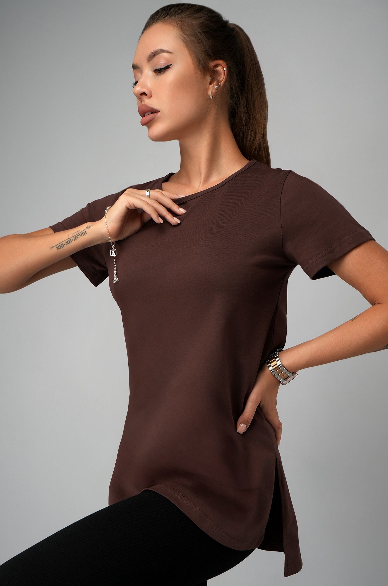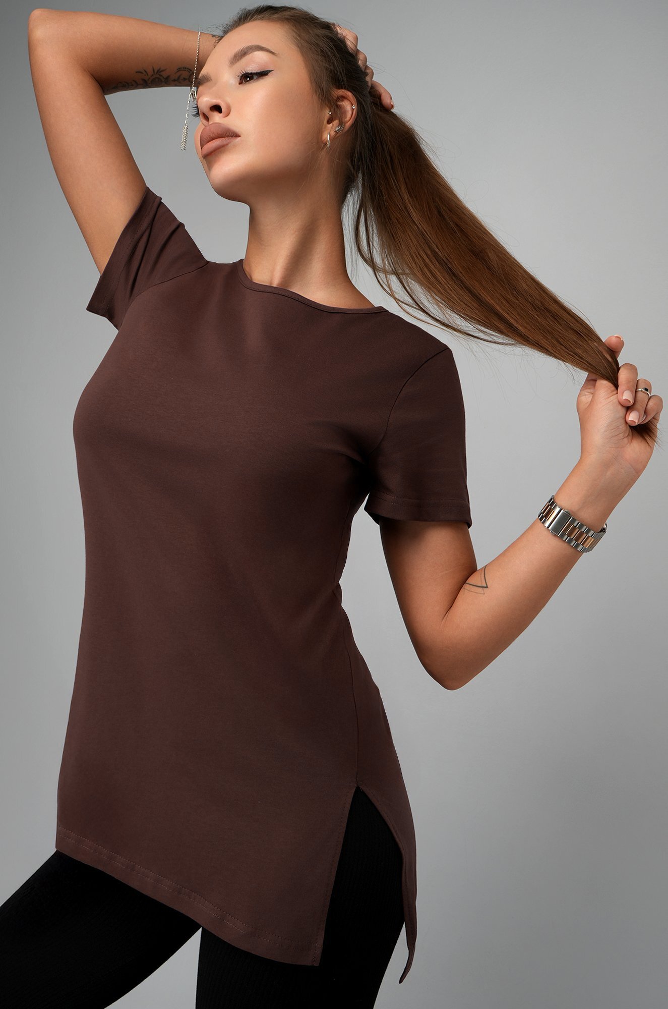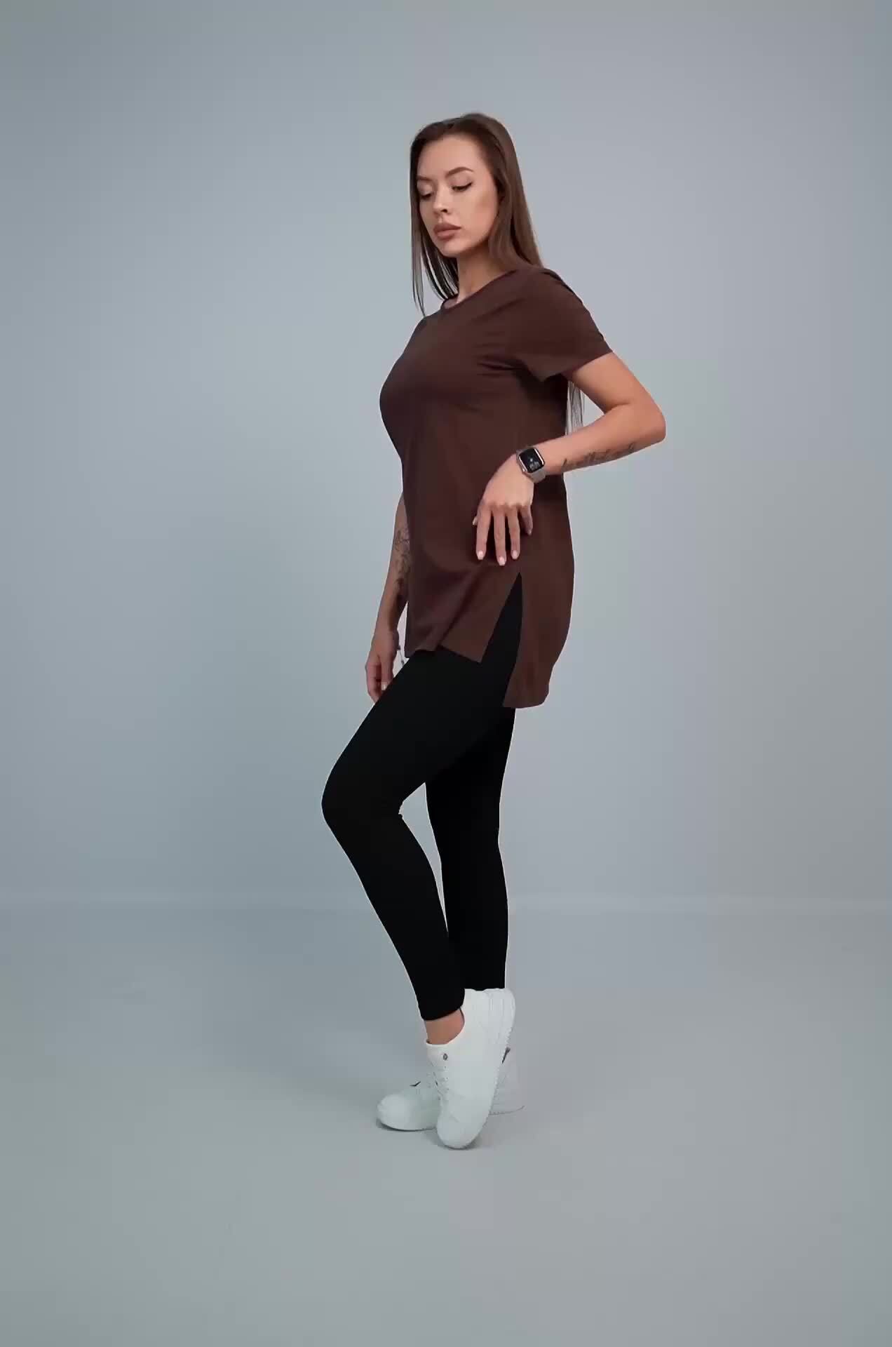 Женская футболка шоколадного цвета создана, чтобы дарить уют каждый день. Длинная и слегка приталенная модель подчеркивает фигуру и дарит комфортную посадку. Хлопковая туника станет любимицей как для дома, так и для прогулок.