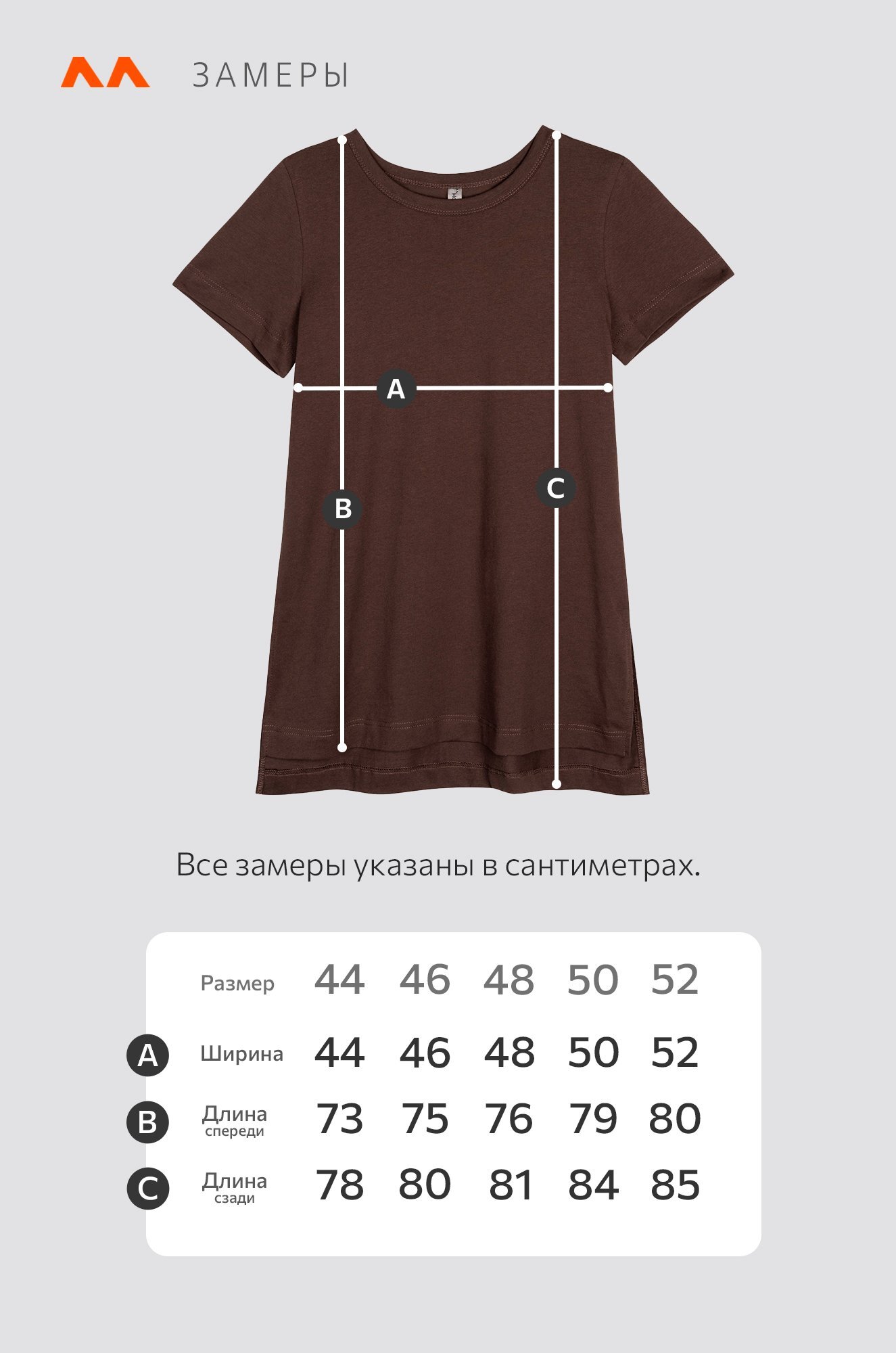 Размер 44: длина спереди:73 см; длина по спинке: 78 см; ширина:44 см.