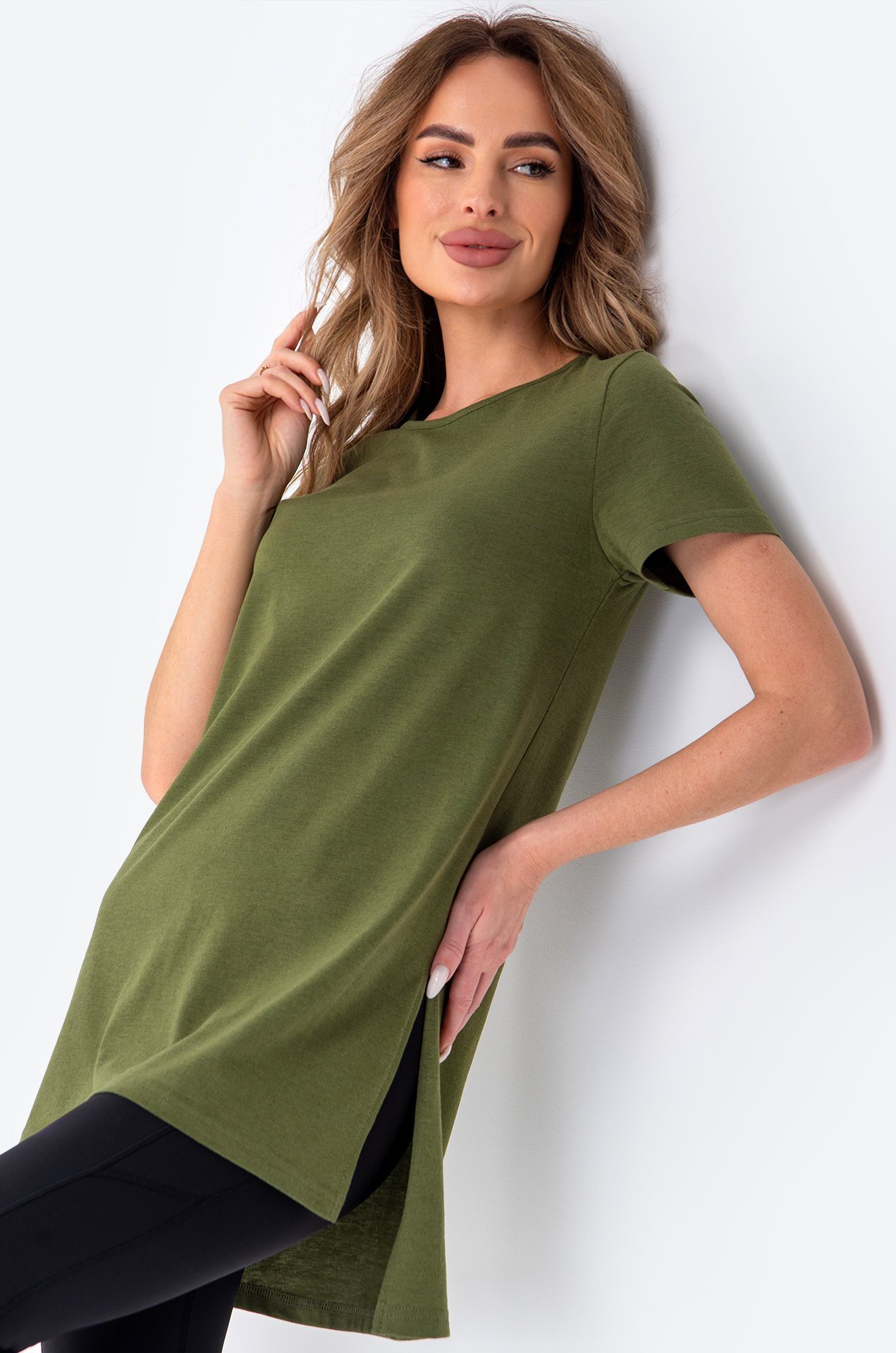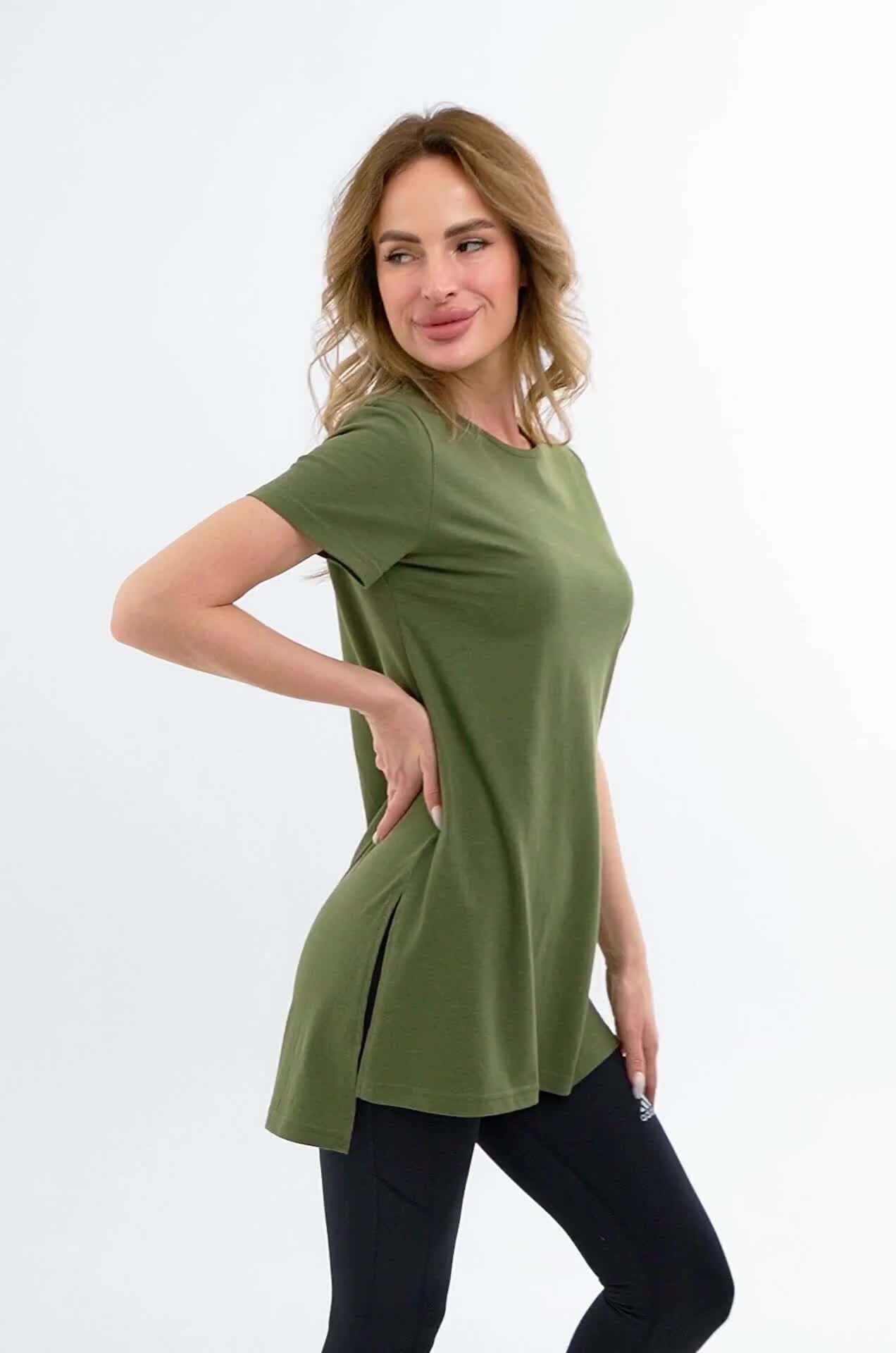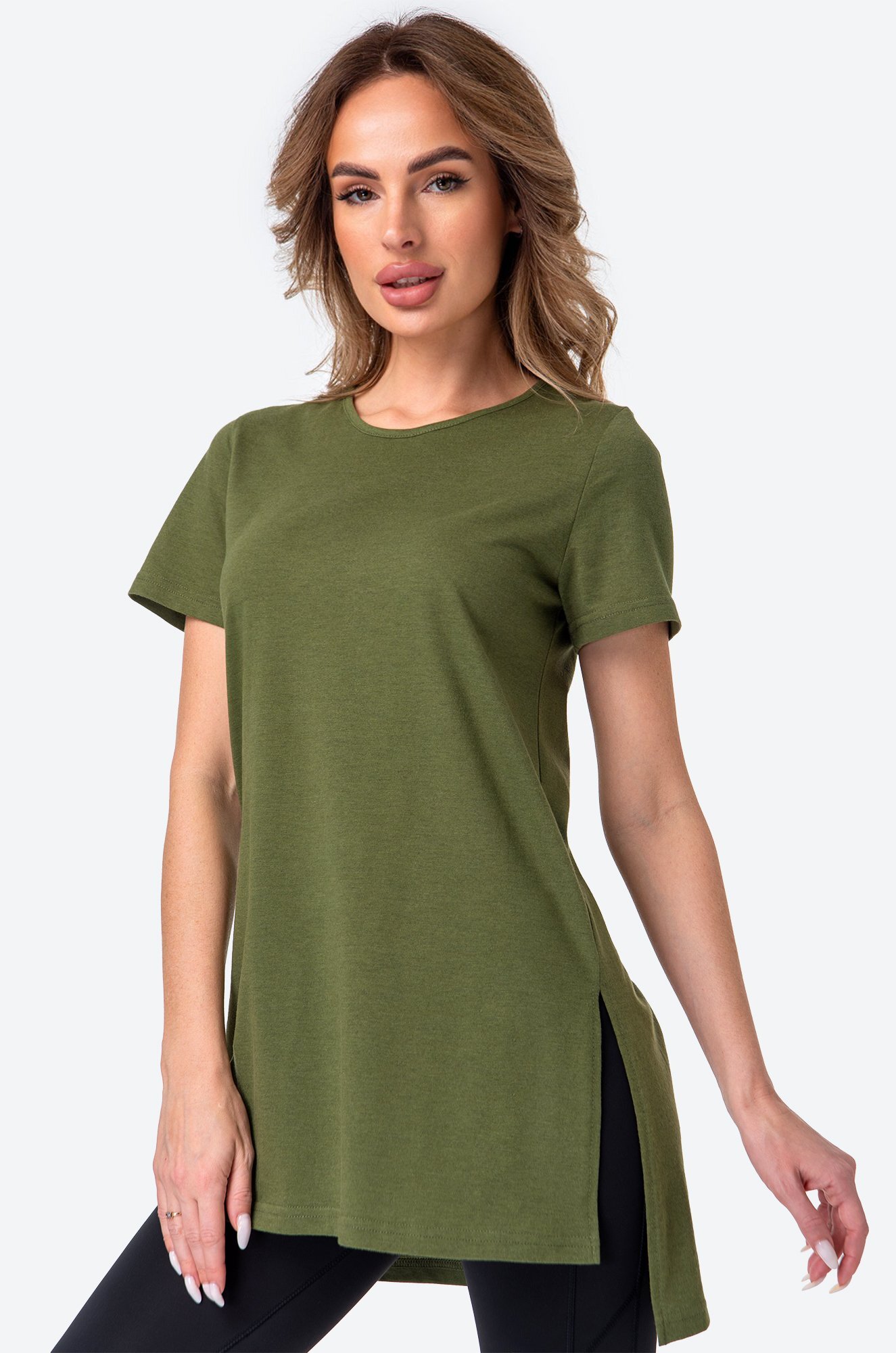 Женская футболка цвета хаки создана, чтобы дарить уют каждый день. Длинная и слегка приталенная модель подчеркивает фигуру и дарит комфортную посадку. Хлопковая туника станет любимицей как для дома, так и для прогулок.