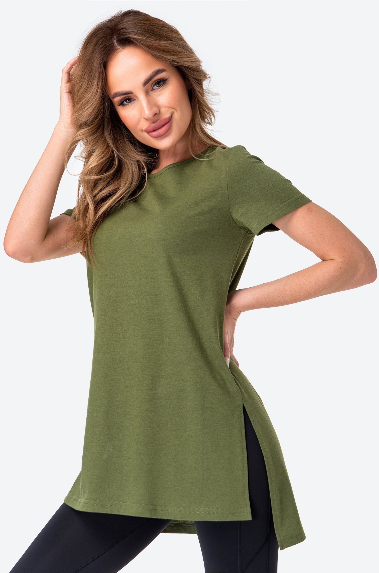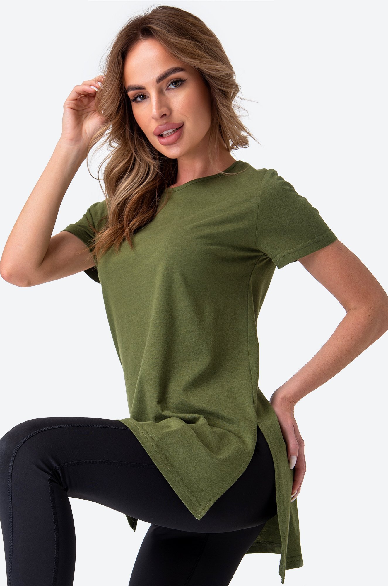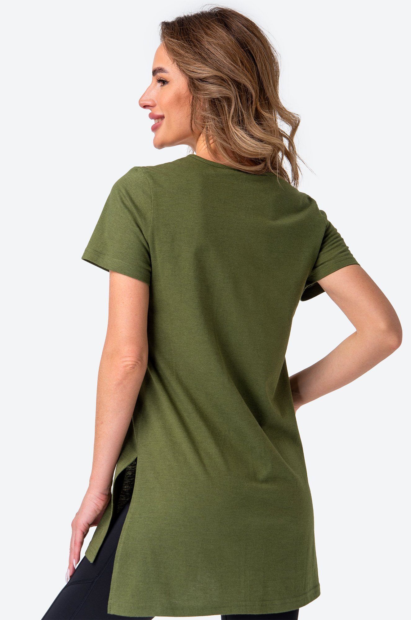 Женская футболка цвета хаки создана, чтобы дарить уют каждый день. Длинная и слегка приталенная модель подчеркивает фигуру и дарит комфортную посадку. Хлопковая туника станет любимицей как для дома, так и для прогулок.