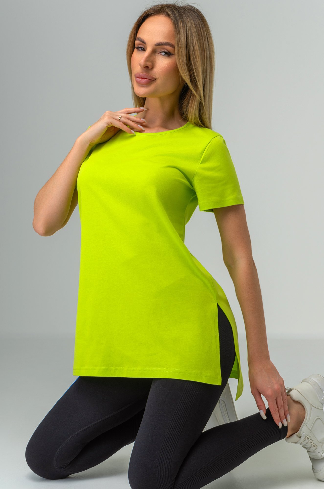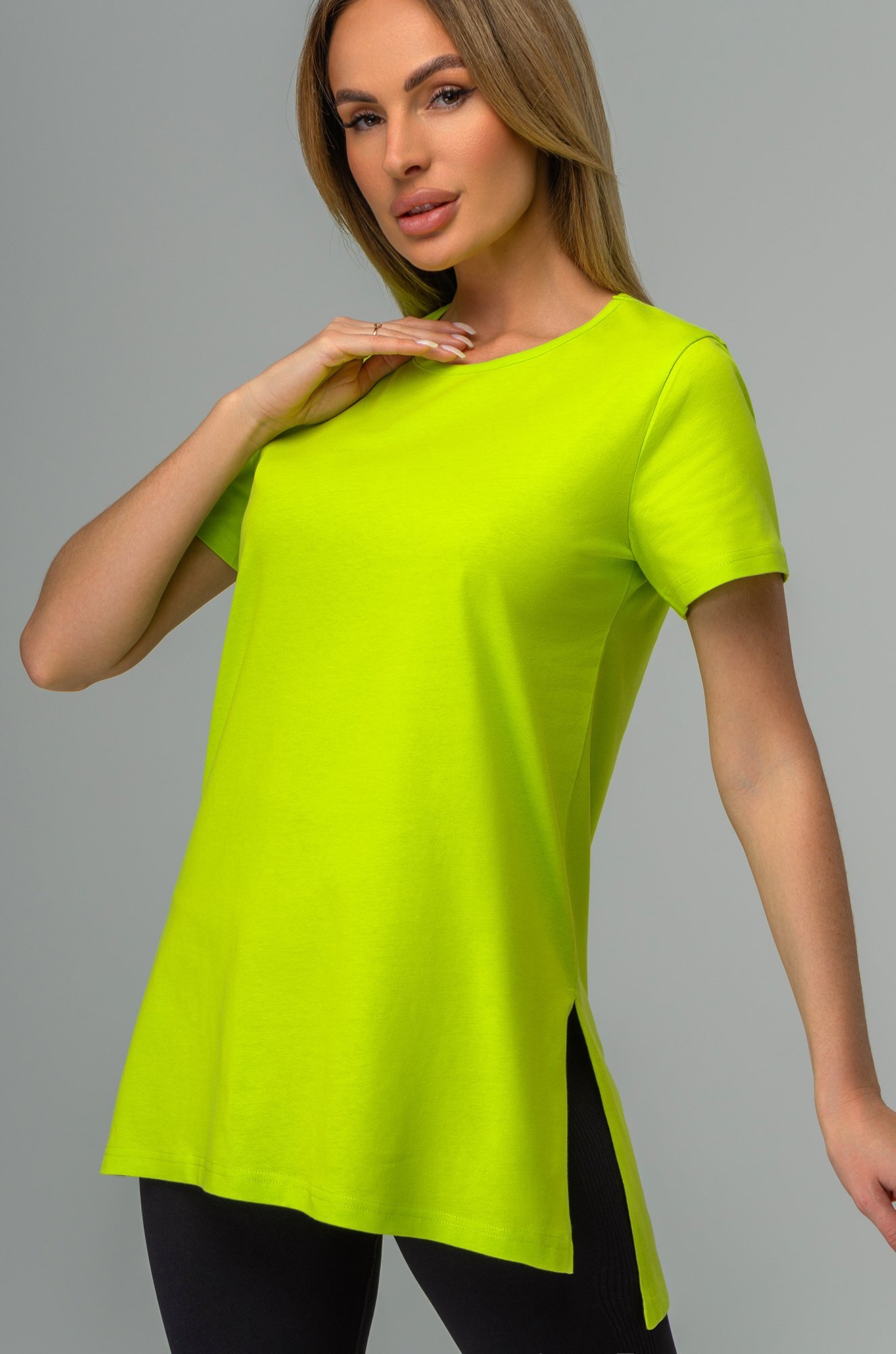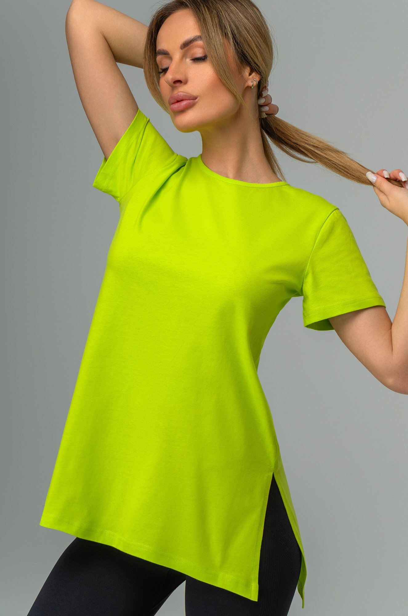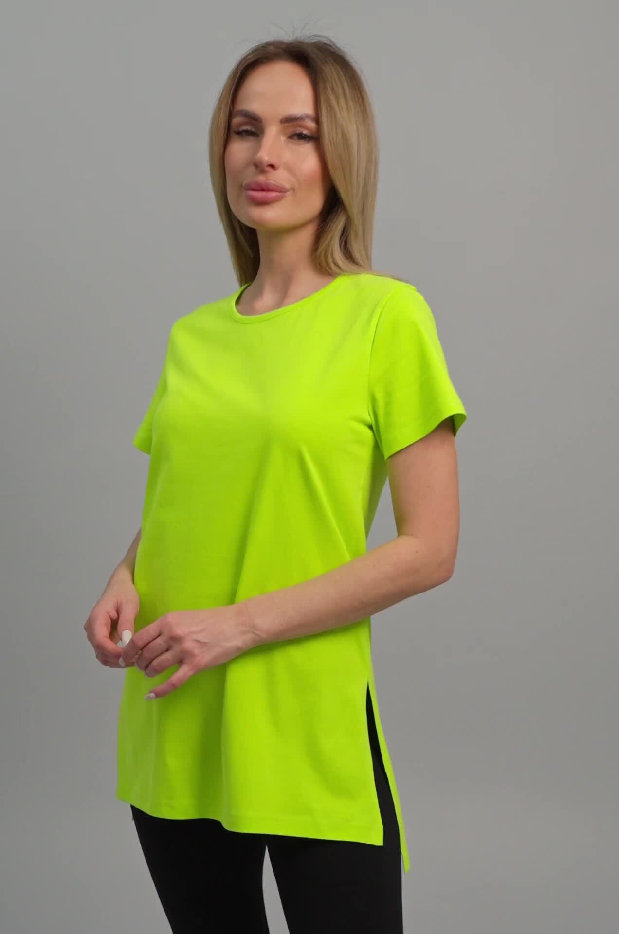 Женская футболка лаймового цвета создана, чтобы дарить уют каждый день. Длинная и слегка приталенная модель подчеркивает фигуру и дарит комфортную посадку. Хлопковая туника станет любимицей как для дома, так и для прогулок.