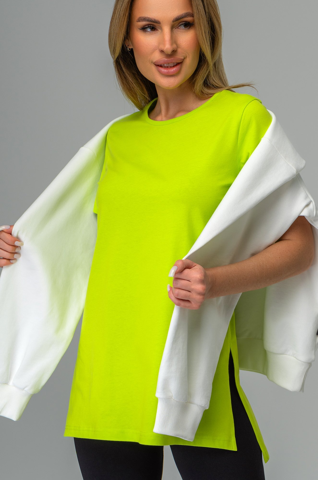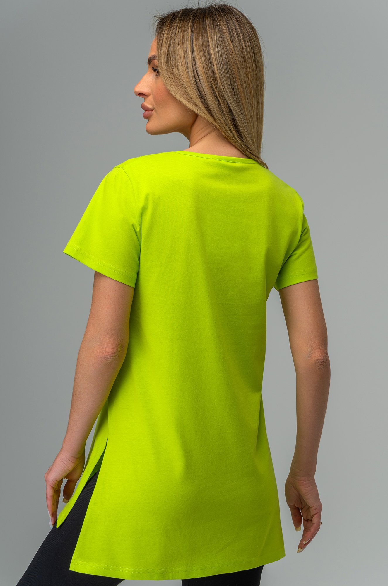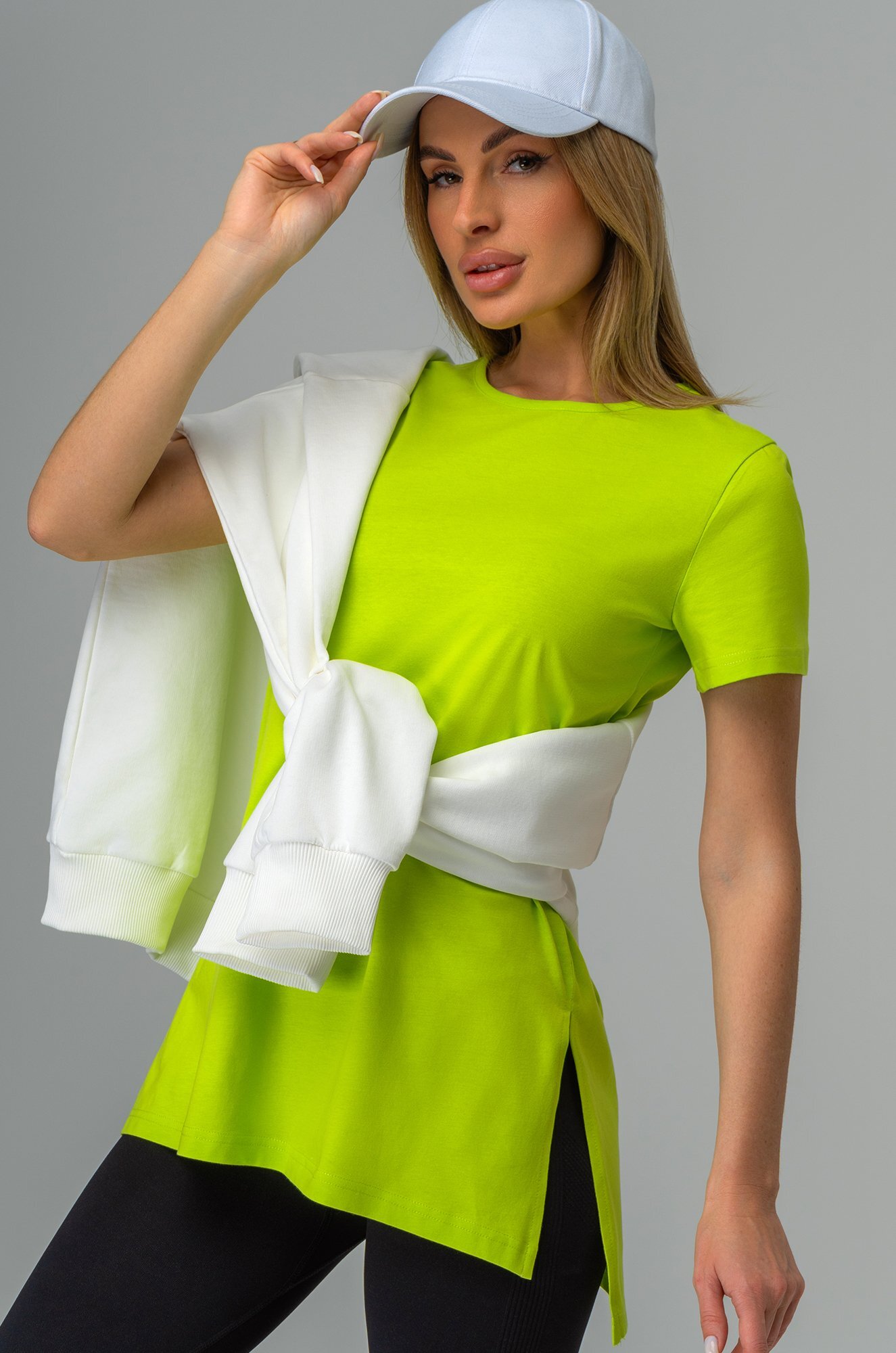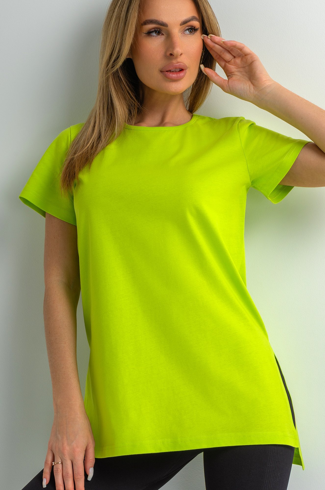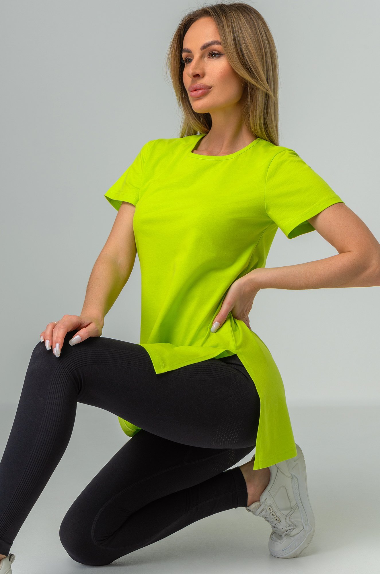 Женская футболка лаймового цвета создана, чтобы дарить уют каждый день. Длинная и слегка приталенная модель подчеркивает фигуру и дарит комфортную посадку. Хлопковая туника станет любимицей как для дома, так и для прогулок.
