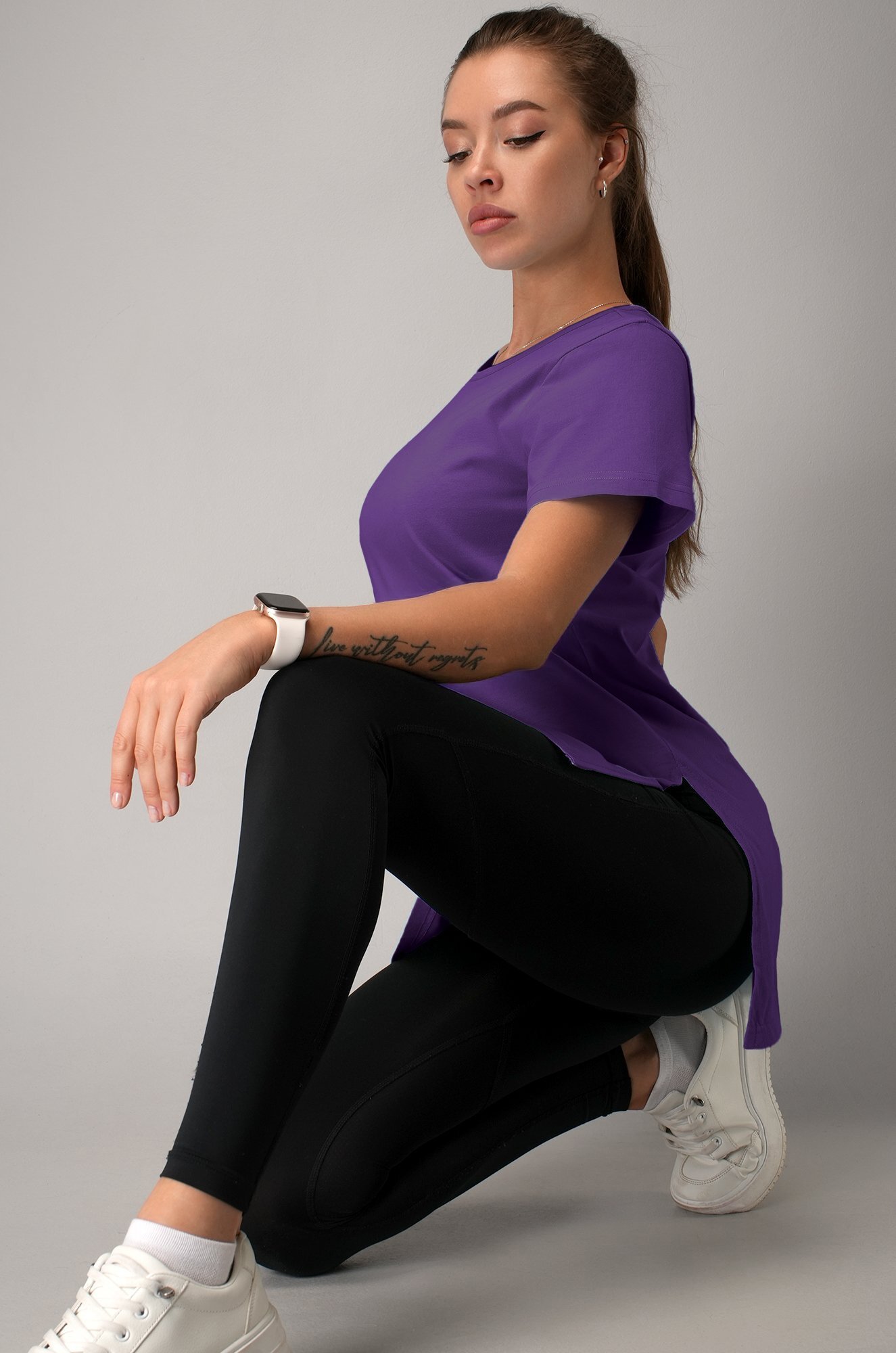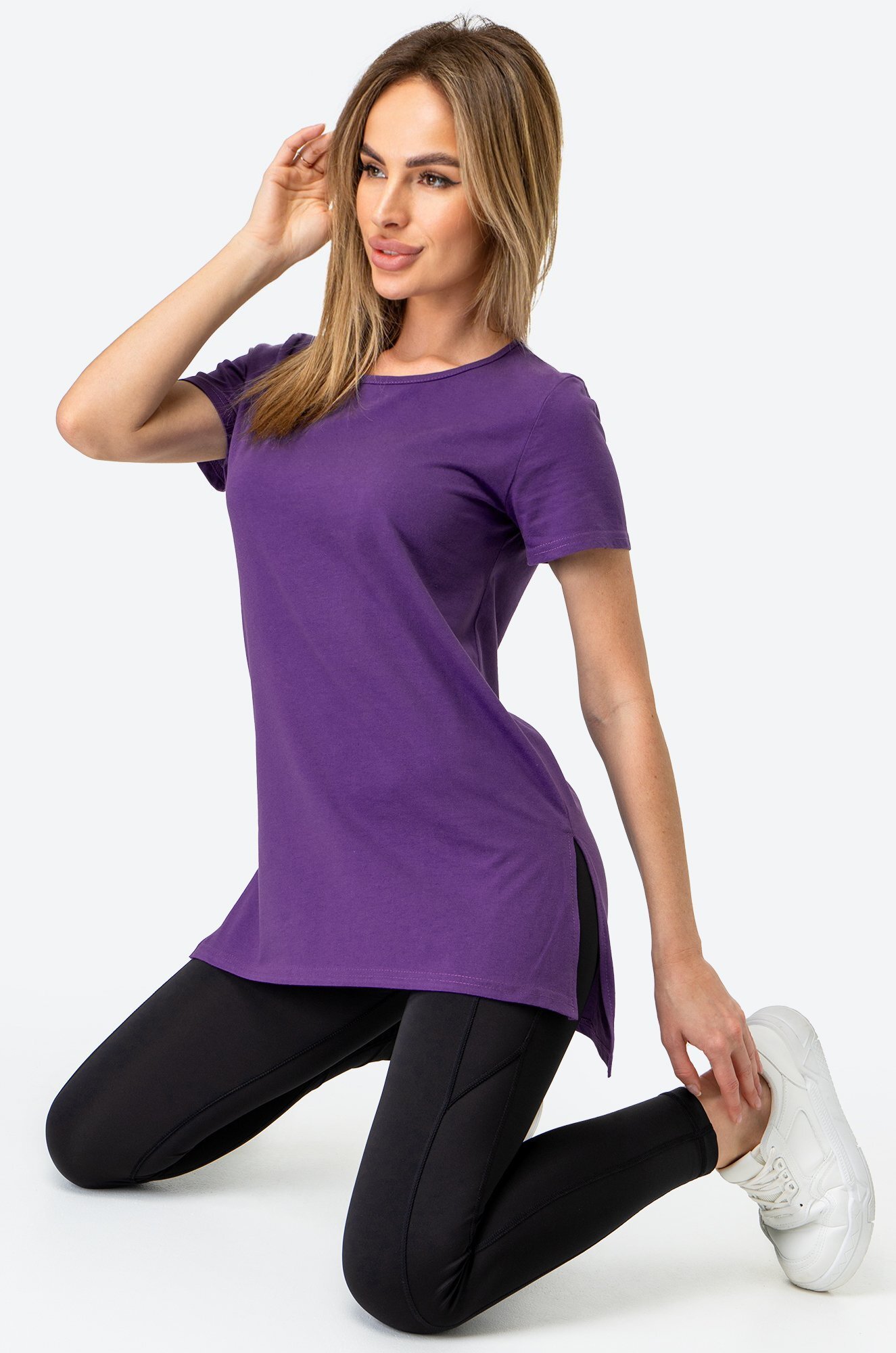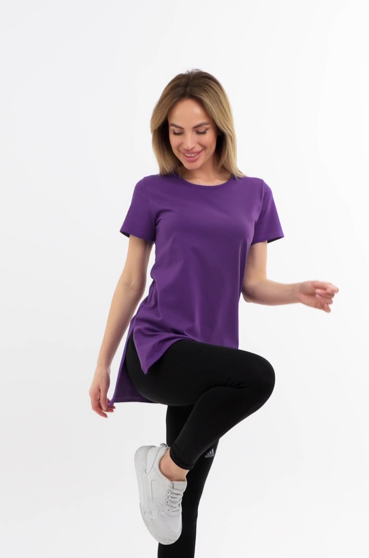 Женская футболка фиолетового цвета создана, чтобы дарить уют каждый день. Длинная и слегка приталенная модель подчеркивает фигуру и дарит комфортную посадку. Хлопковая туника станет любимицей как для дома, так и для прогулок.