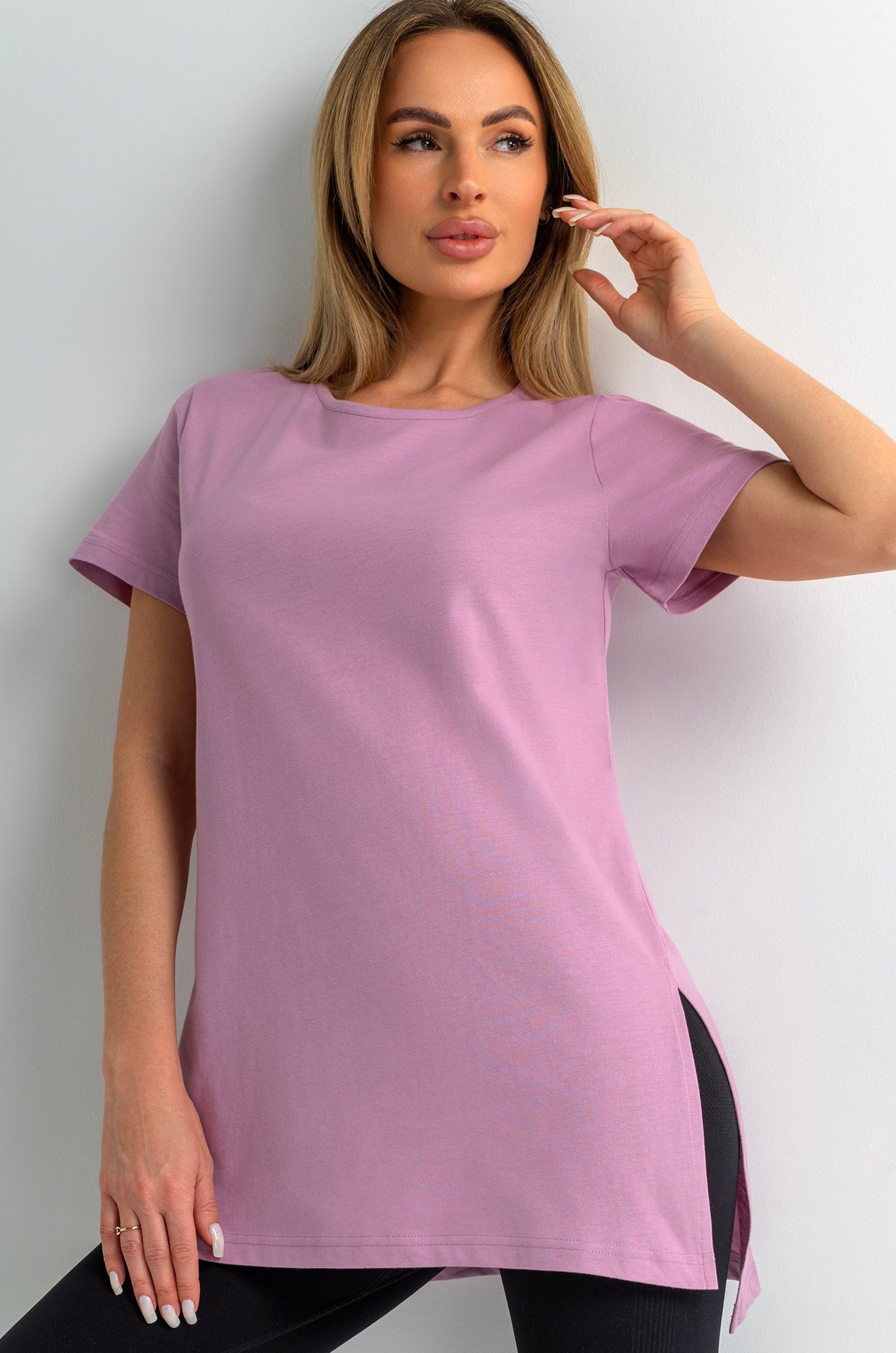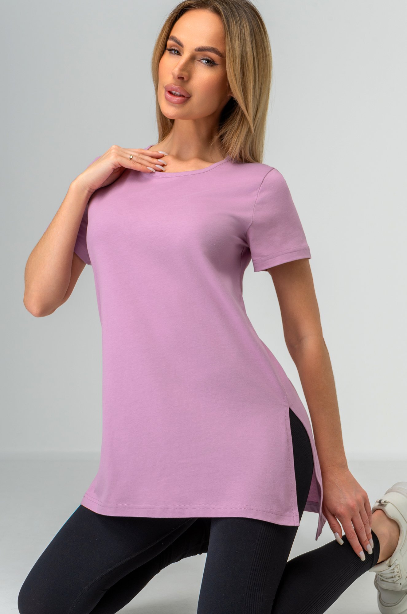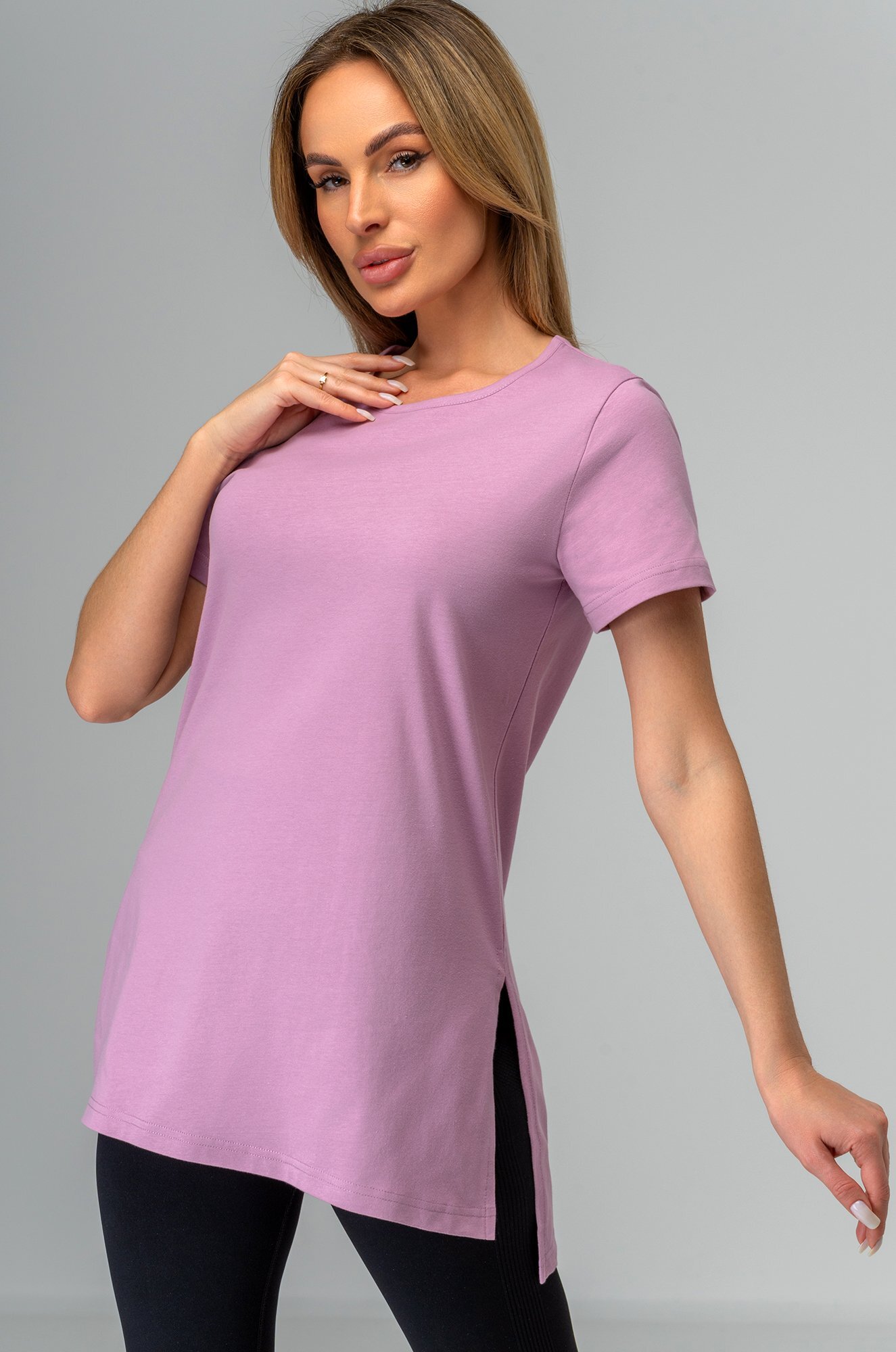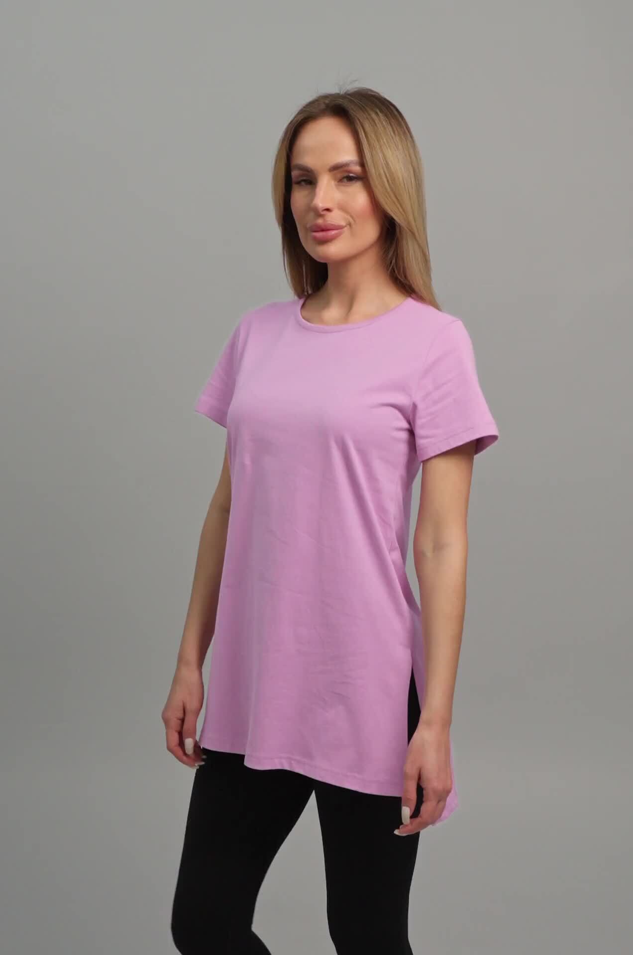Женская футболка лавандового цвета создана, чтобы дарить уют каждый день. Длинная и слегка приталенная модель подчеркивает фигуру и дарит комфортную посадку. Хлопковая туника станет любимицей как для дома, так и для прогулок.Преимущества: