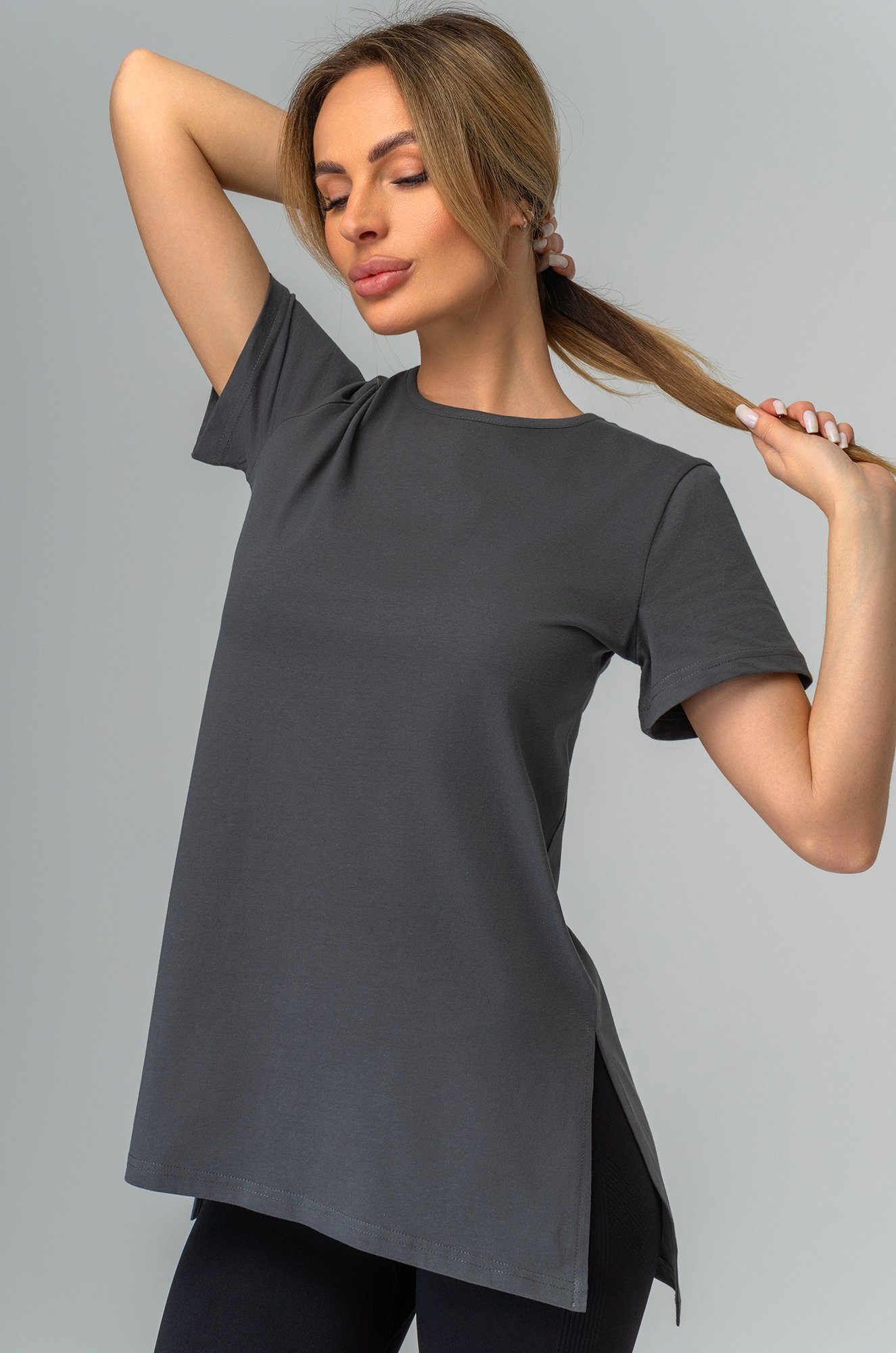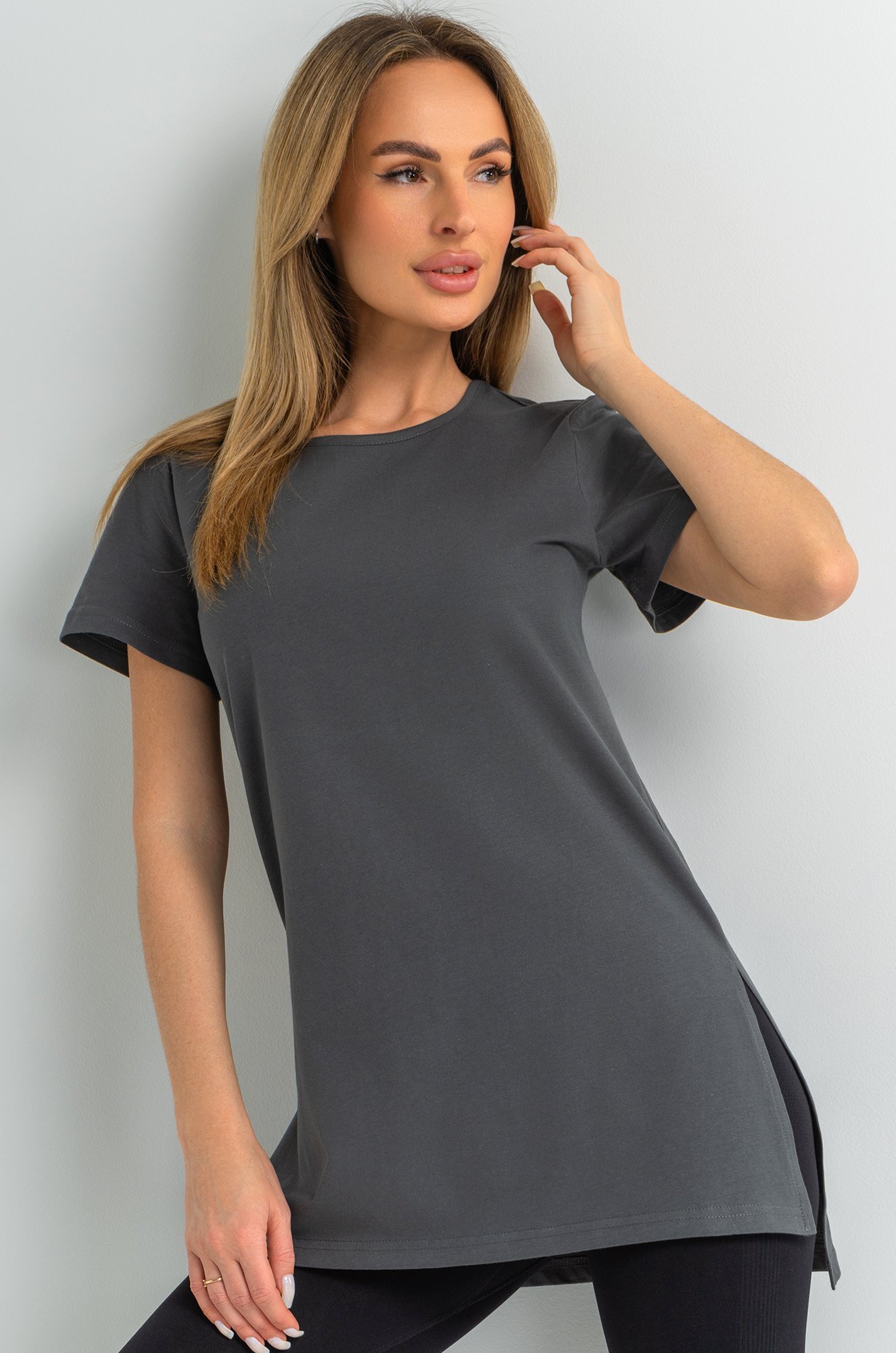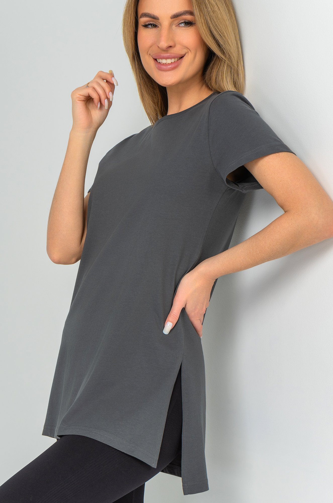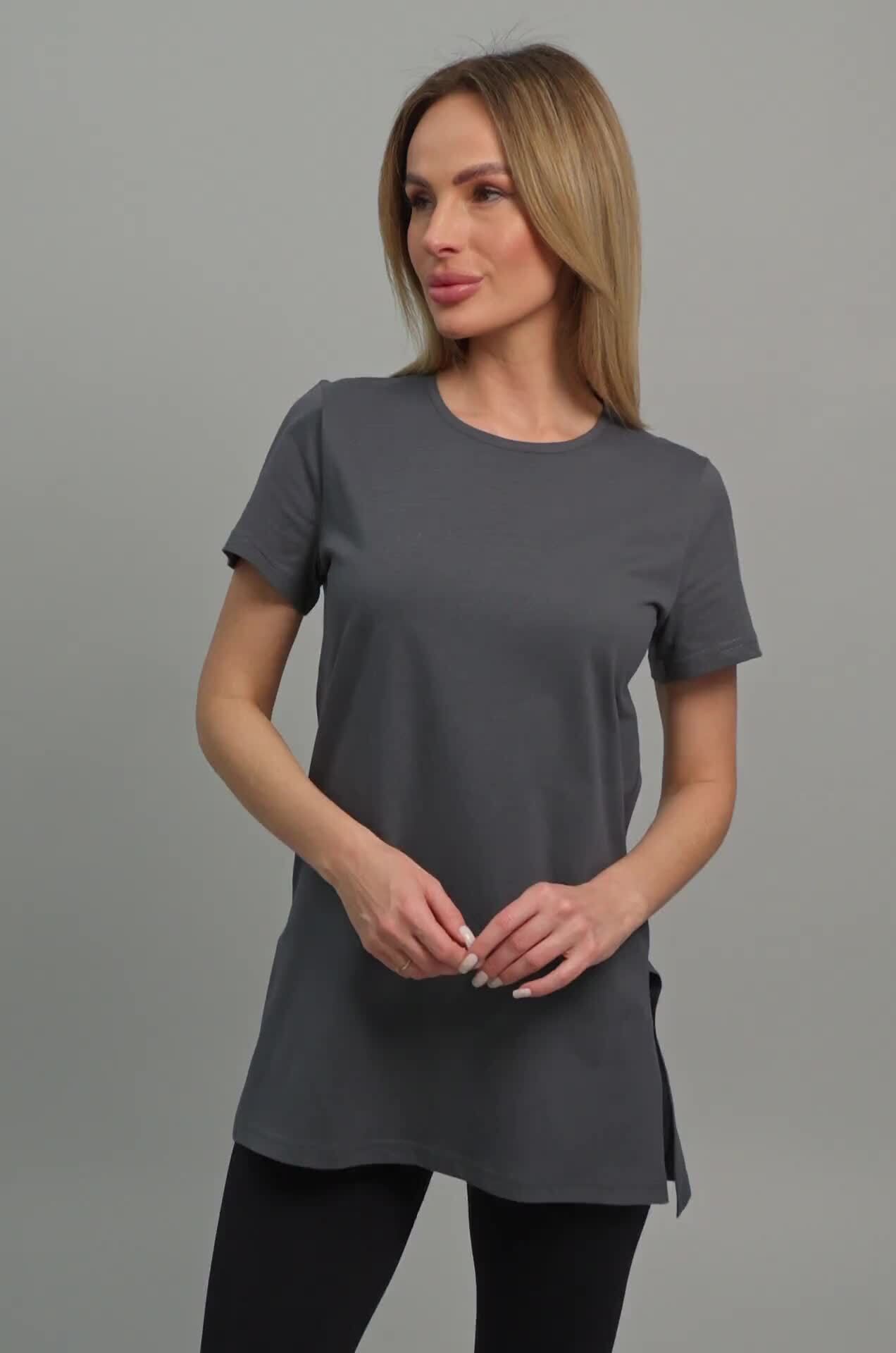 Женская футболка графитового цвета создана, чтобы дарить уют каждый день. Длинная и слегка приталенная модель подчеркивает фигуру и дарит комфортную посадку. Хлопковая туника станет любимицей как для дома, так и для прогулок.