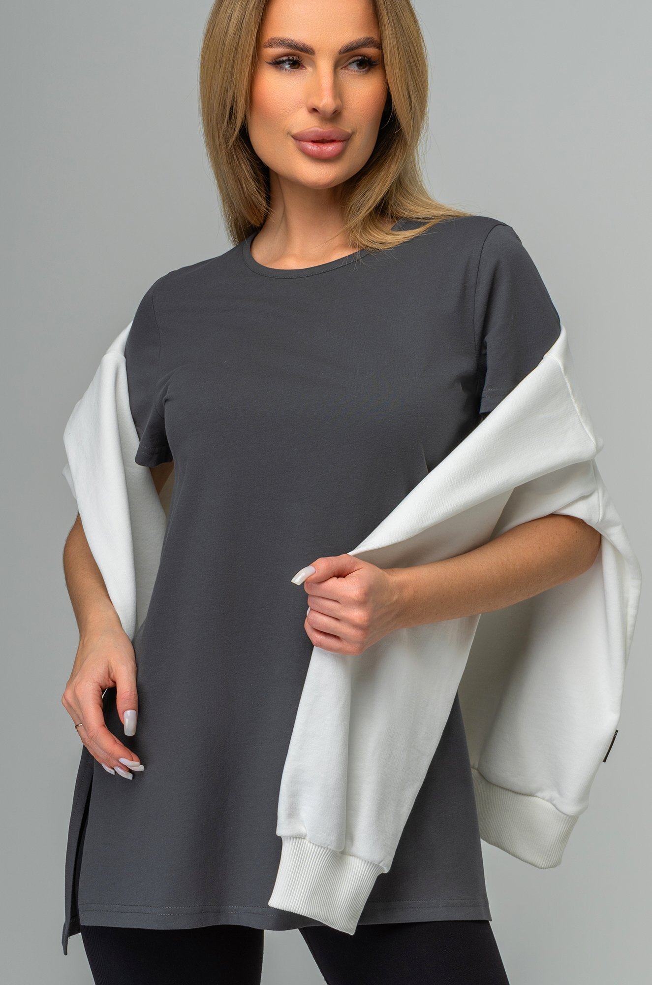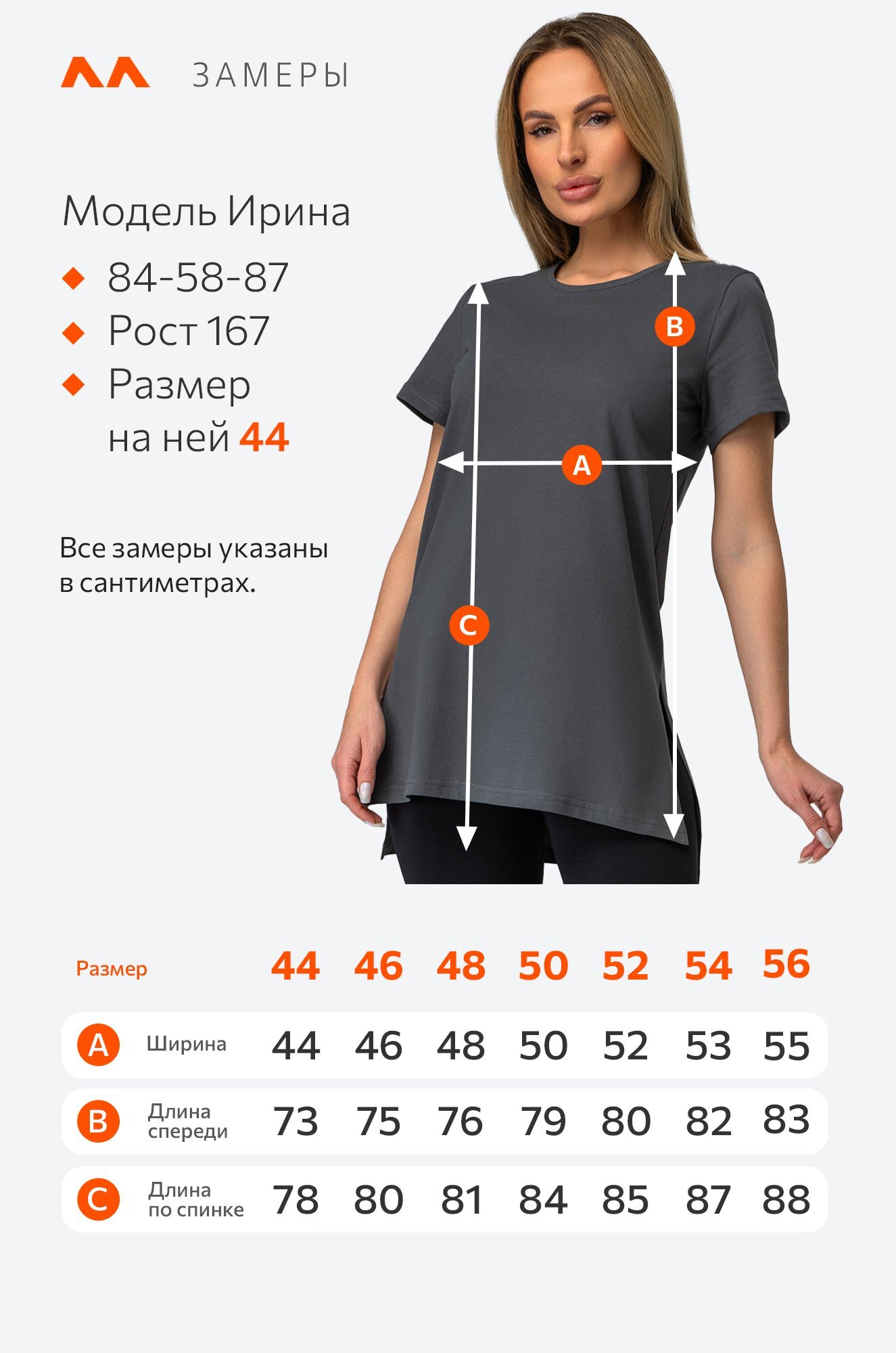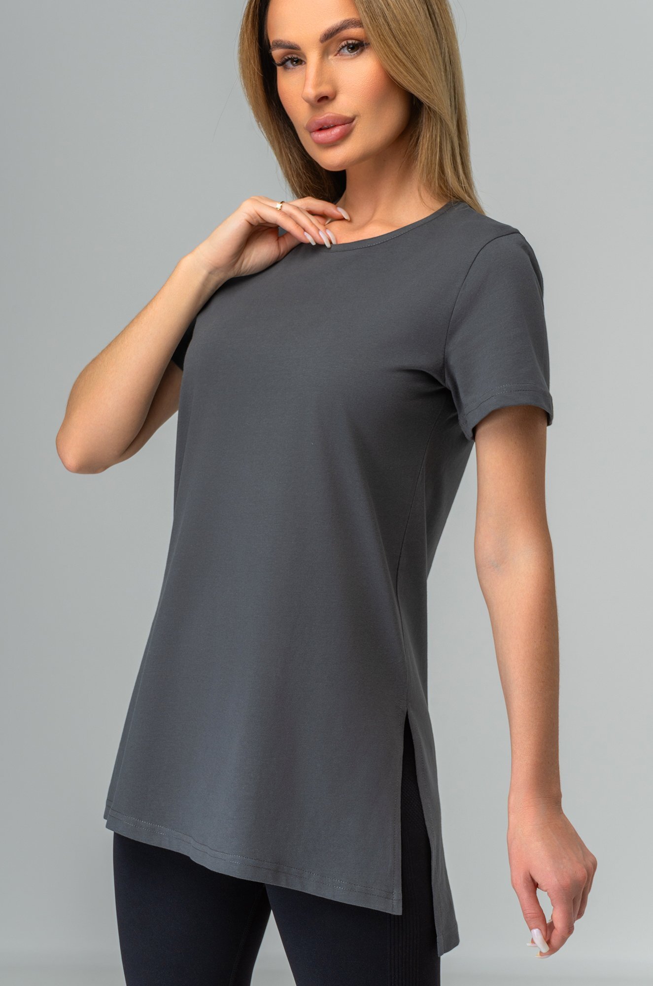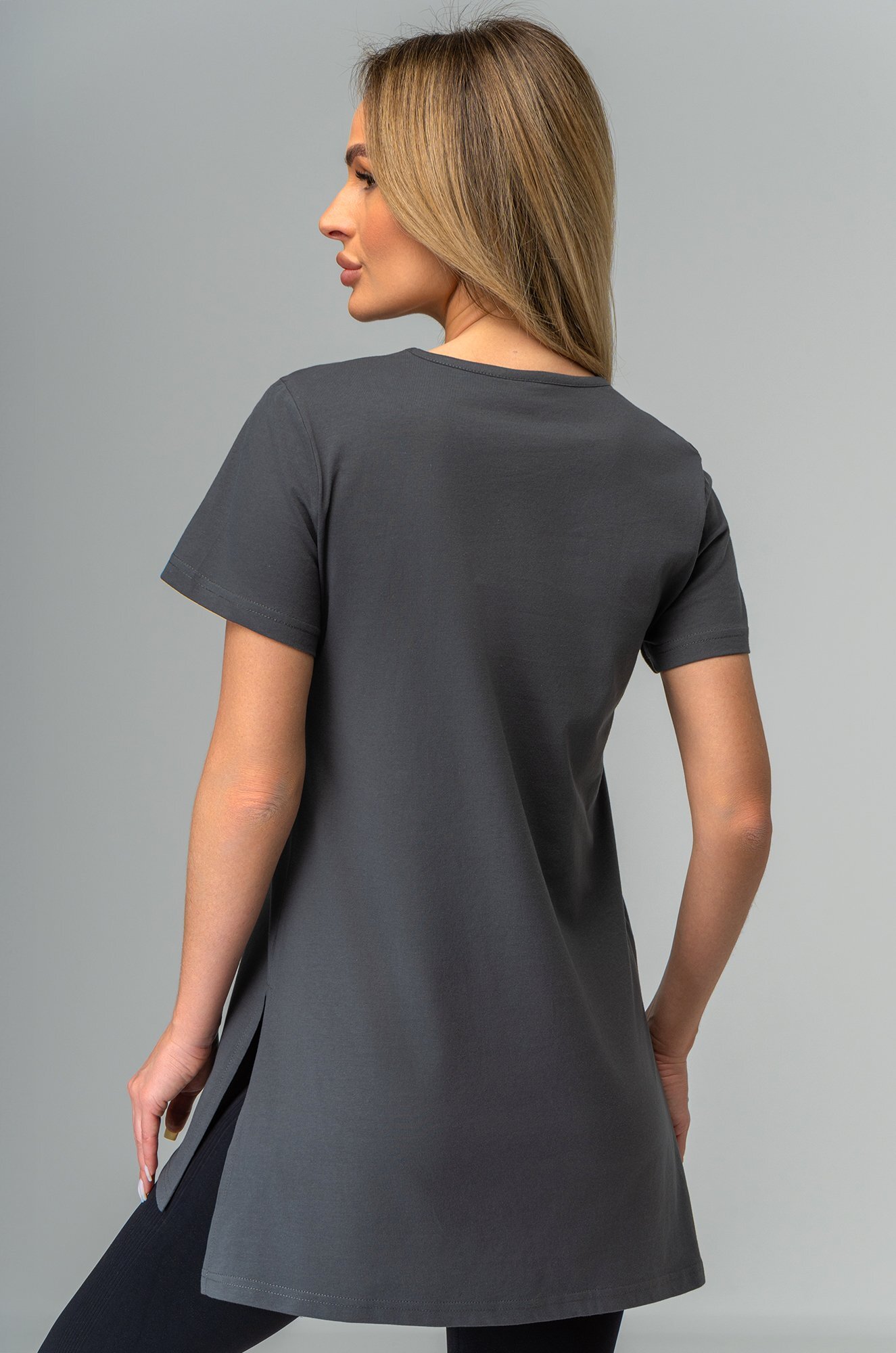Женская футболка графитового цвета создана, чтобы дарить уют каждый день. Длинная и слегка приталенная модель подчеркивает фигуру и дарит комфортную посадку. Хлопковая туника станет любимицей как для дома, так и для прогулок.
