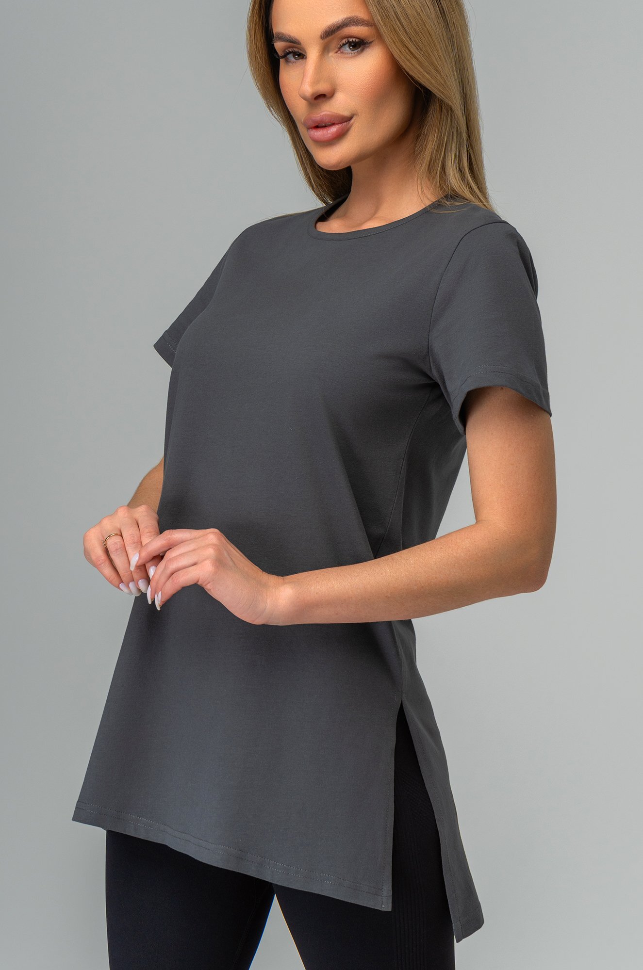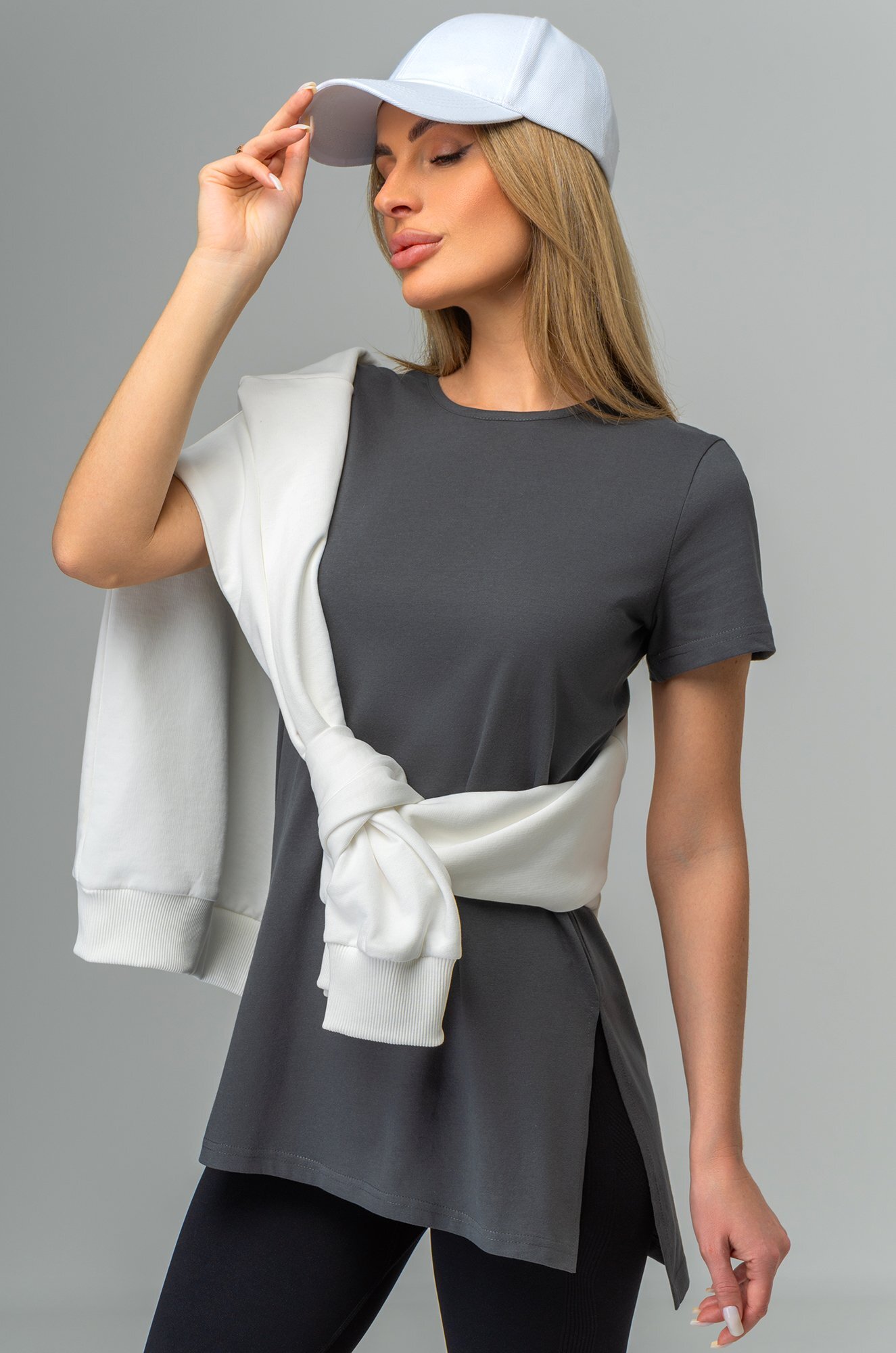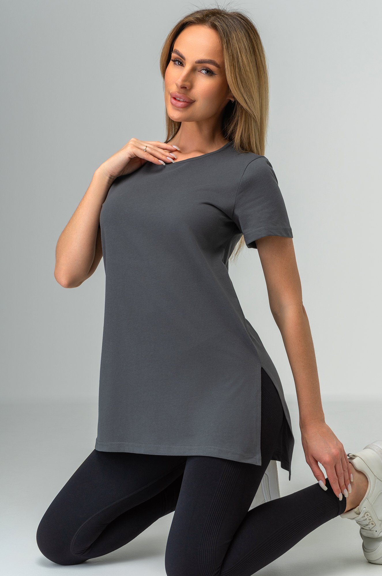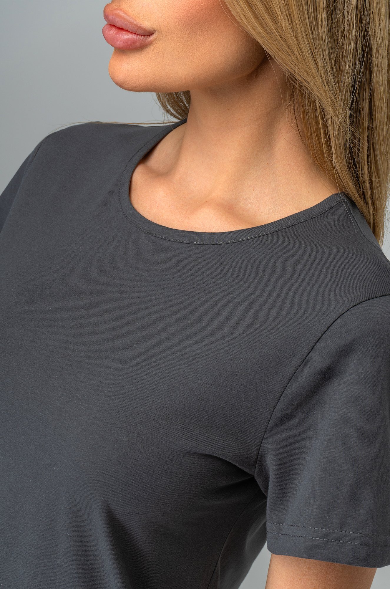 Женская футболка графитового цвета создана, чтобы дарить уют каждый день. Длинная и слегка приталенная модель подчеркивает фигуру и дарит комфортную посадку. Хлопковая туника станет любимицей как для дома, так и для прогулок.