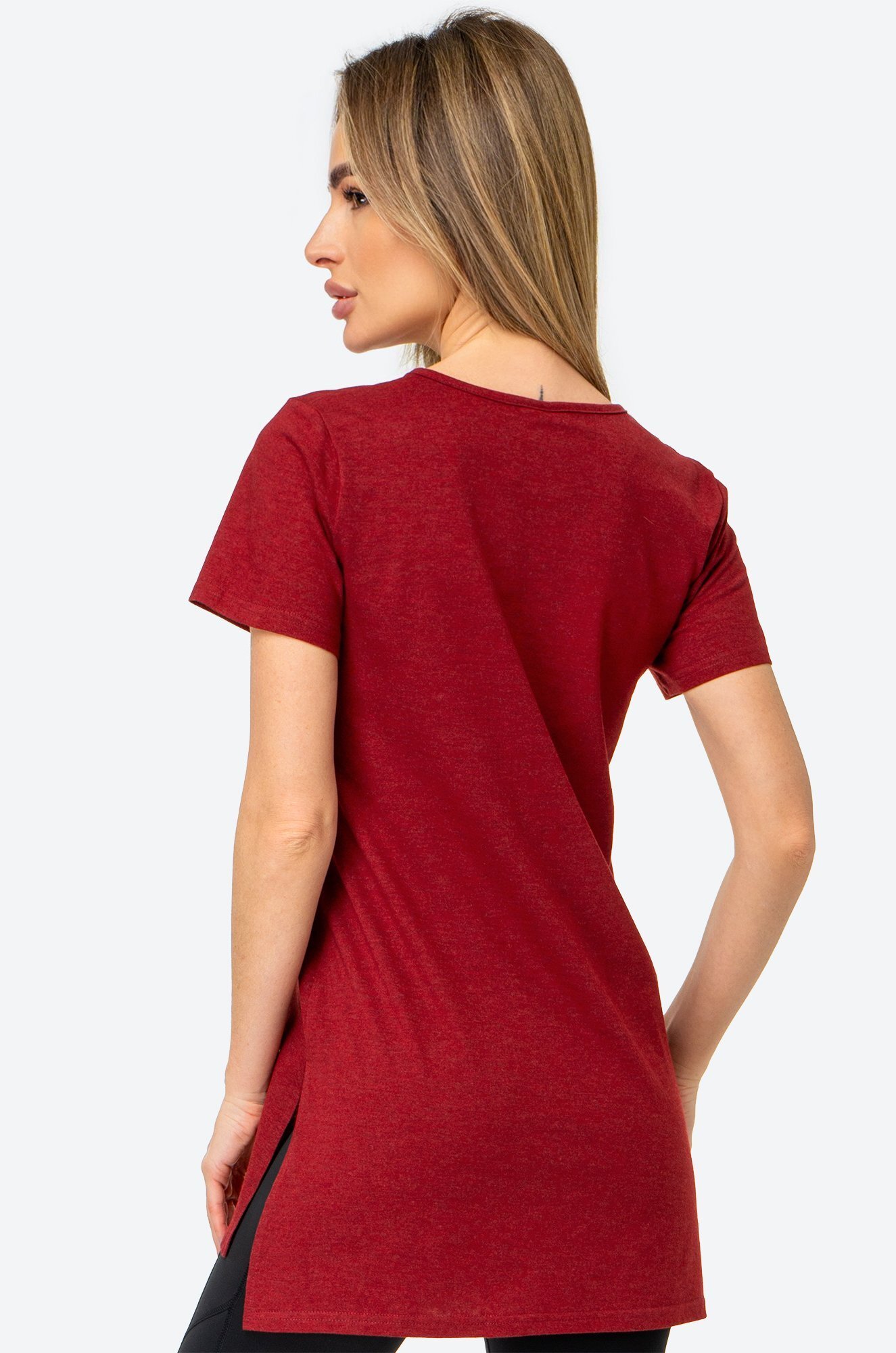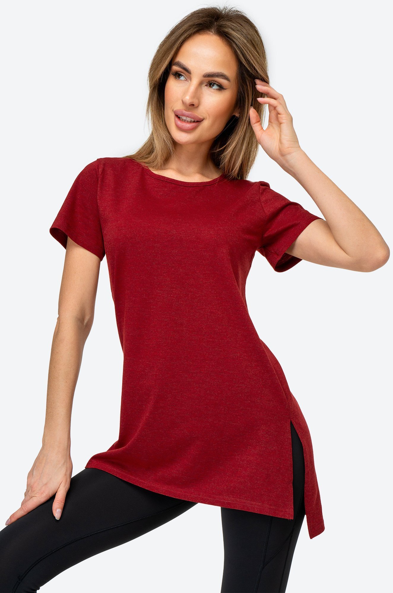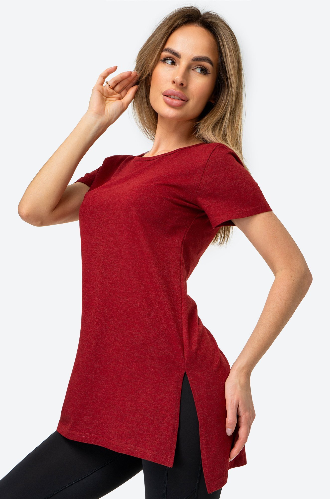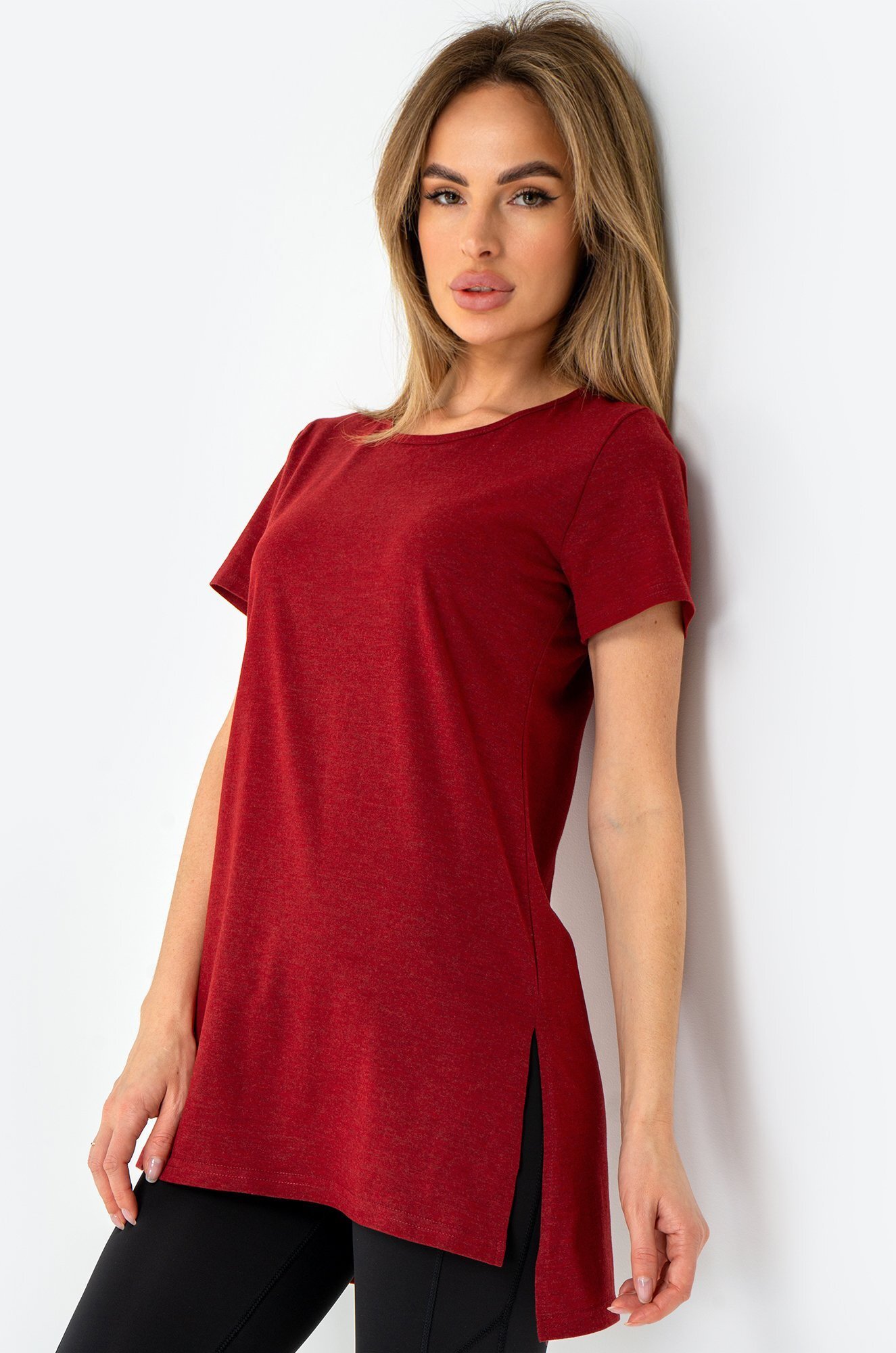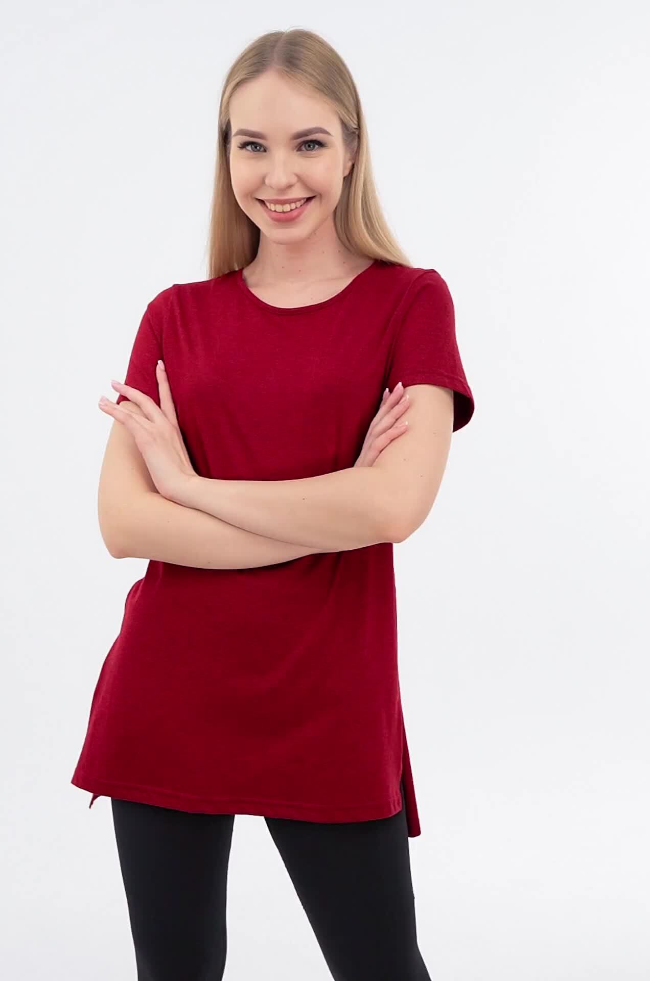 Женская футболка цвета бордо создана, чтобы дарить уют каждый день. Длинная и слегка приталенная модель подчеркивает фигуру и дарит комфортную посадку. Хлопковая туника станет любимицей как для дома, так и для прогулок.