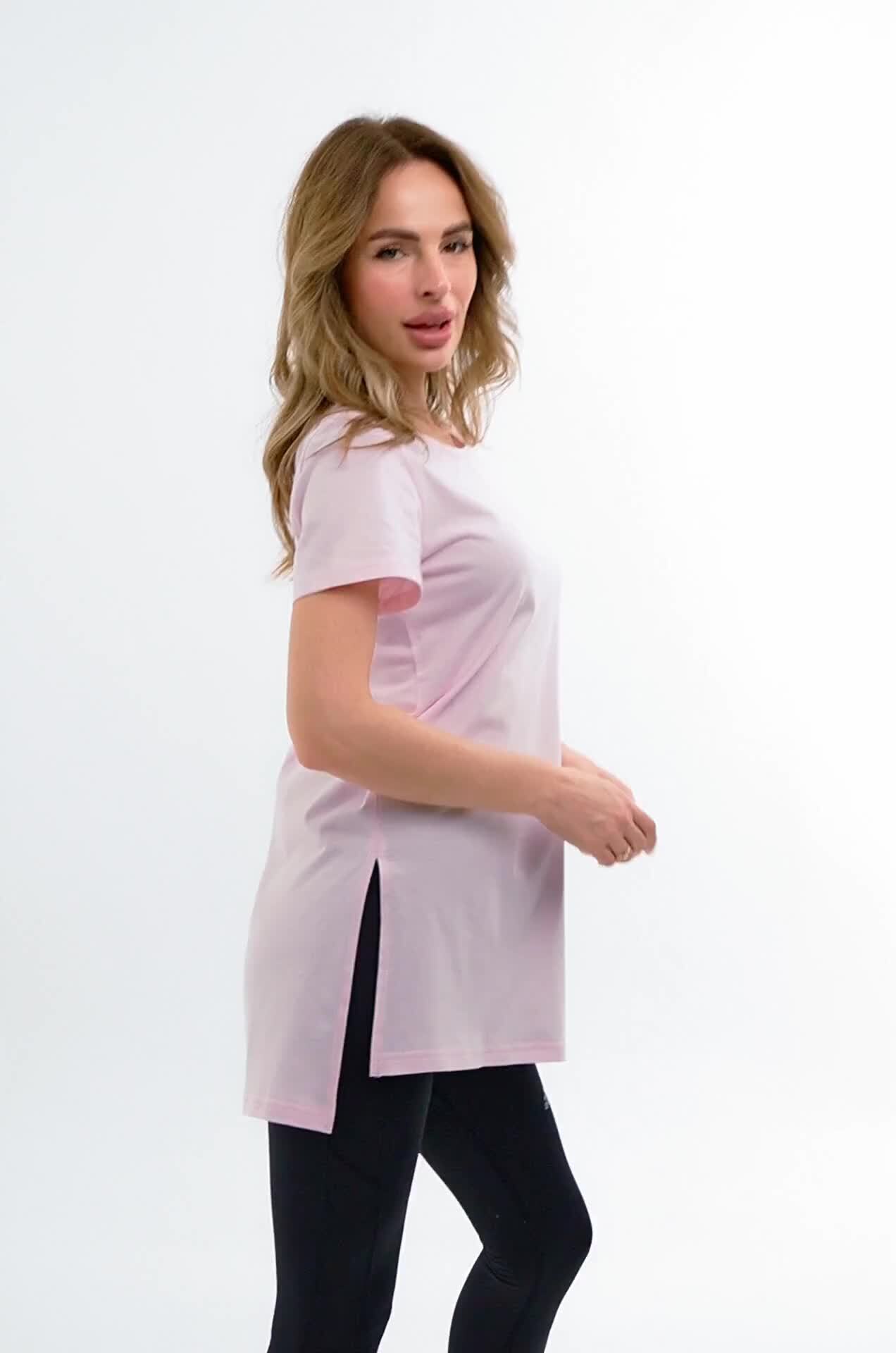 Женская футболка розового цвета создана, чтобы дарить уют каждый день. Длинная и слегка приталенная модель подчеркивает фигуру и дарит комфортную посадку. Хлопковая туника станет любимицей как для дома, так и для прогулок.