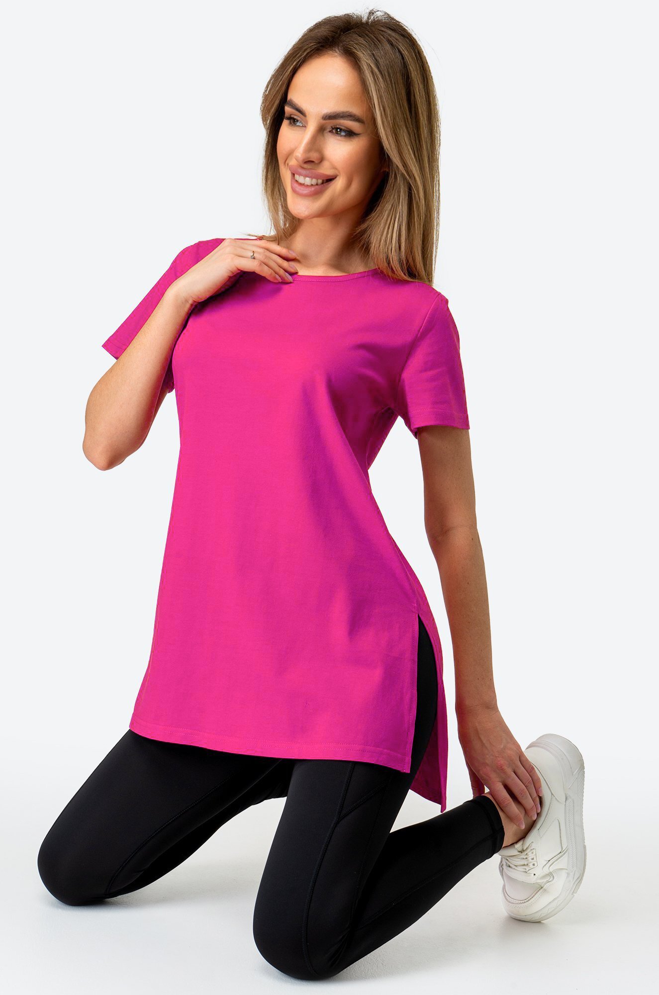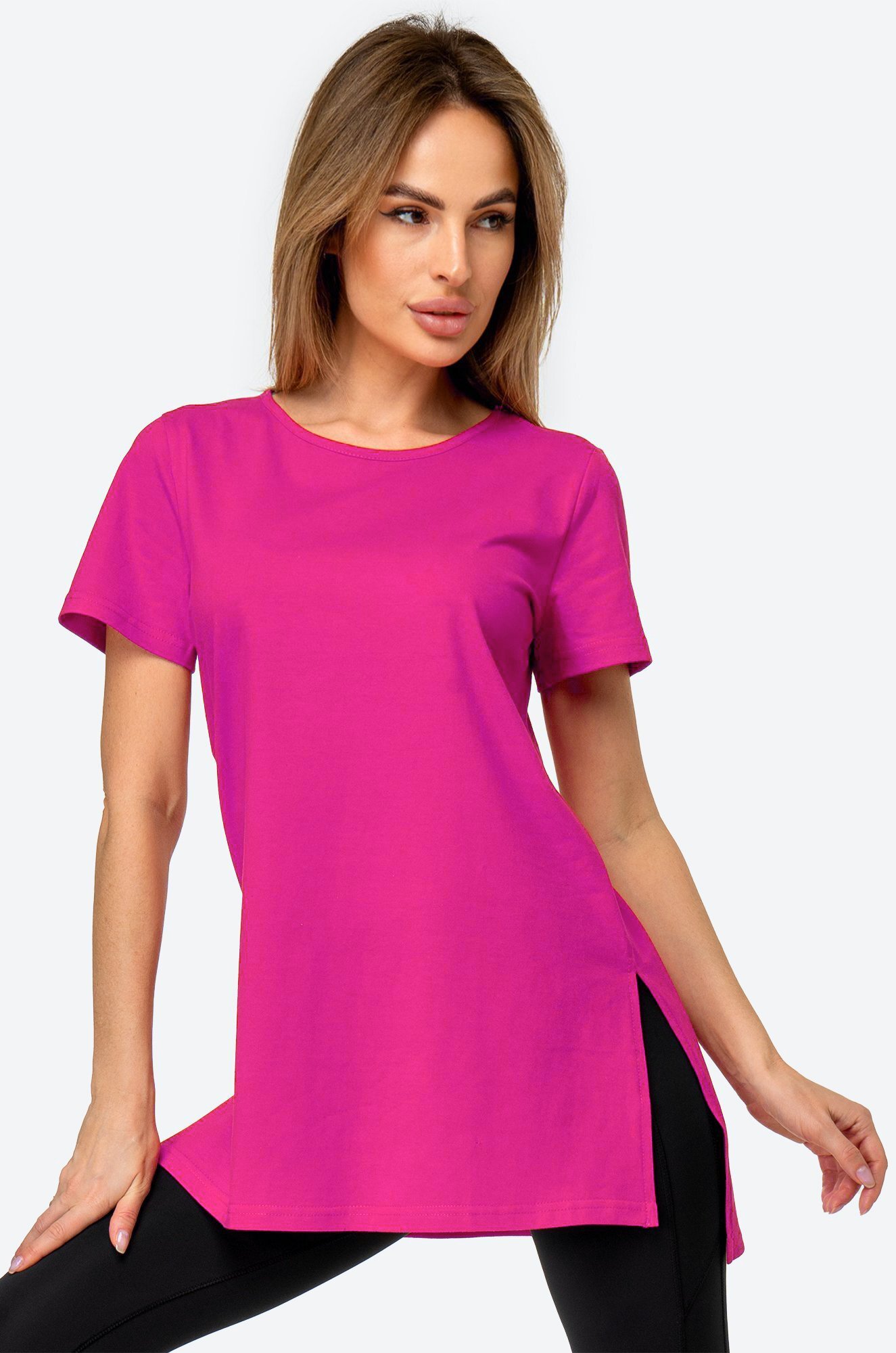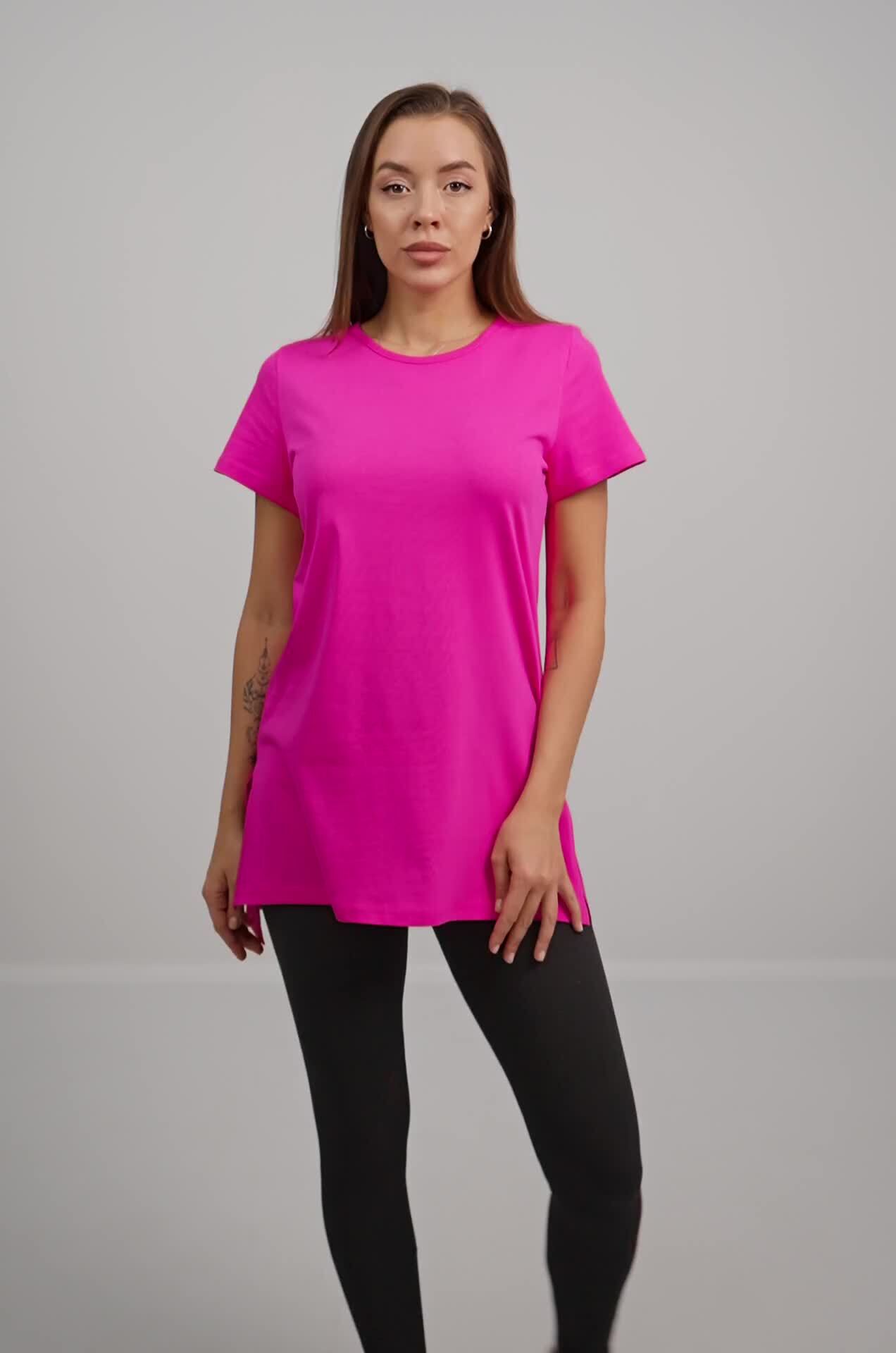 Женская футболка малинового цвета создана, чтобы дарить уют каждый день. Длинная и слегка приталенная модель подчеркивает фигуру и дарит комфортную посадку. Хлопковая туника станет любимицей как для дома, так и для прогулок.
