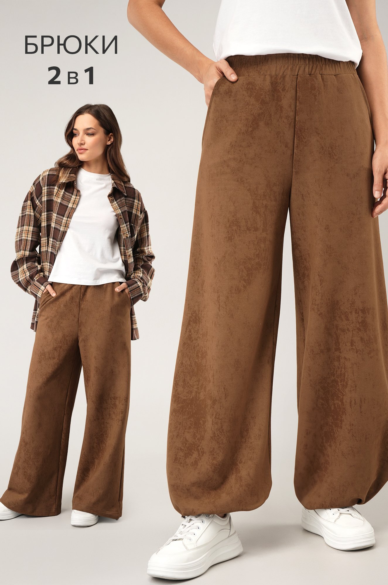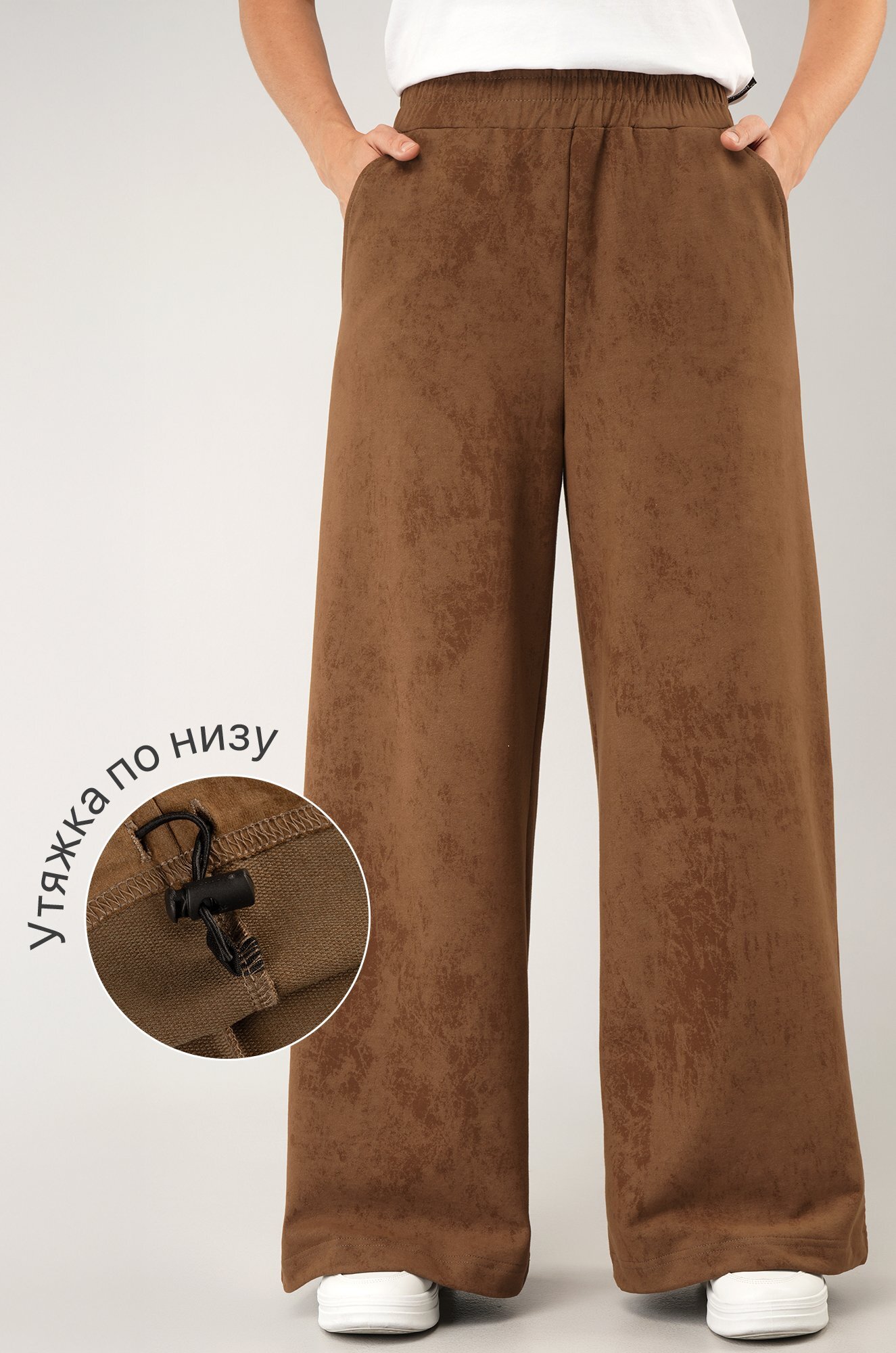 – утяжка со стопперами по низу позволяет легко превратить брюки палаццо в джоггеры;