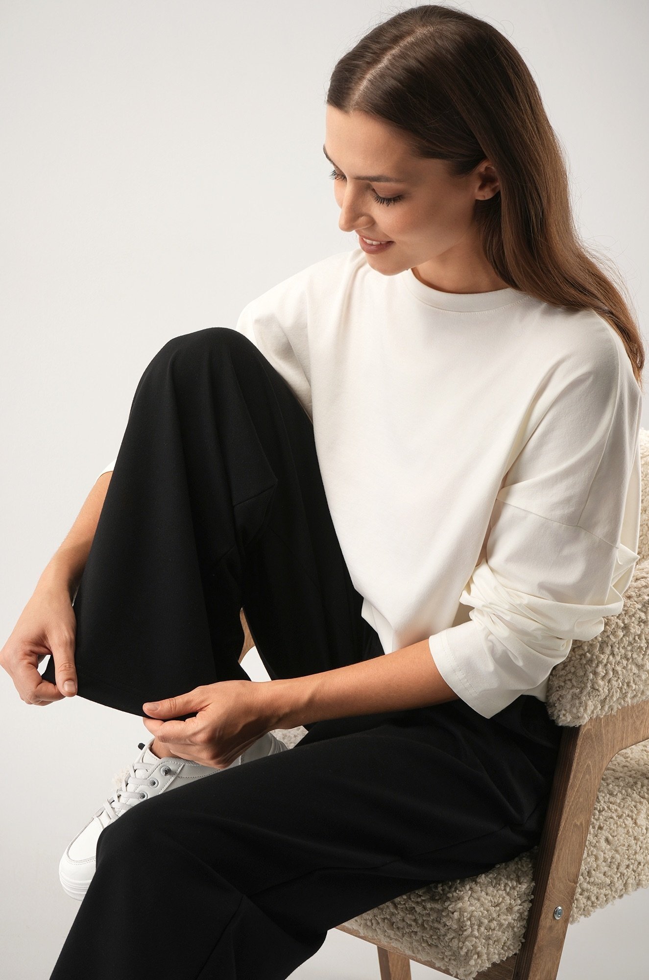 Длинные однотонные брюки свободного кроя идеально подойдут для осенних прогулок, активного весеннего отдыха или расслабленных домашних вечеров. Базовые трикотажные штаны для женщин станут универсальным выбором на каждый день, когда хочется комфорта и легкости в движении.