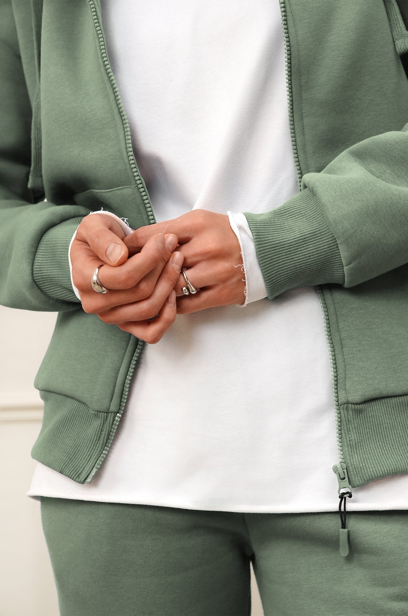— благодаря добавлению полиэстера утепленный костюм двойка оттенка полынь не теряет форму и цвет после стирок;