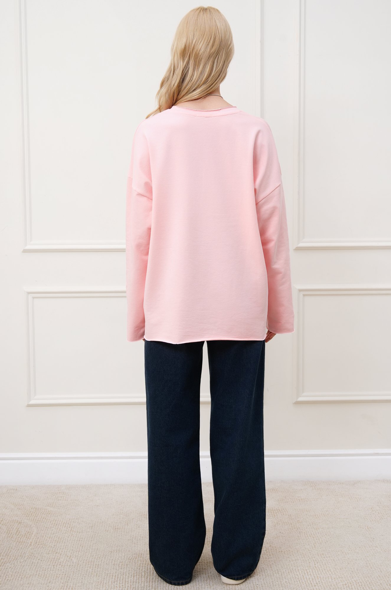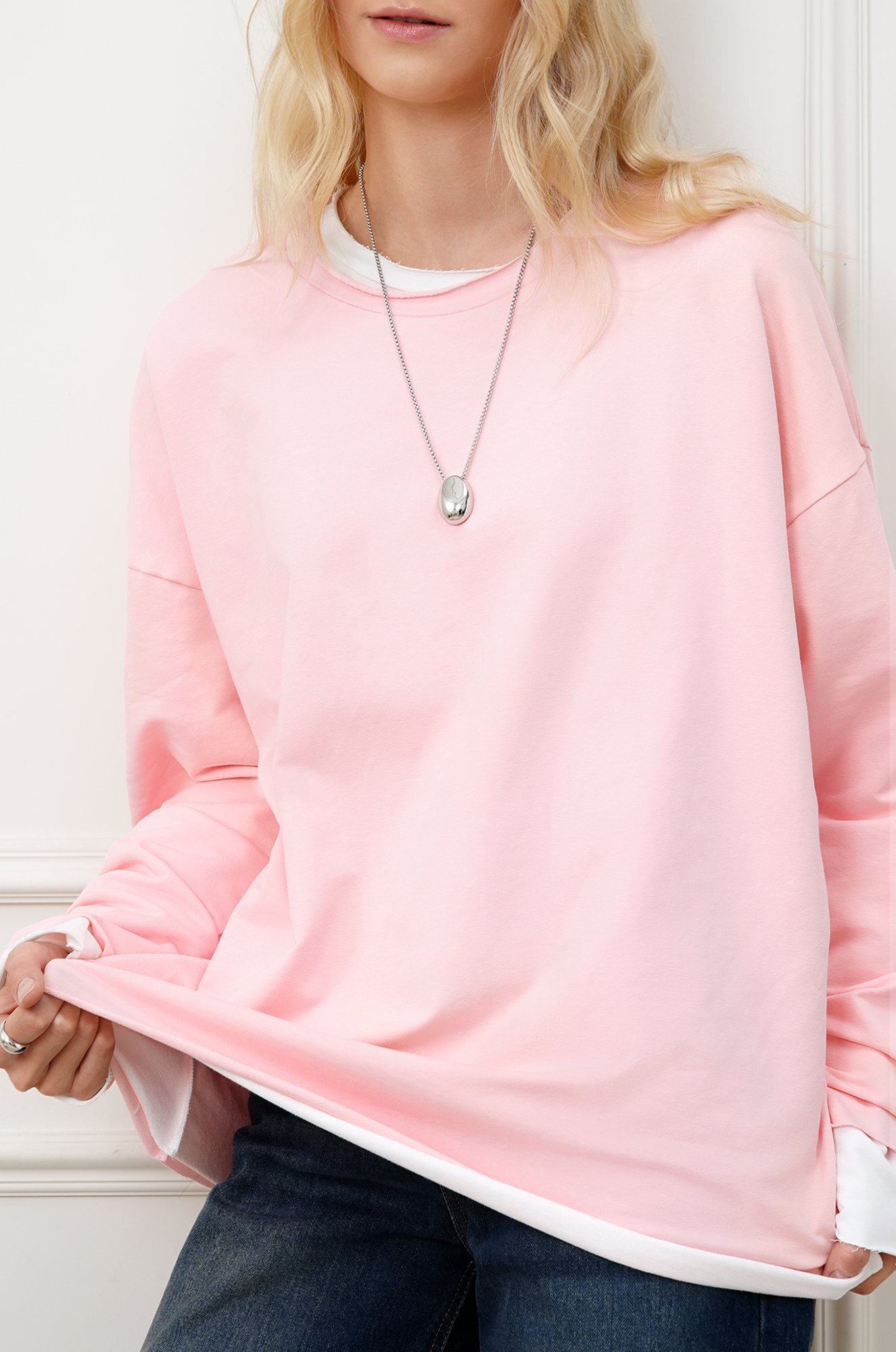 — розовый лонгслив выполнен из футера двухнитки (240 г/м²);