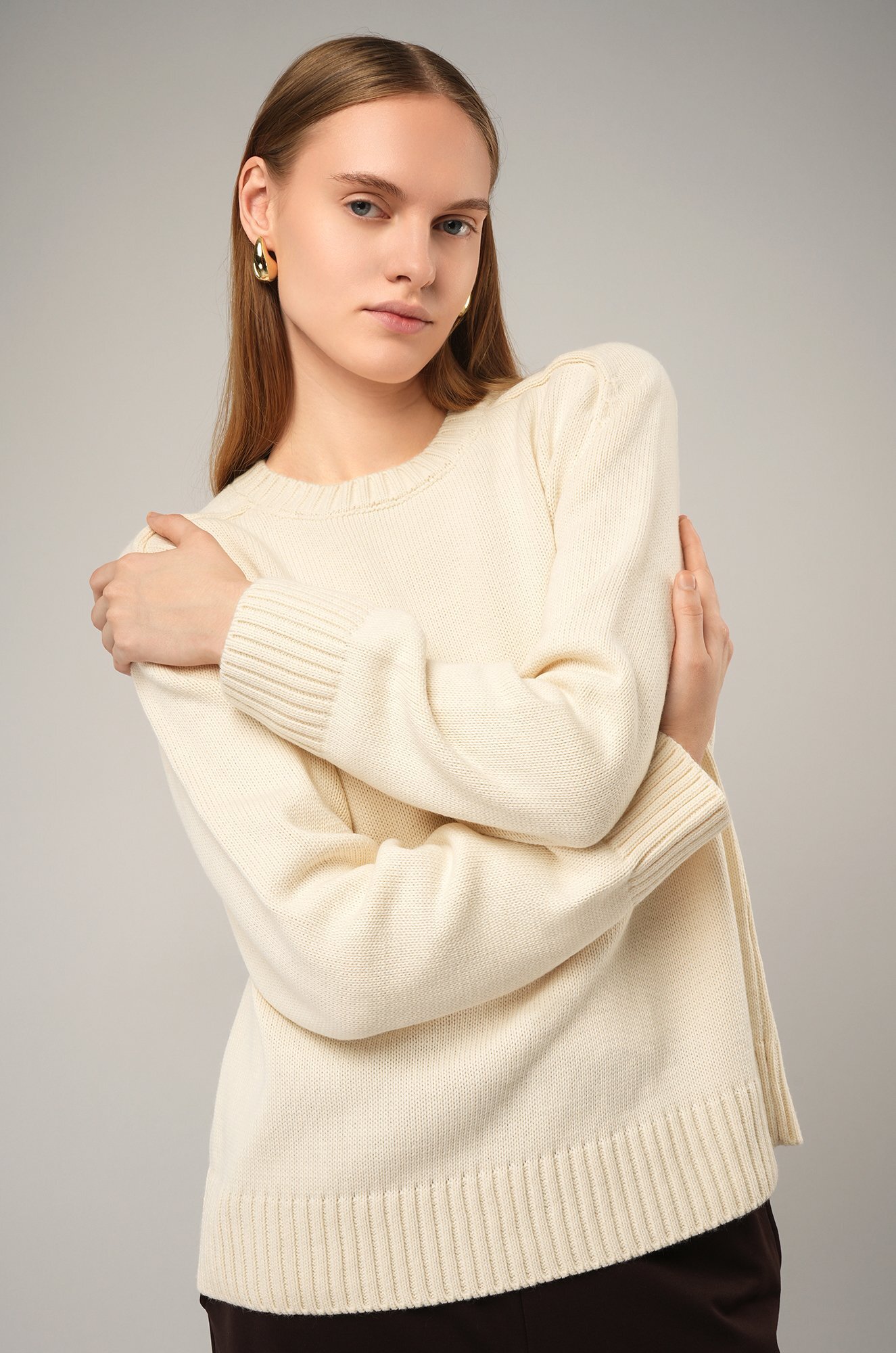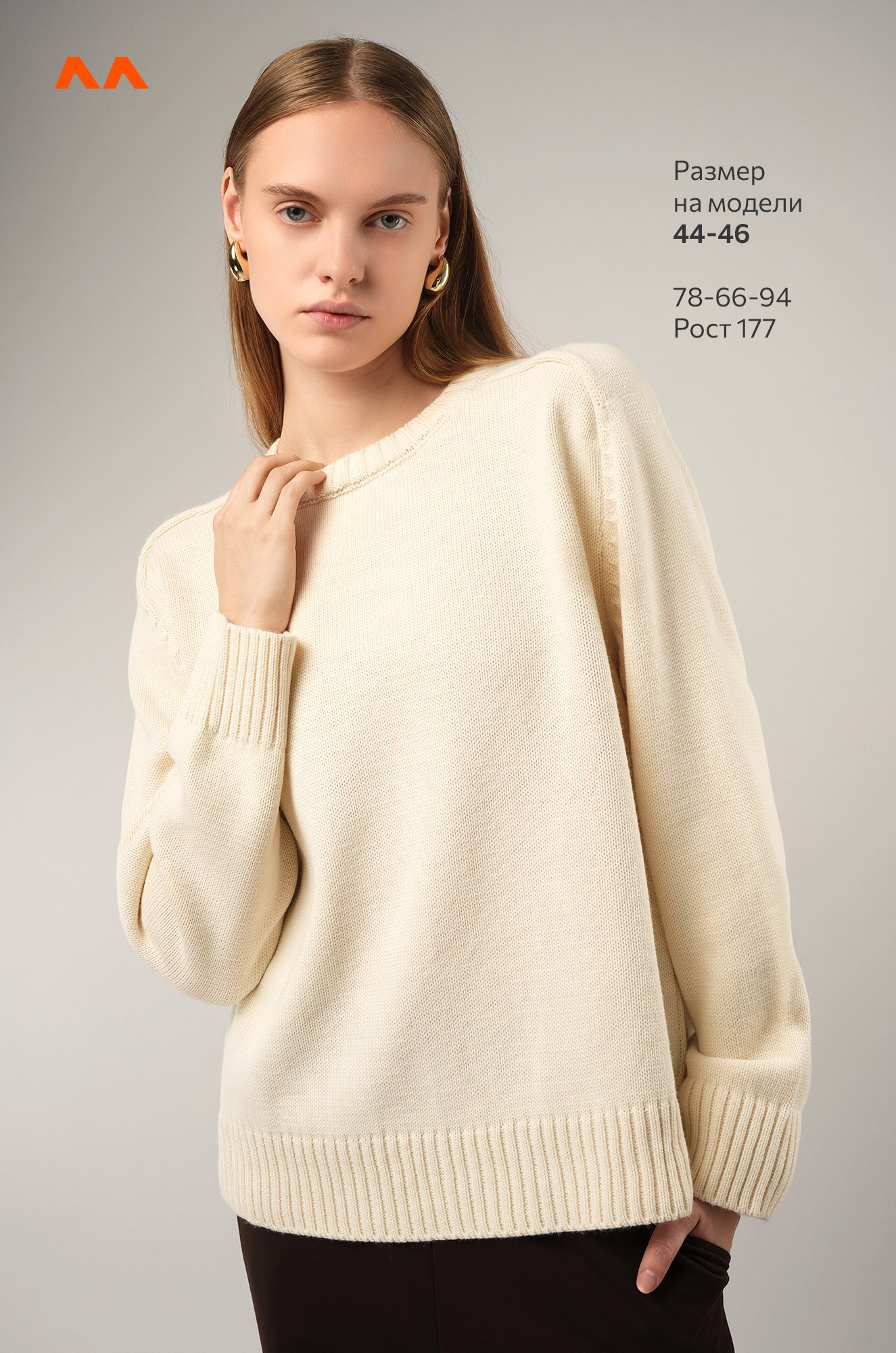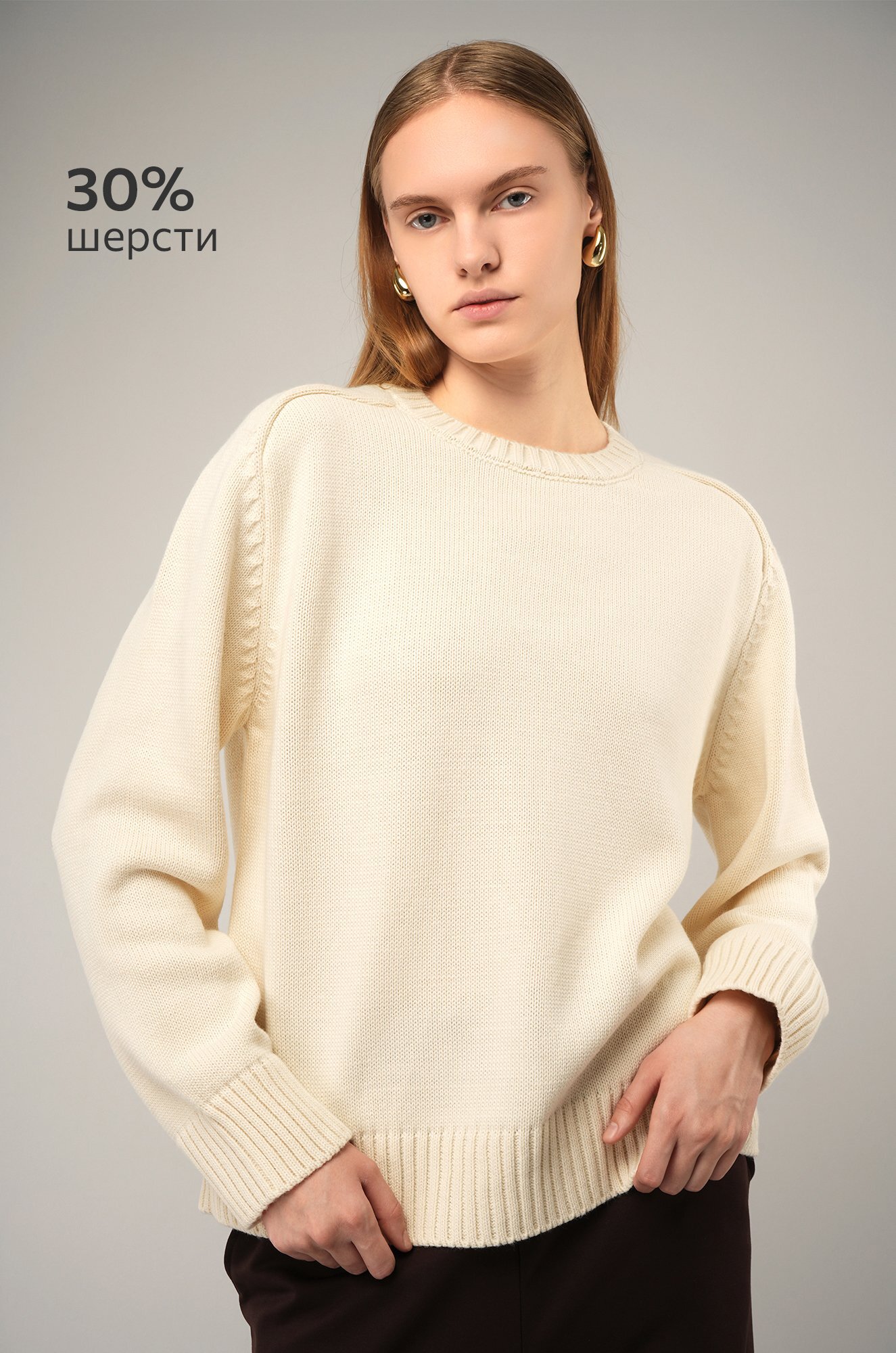 — однотонный джемпер молочного цвета отлично подходит для прогулок осенью и зимой, повседневных выходов и уютных вечеров дома.