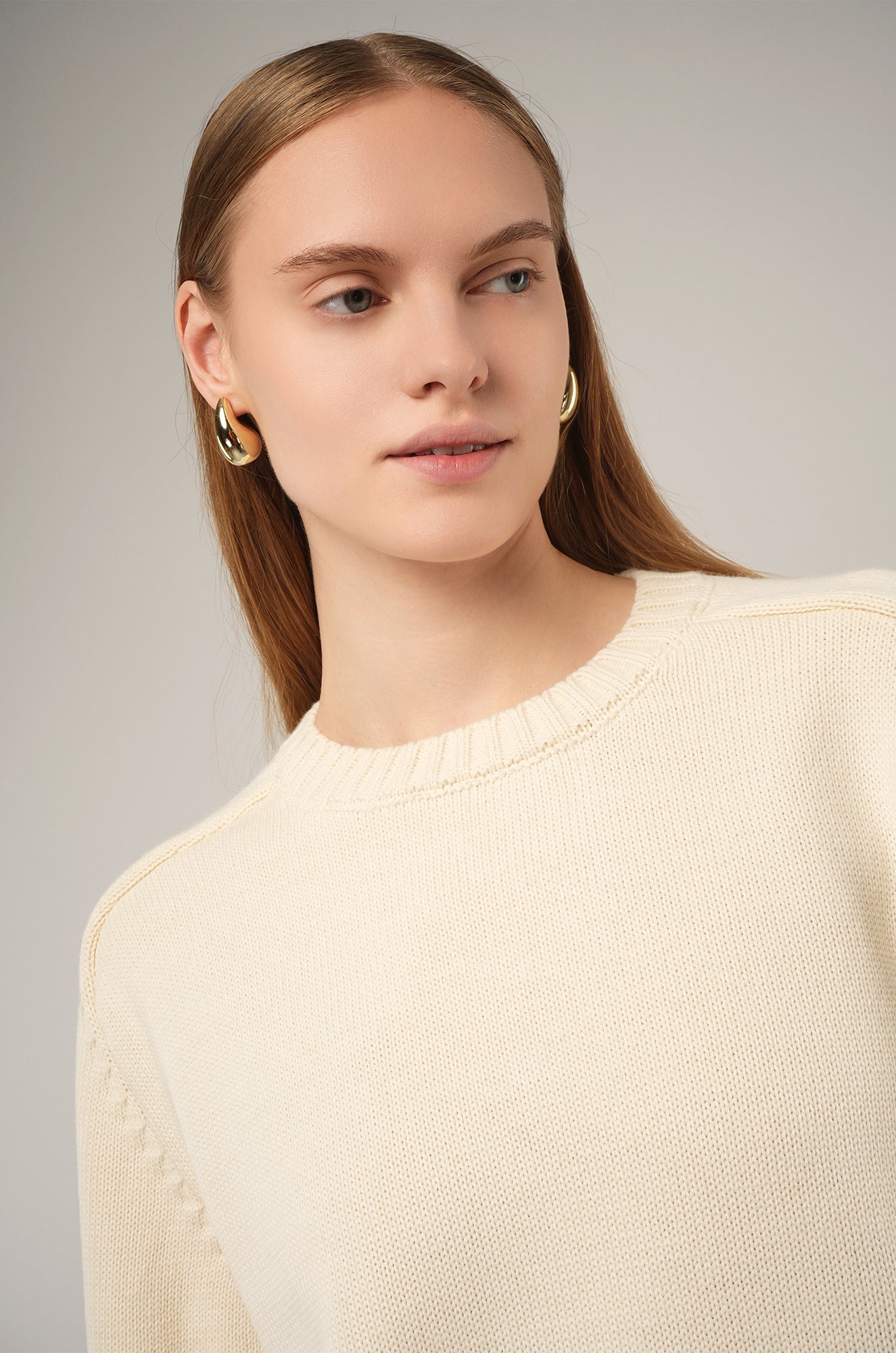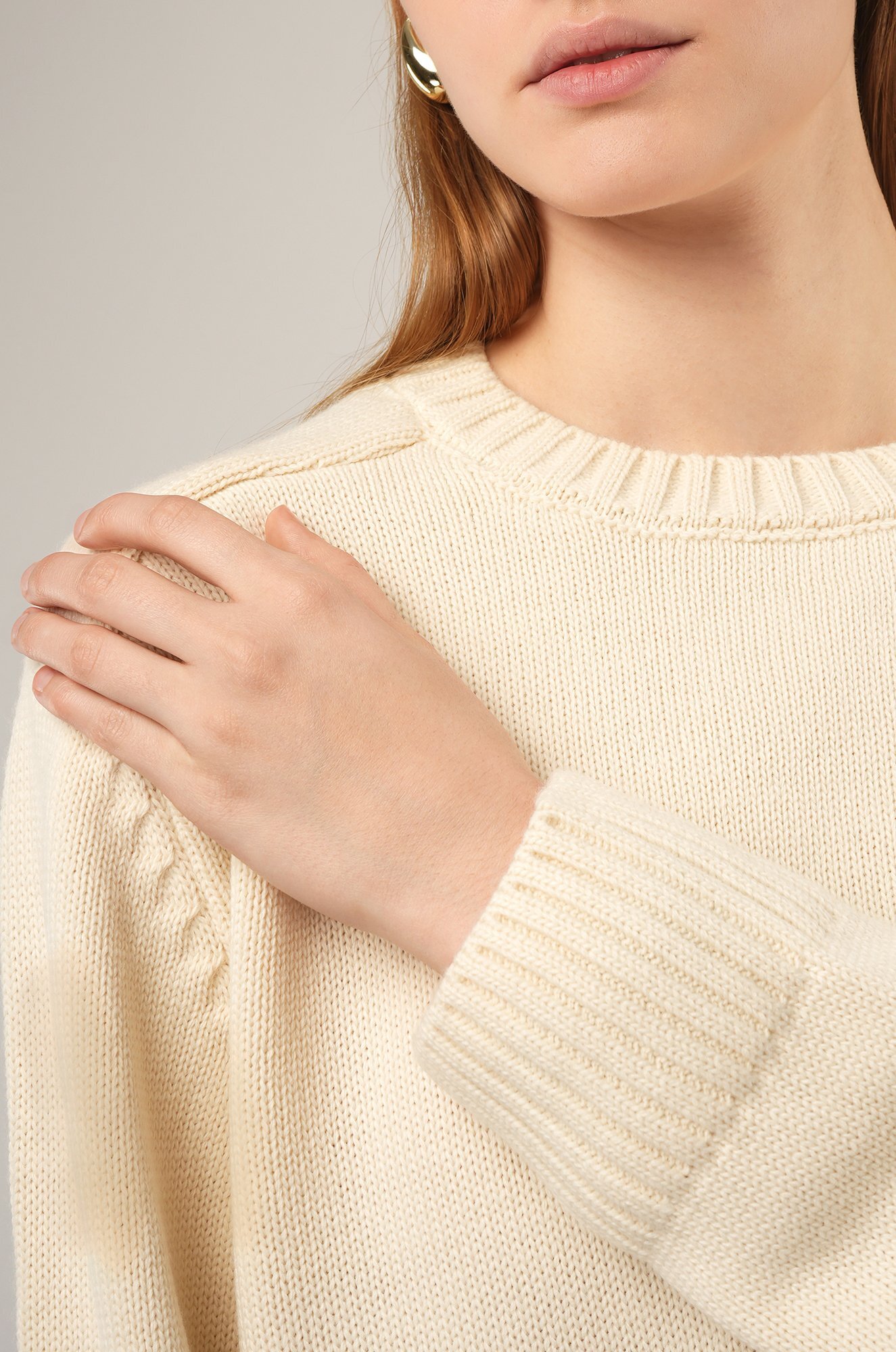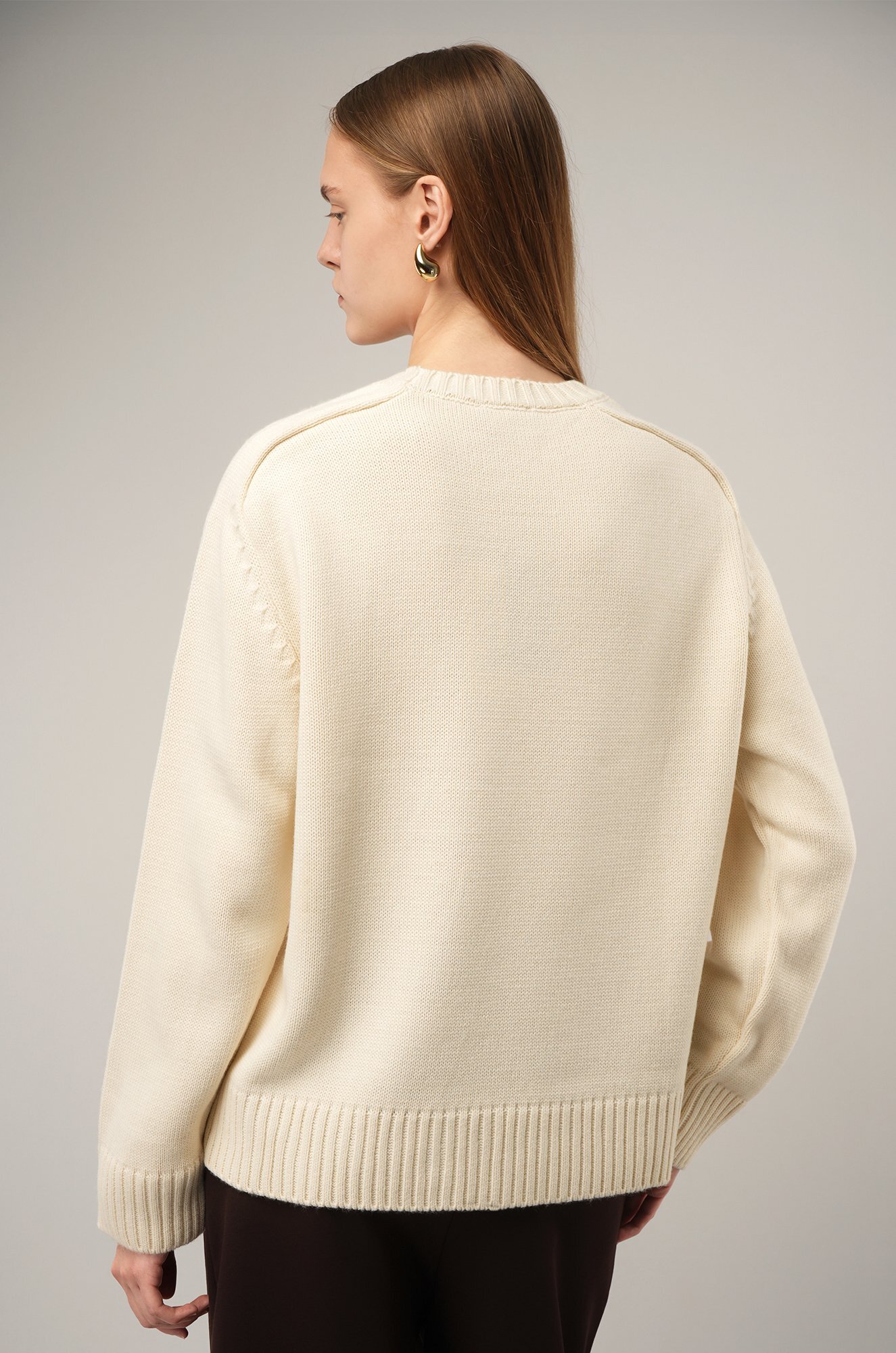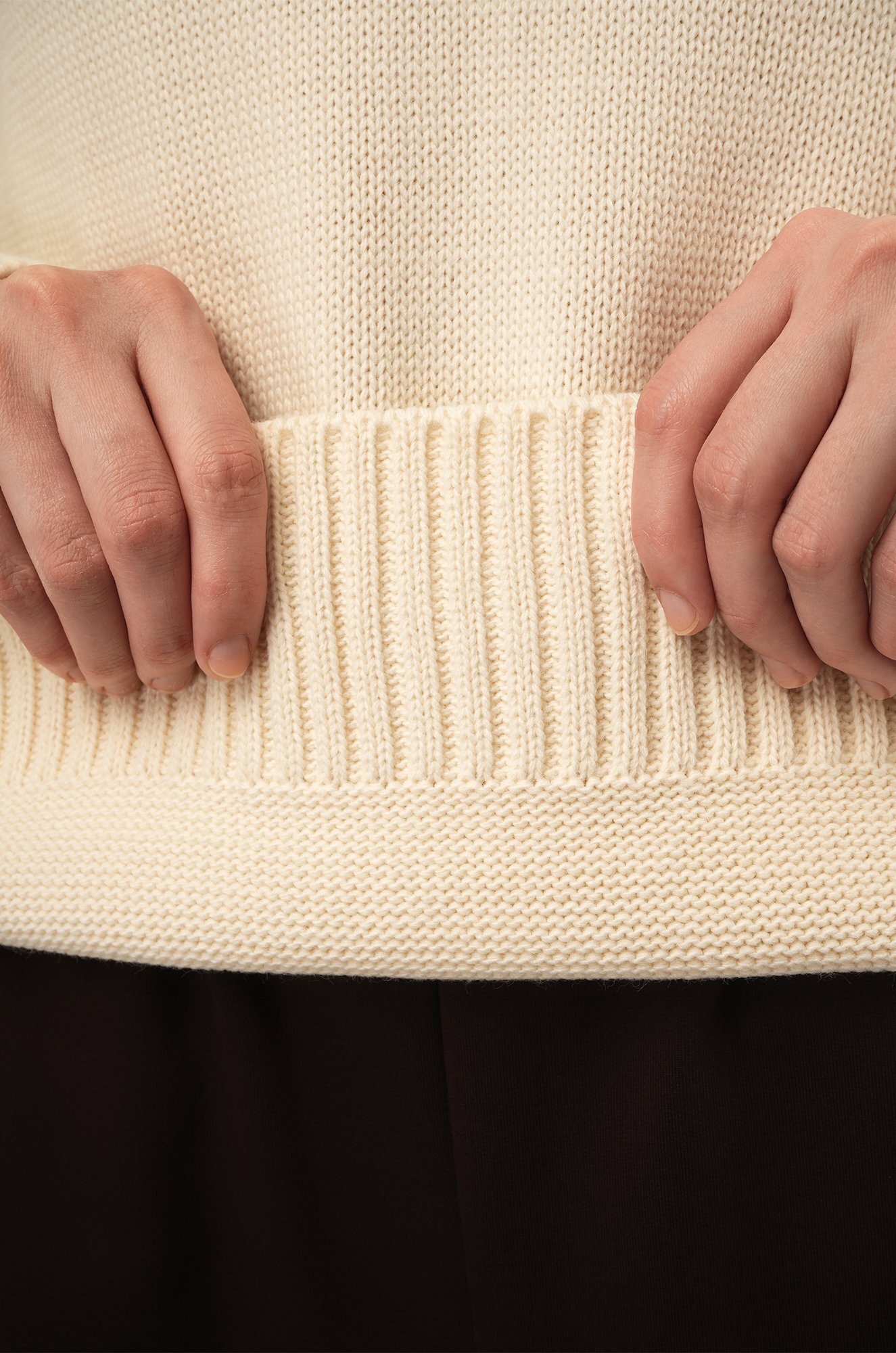 — однотонный джемпер молочного цвета отлично подходит для прогулок осенью и зимой, повседневных выходов и уютных вечеров дома.