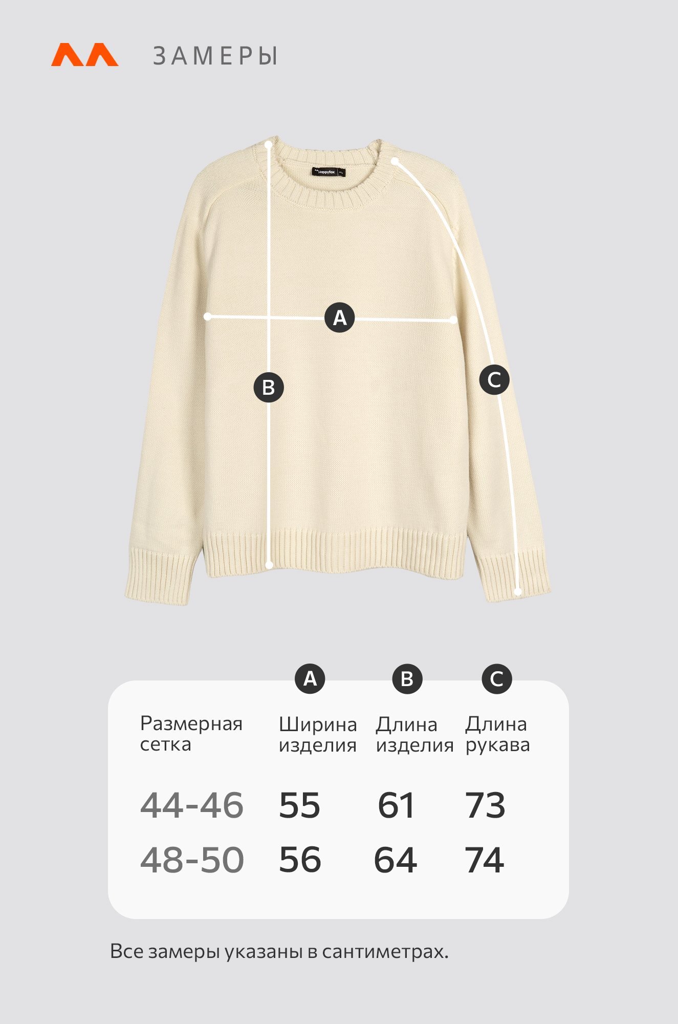 Размер 44-46: длина:61 см; ширина:55 см; длина рукава внешняя:73 см; длина рукава внутренняя:44 см.