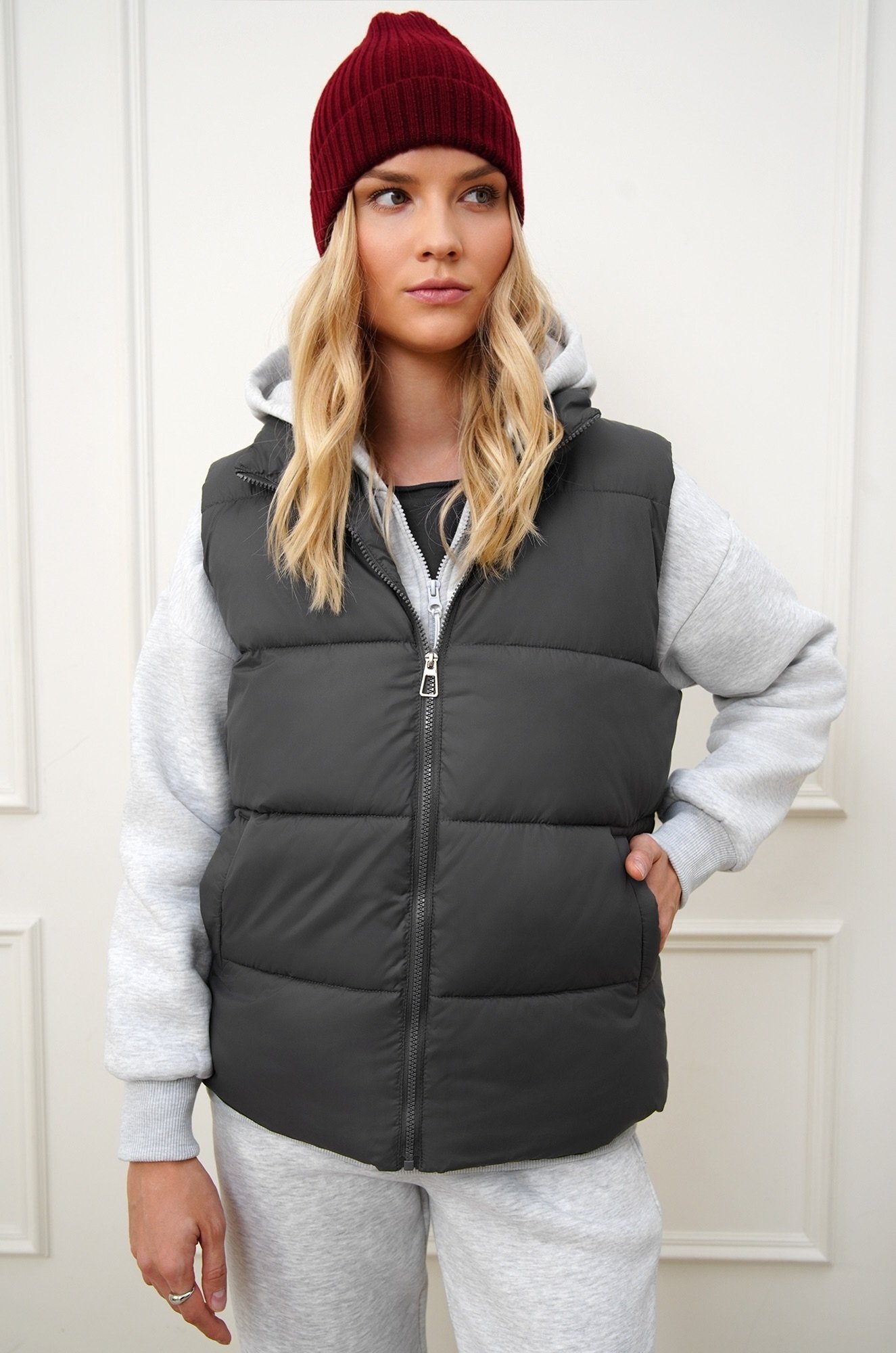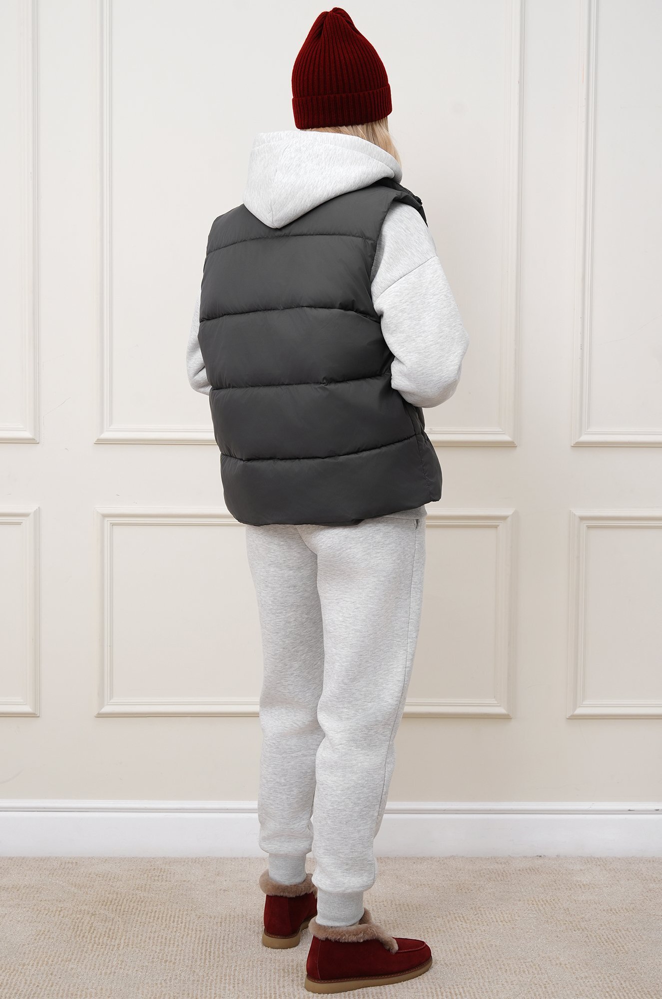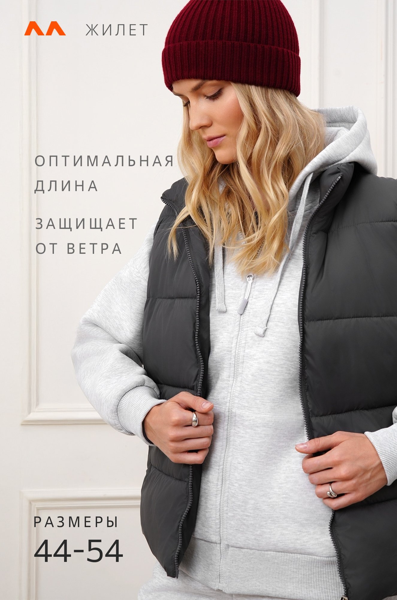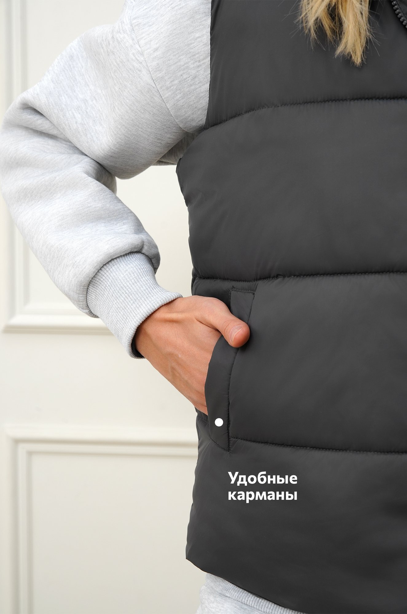 Темно-серая безрукавка для женщин и девушек станет универсальным выбором для осенних и весенних прогулок, путешествий и повседневных образов.