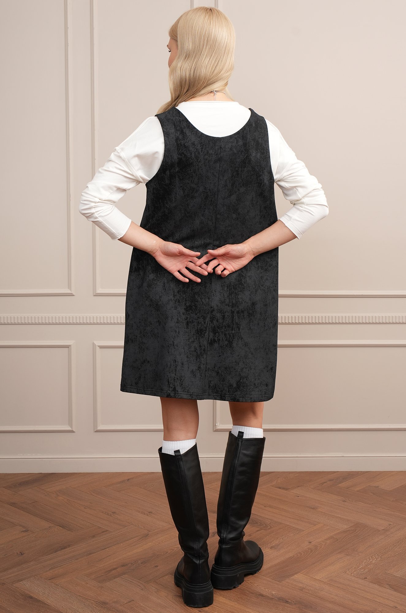 Женский сарафан с винтажным вареным эффектом создан, чтобы подчеркнуть изящество фигуры и подарить ощущение легкости. Базовый офисный сарафан — идеальный спутник для девушек, которые выбирают утонченность и свободу движений.