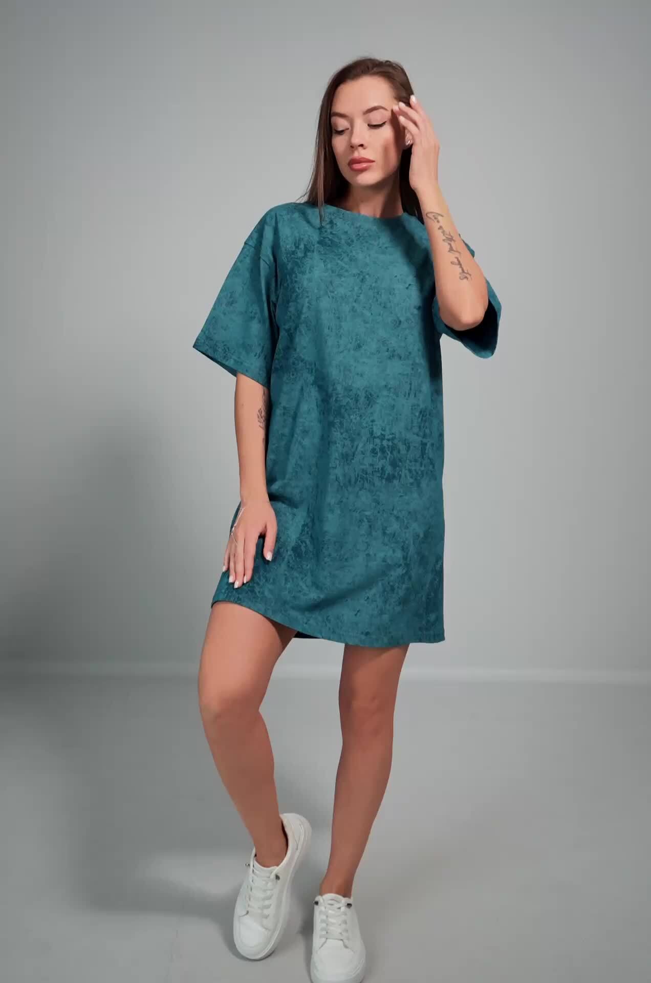 Стиль варёнка снова на пике — особенно, если это такое легкое и яркое платье-футболка в винтажно-лазурном оттенке. Женское, с настроением свободы и лета — в нём хочется двигаться легко и улыбаться чаще.