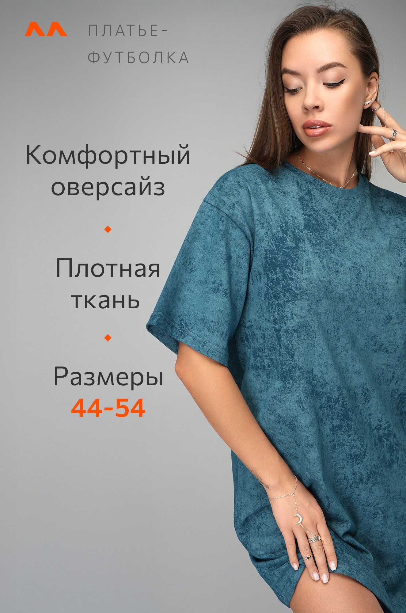 Короткое синее платье для женщин выполнено в прямом крое и подойдёт как туника на каждый день. Трикотажное, хлопковое, летнее — незаменимо для прогулок, отдыха и ярких будней в жаркое лето.